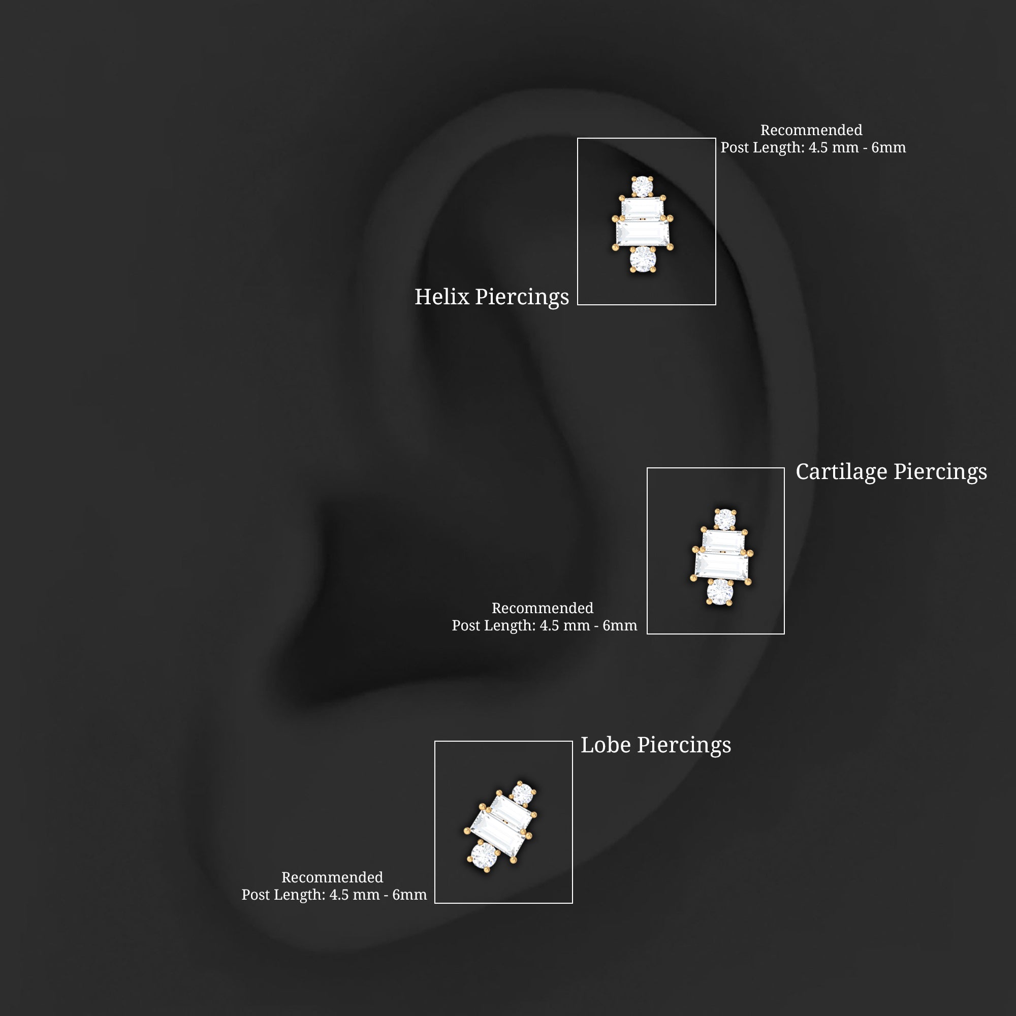 Baguette Moissanite Designer Earring for Helix Piercing ‐ D-VS1 / 14K White Gold / Select Option