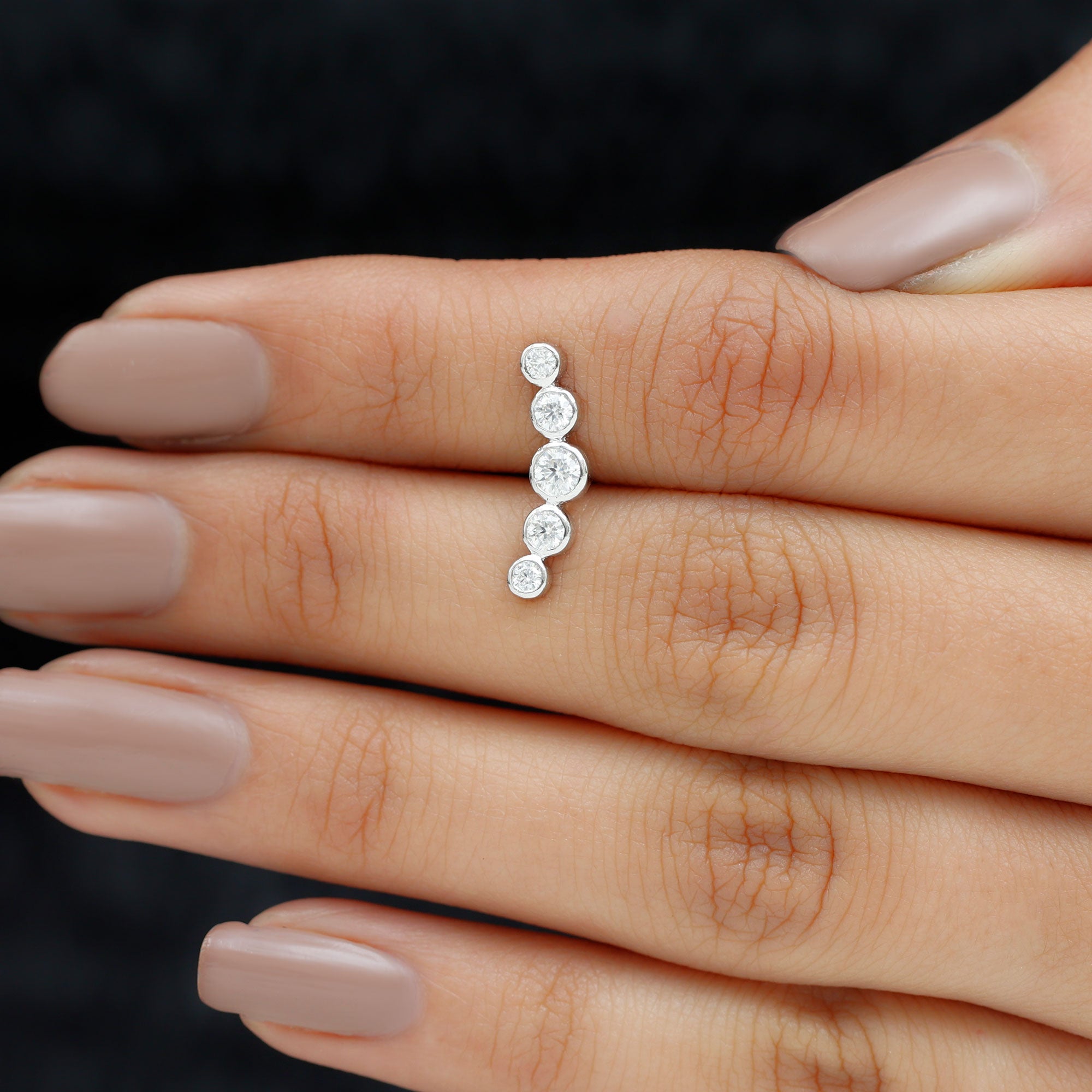 Bezel Set Round Moissanite Curved Crawler Earring ‐ D-VS1 / 18K White Gold / Flat Back 5.5 MM