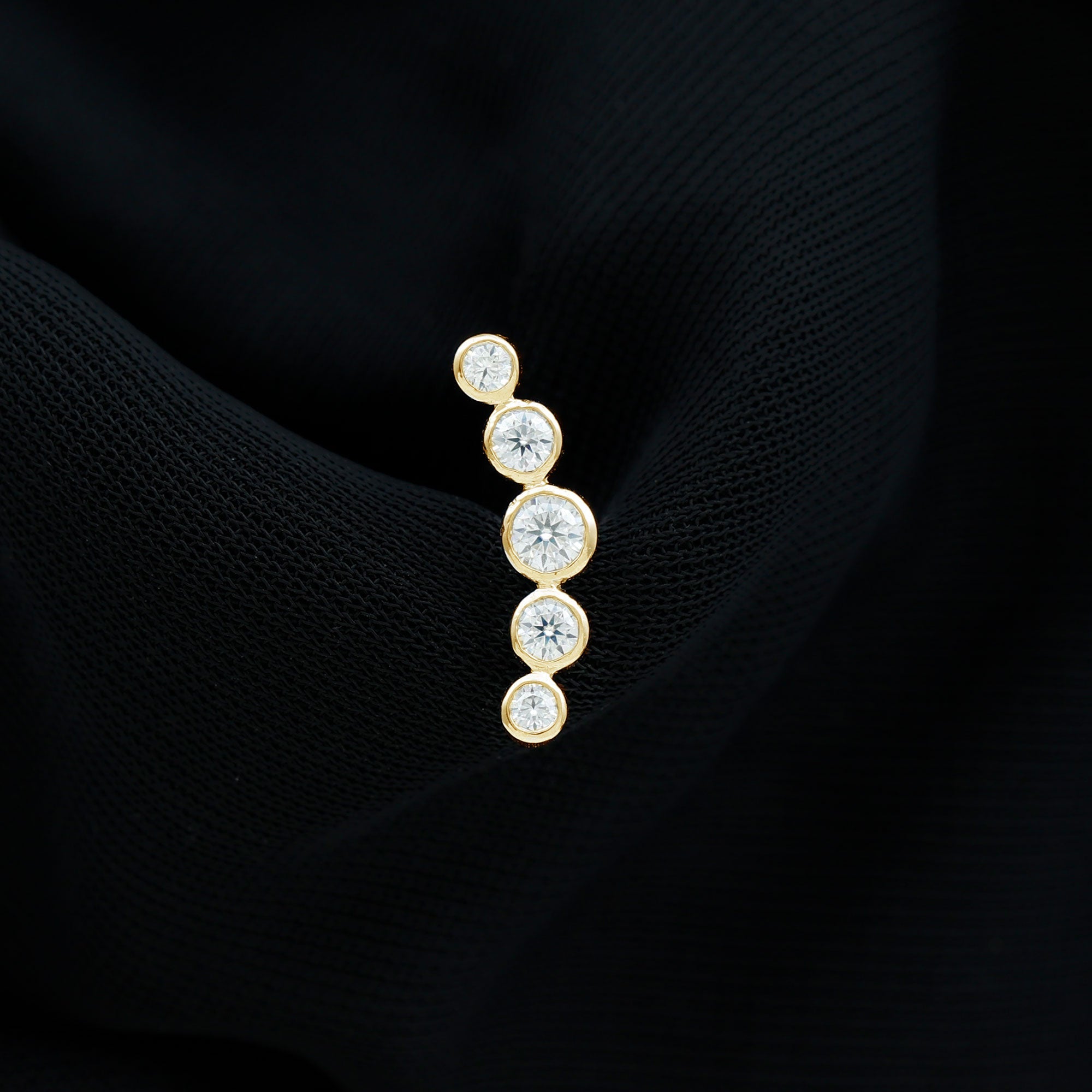 Bezel Set Round Moissanite Curved Crawler Earring ‐ D-VS1 / 14K Yellow Gold / Select Option