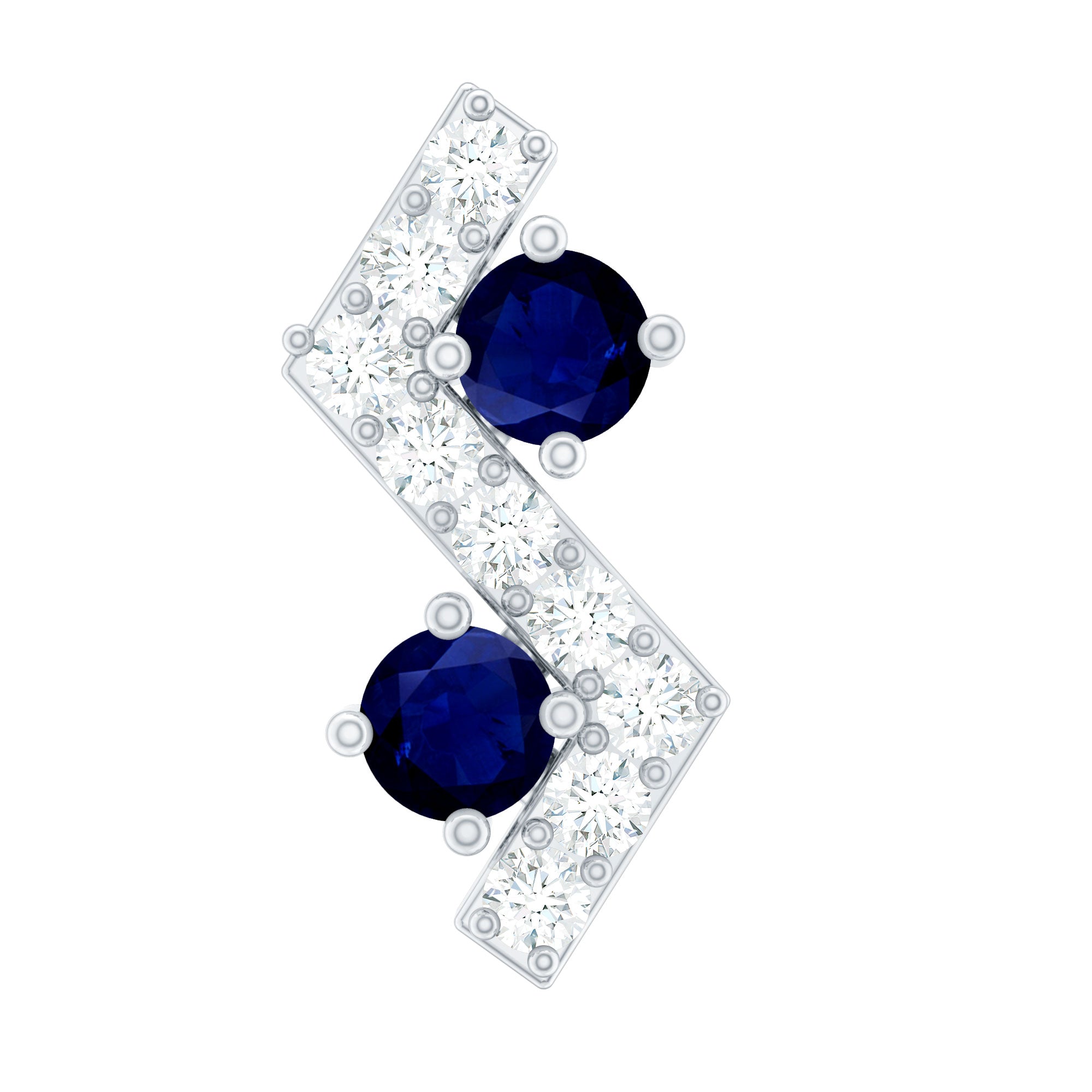 Blue Sapphire and Moissanite Zig Zag Helix Earring in Gold ‐ AAA / 18K White Gold / Select Option