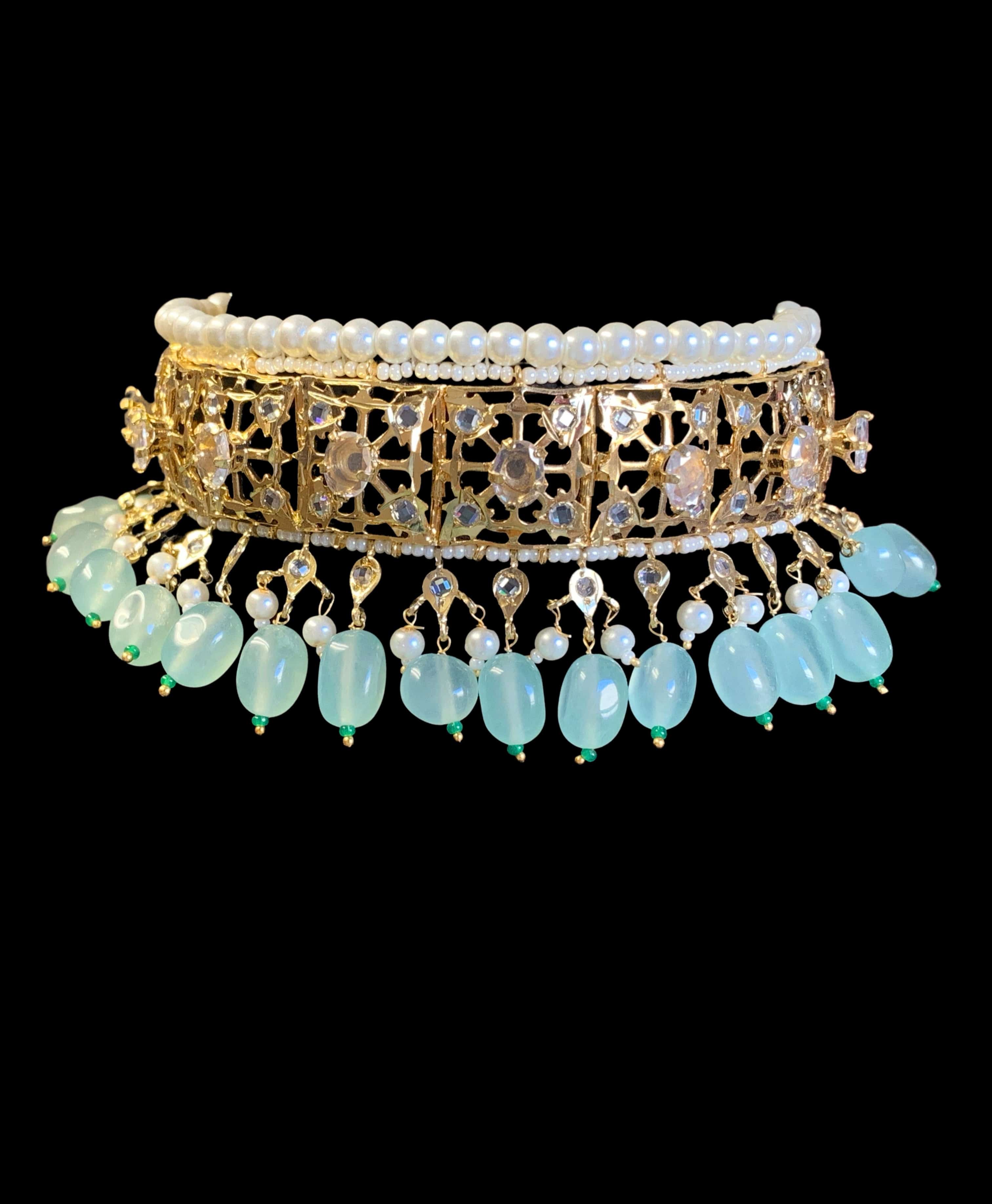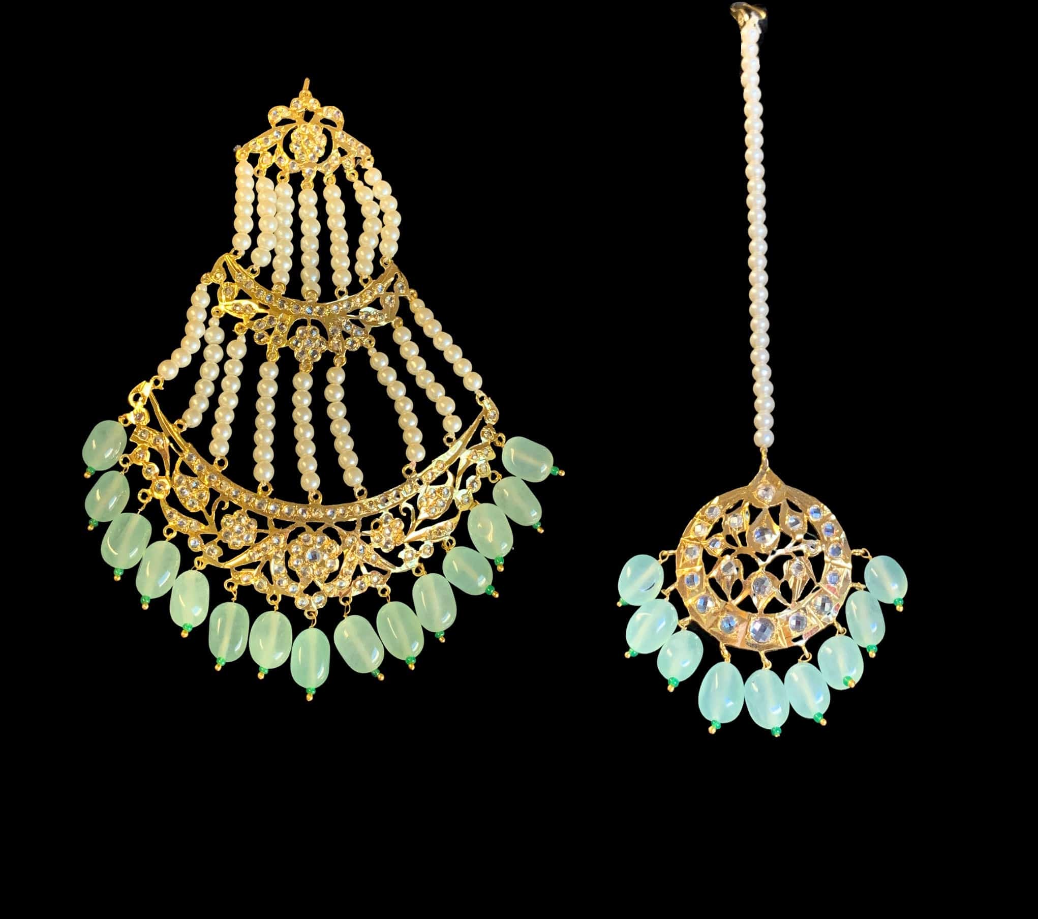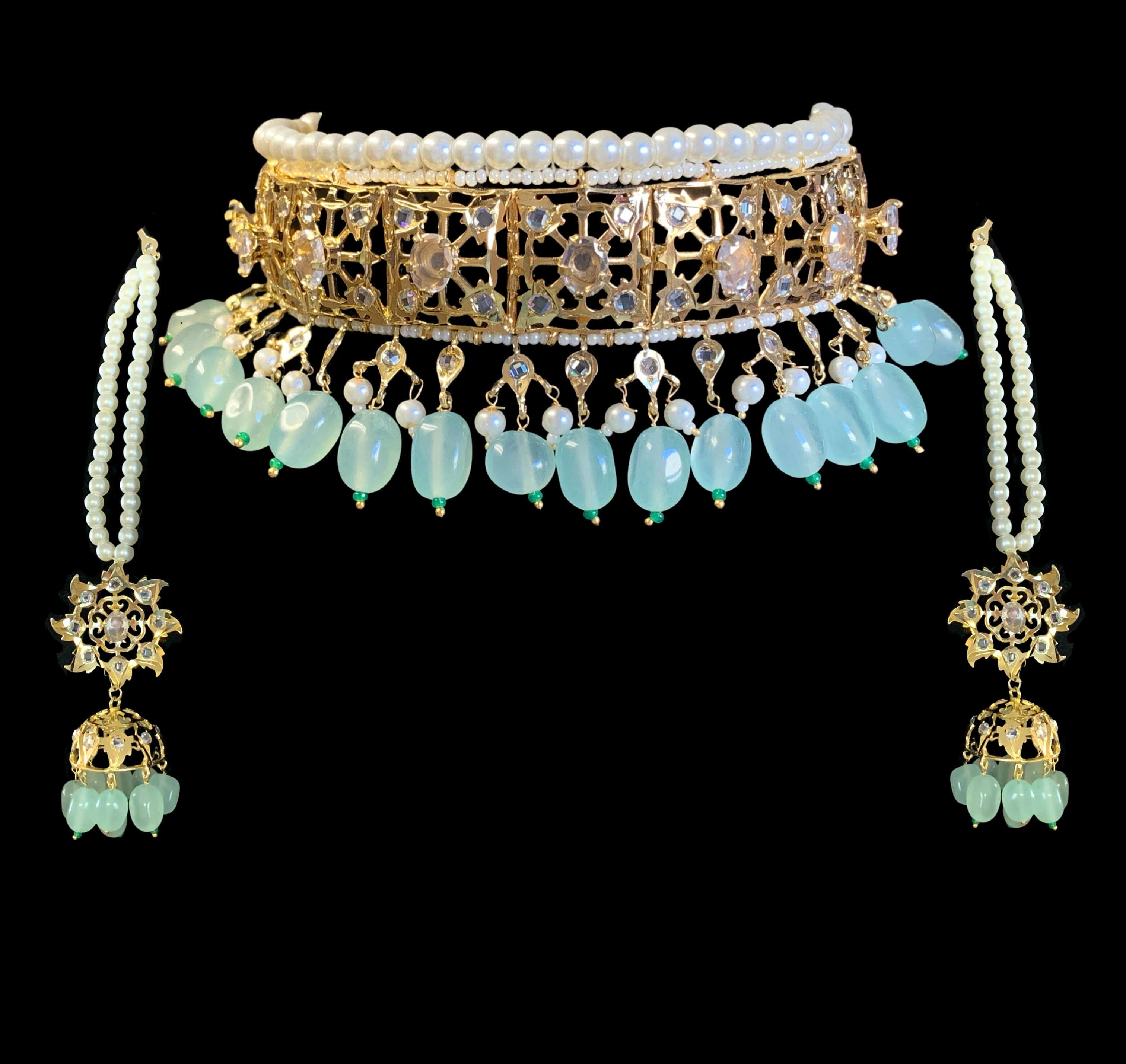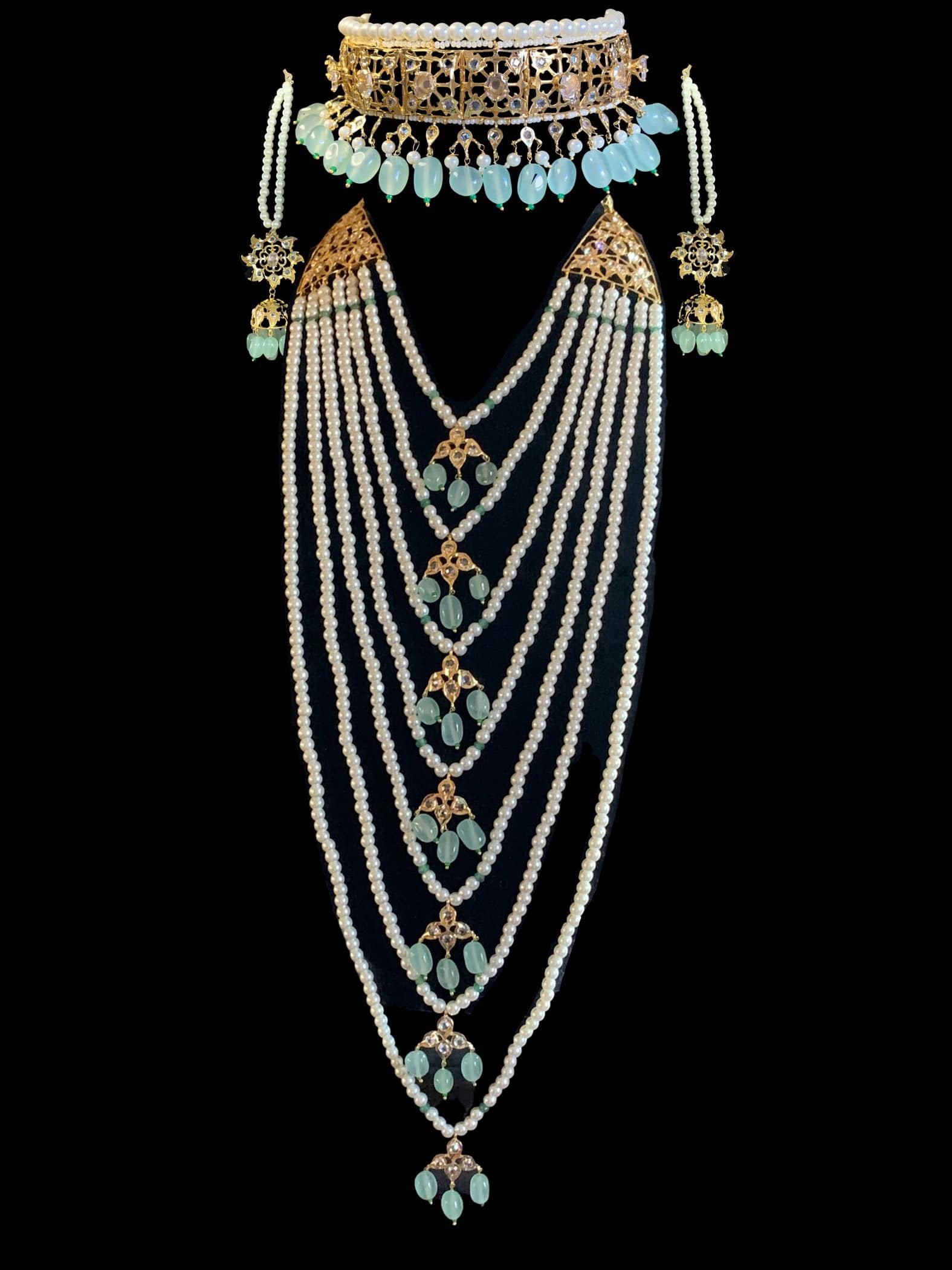 BR319 Insia hyderabadi bridal set in sea green beads ( SHIPS IN 2 WEEKS )
