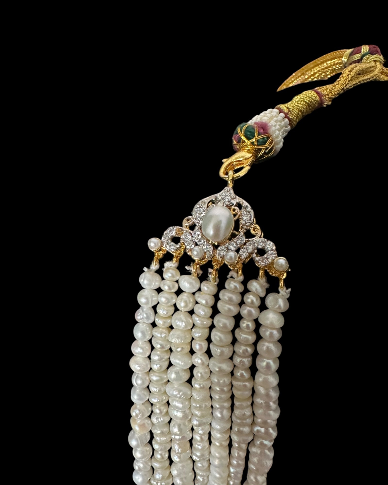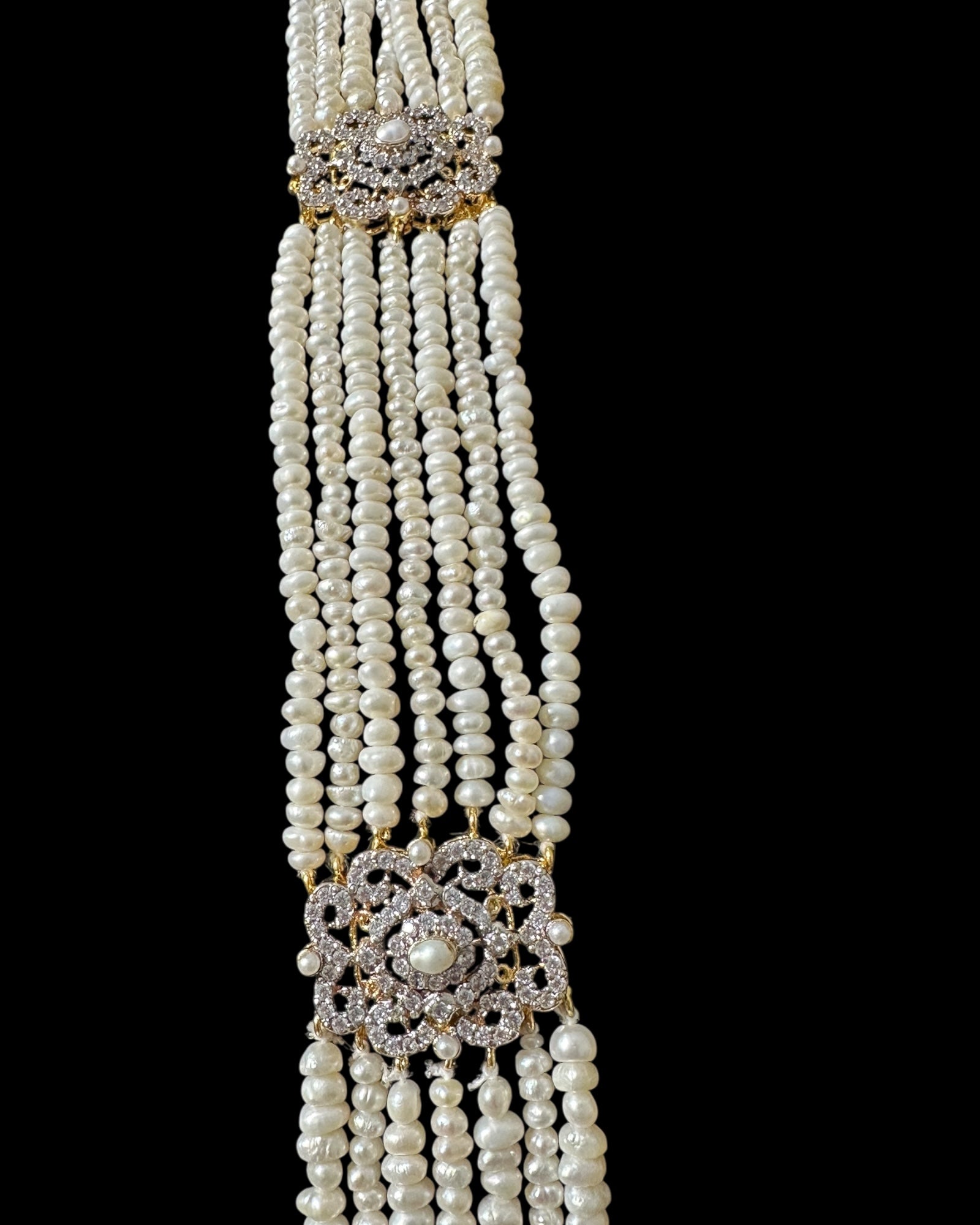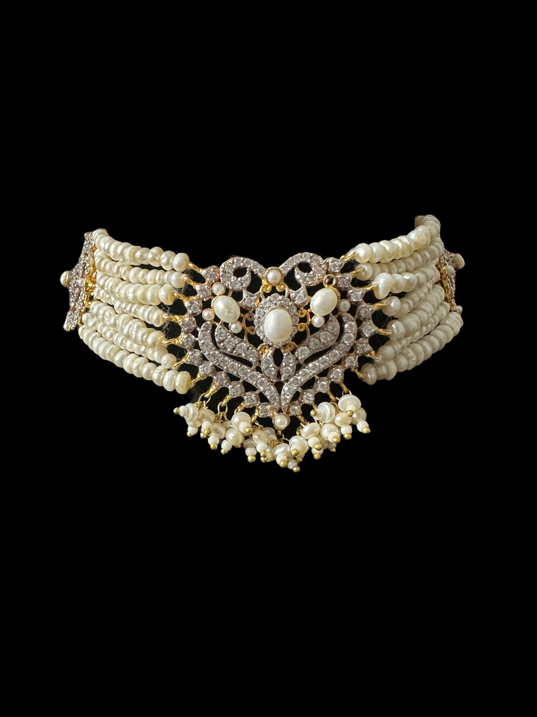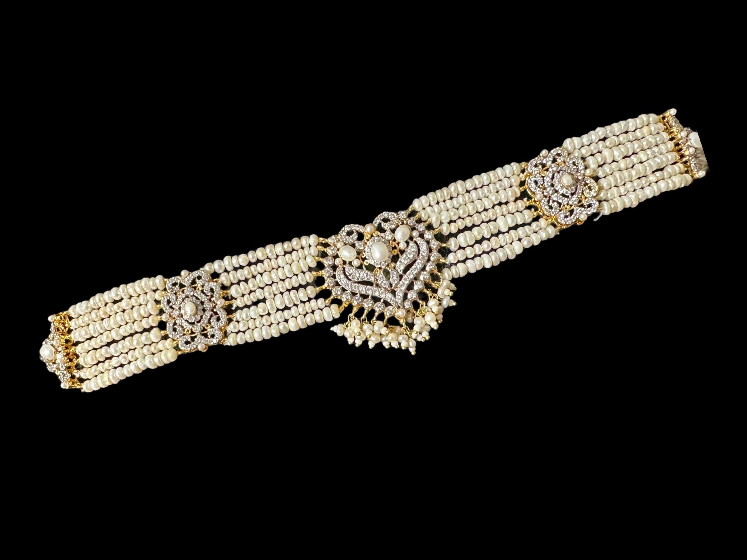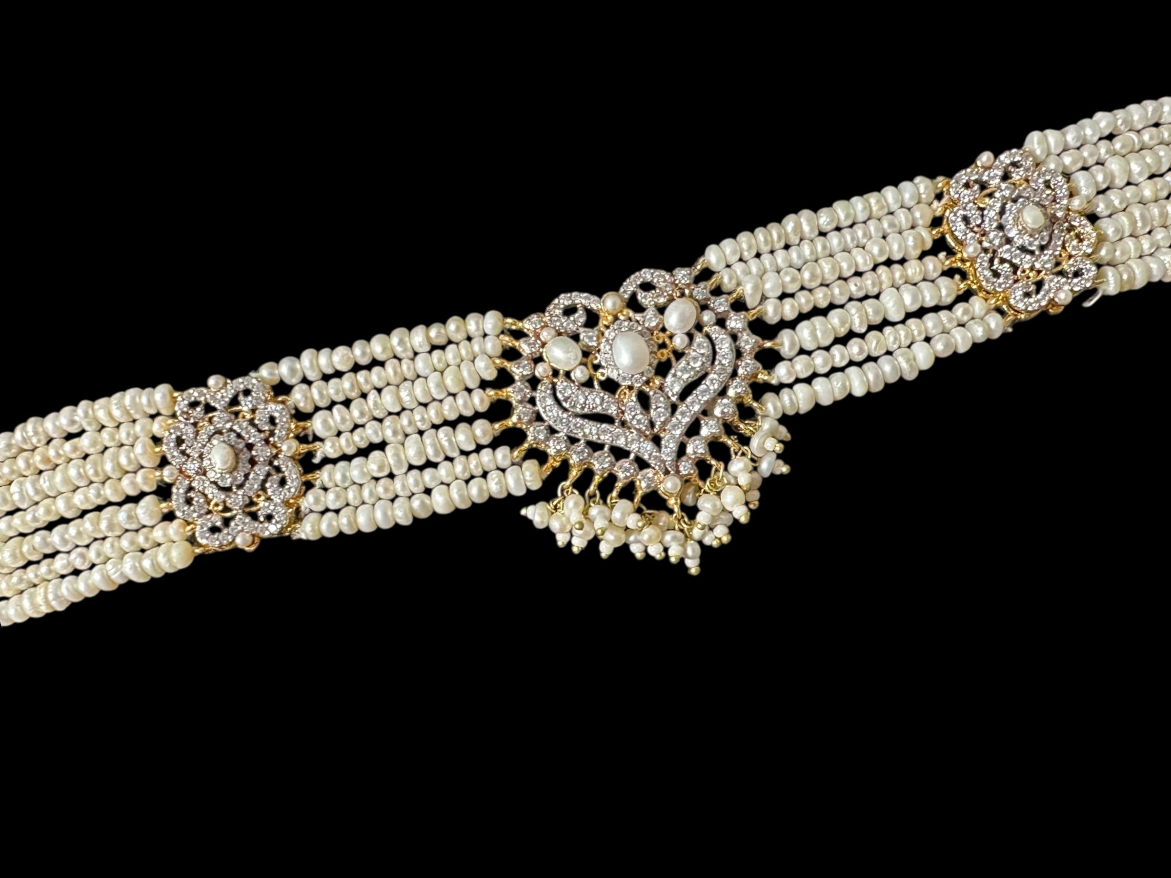 BR464 RAABYA fresh water pearl bridal choker Rani haar set with earrings tika ( READY TO SHIP )
