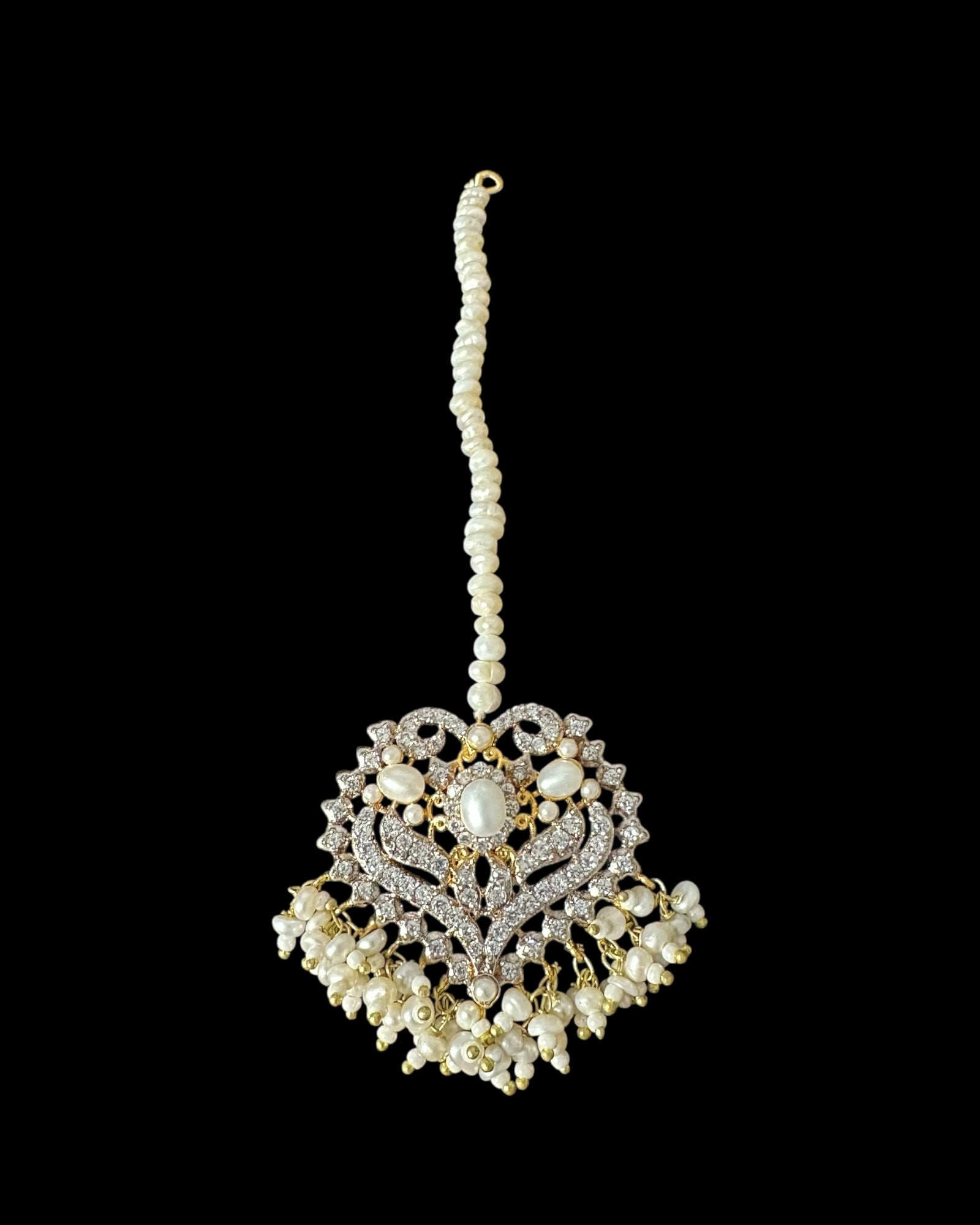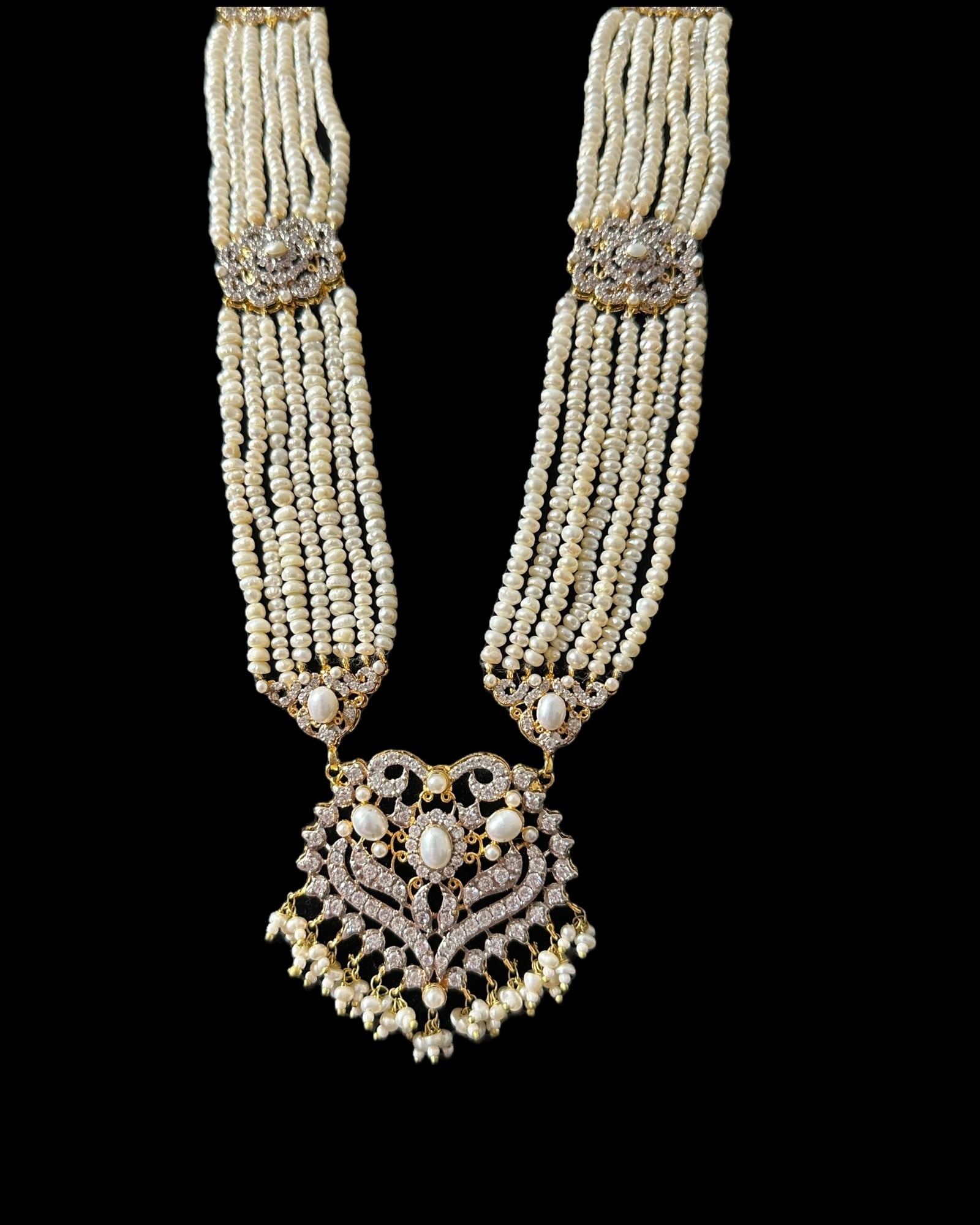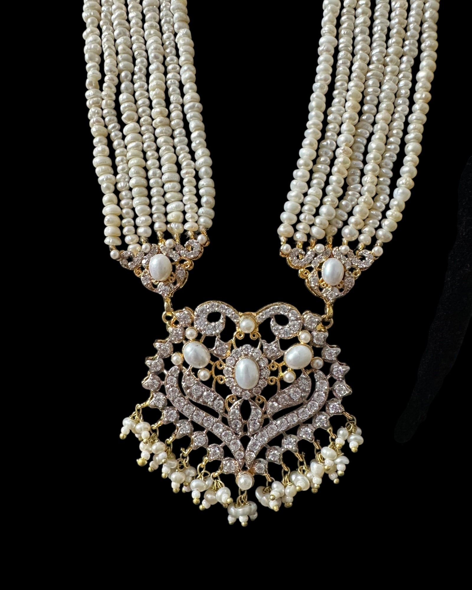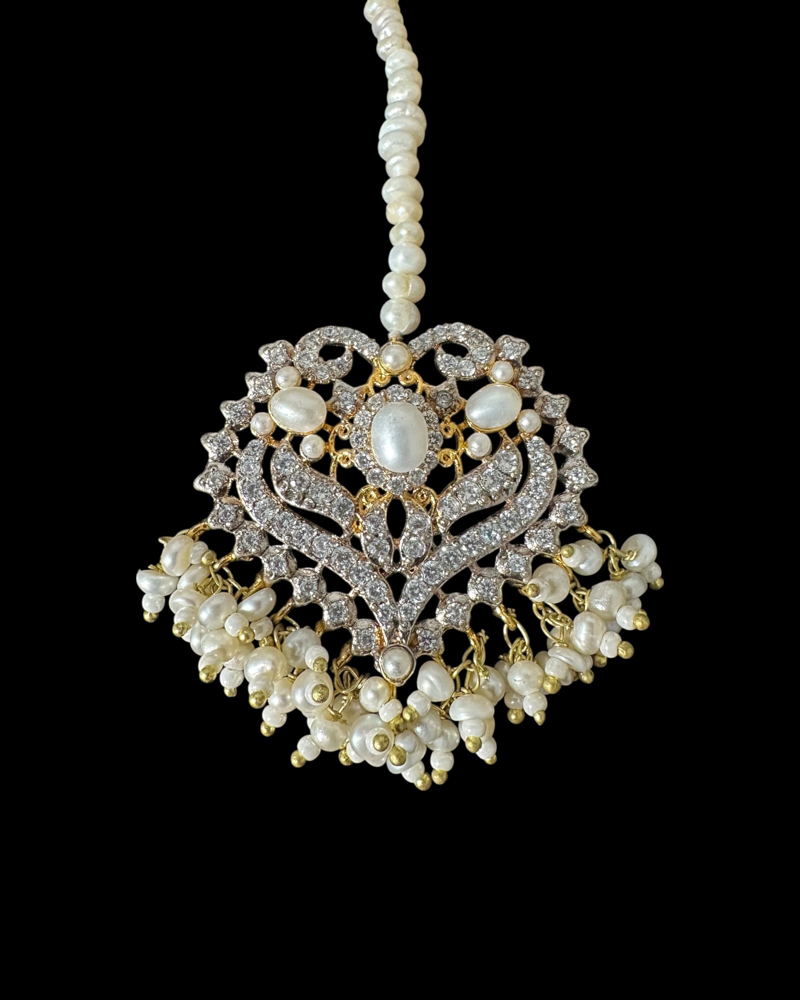 BR464 RAABYA fresh water pearl bridal choker Rani haar set with earrings tika ( READY TO SHIP )