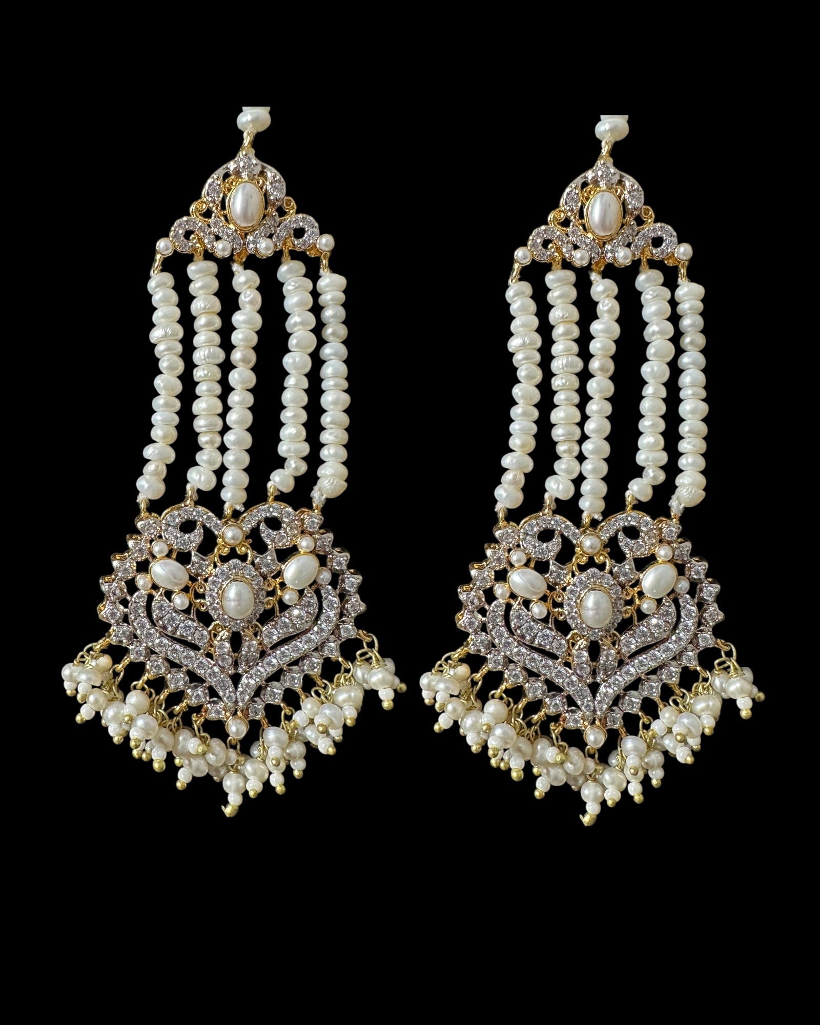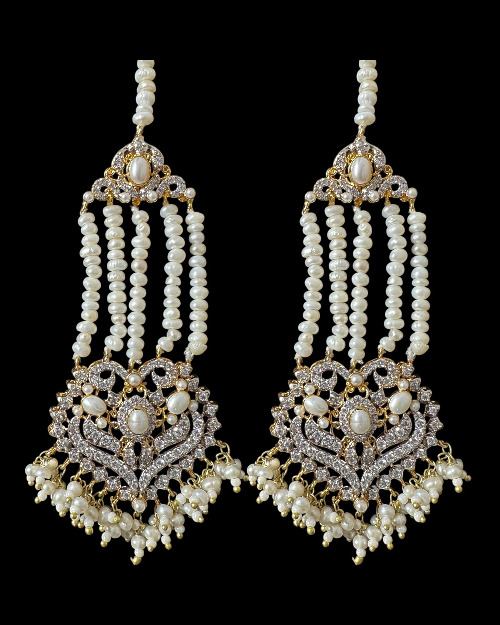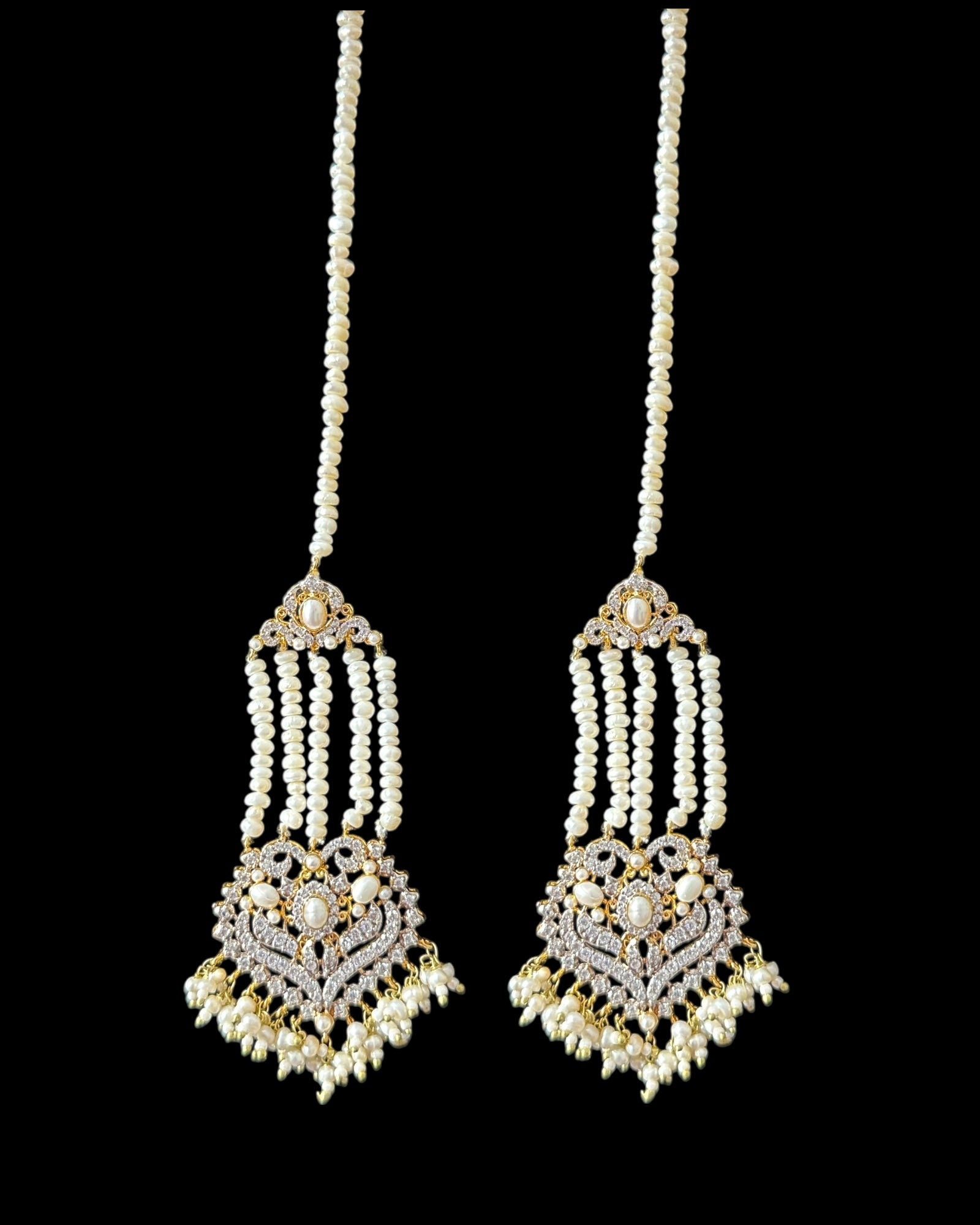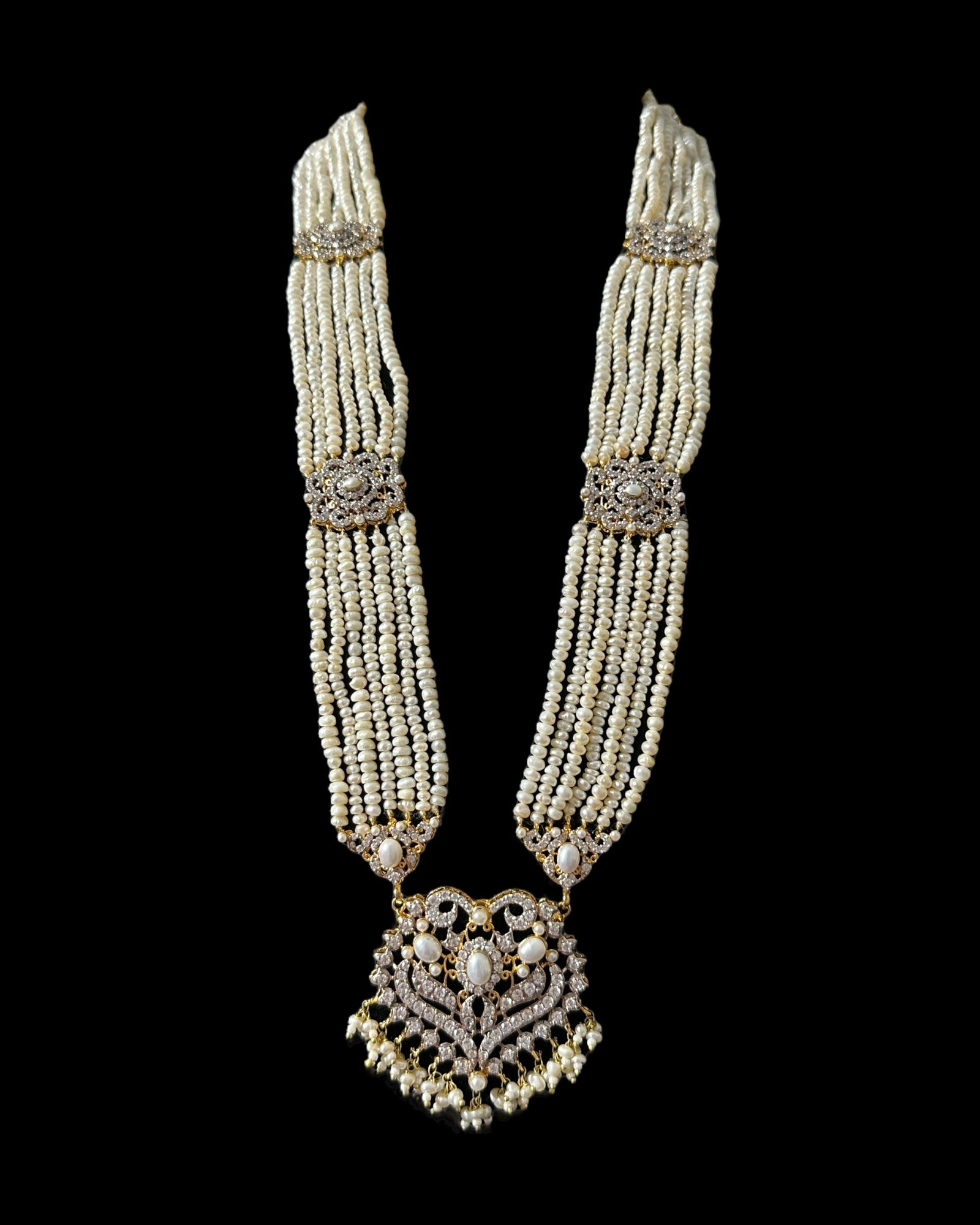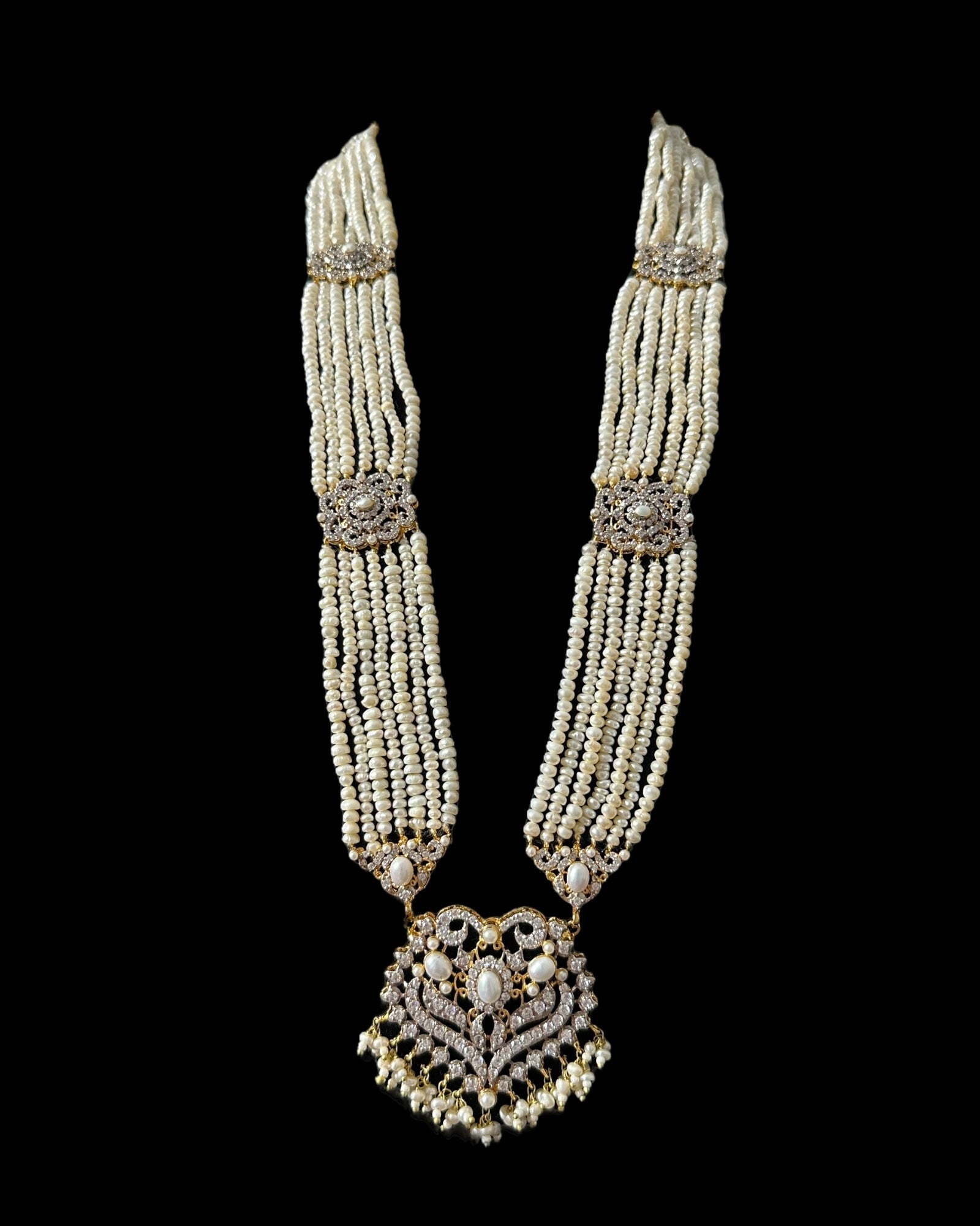 BR464 RAABYA fresh water pearl bridal choker Rani haar set with earrings tika ( READY TO SHIP )