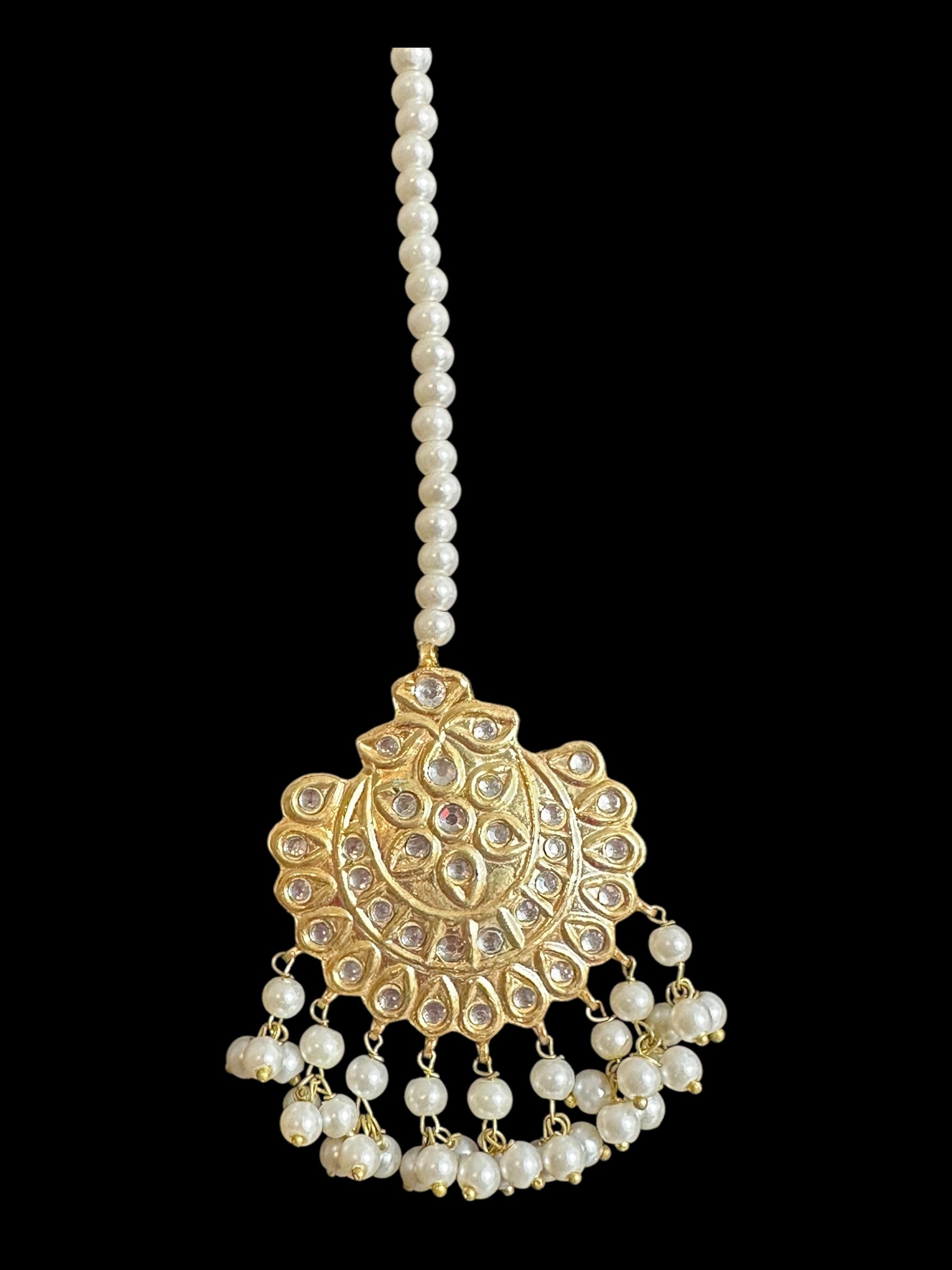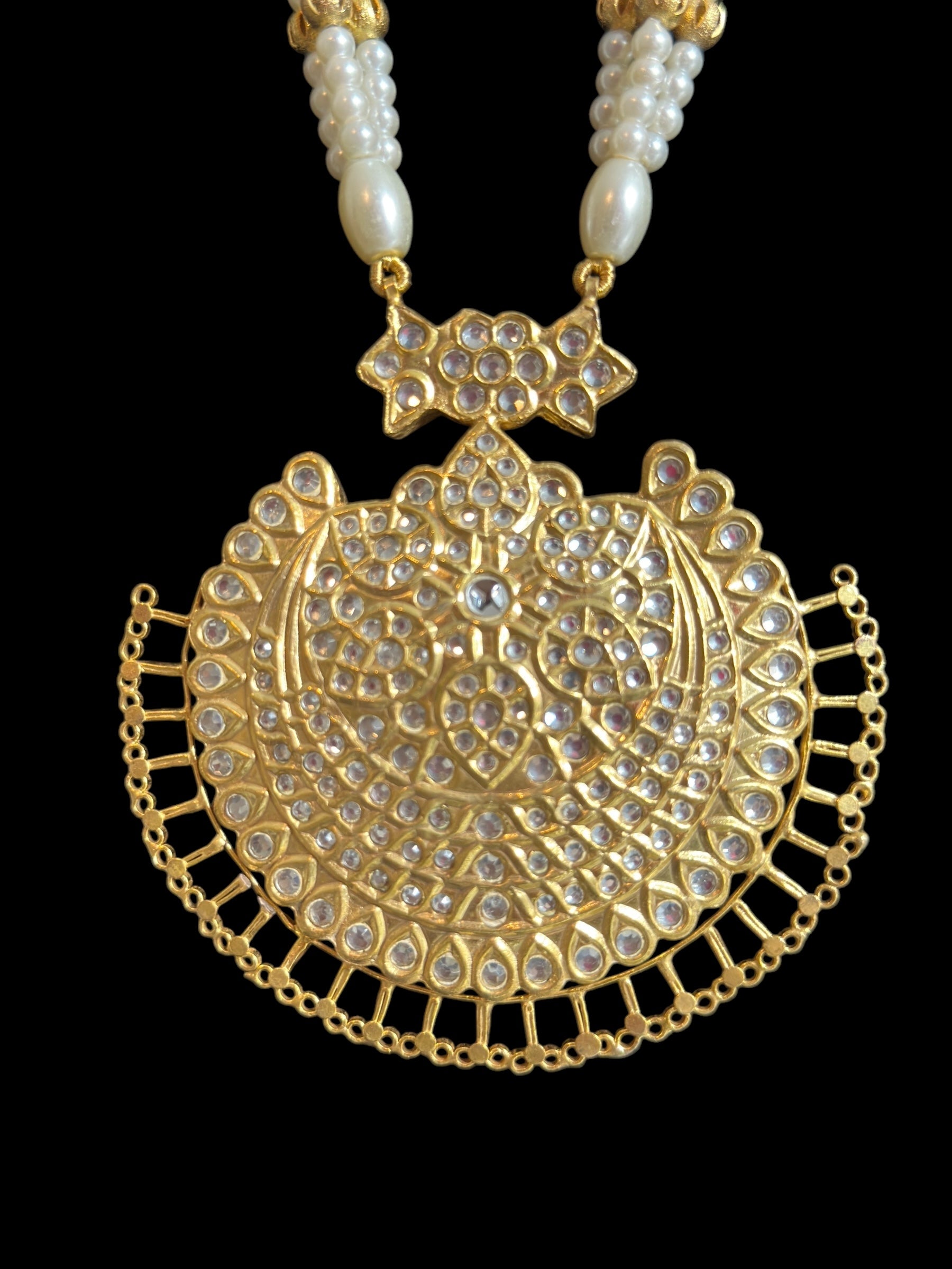 made using shell pearls , gold plating and kundan