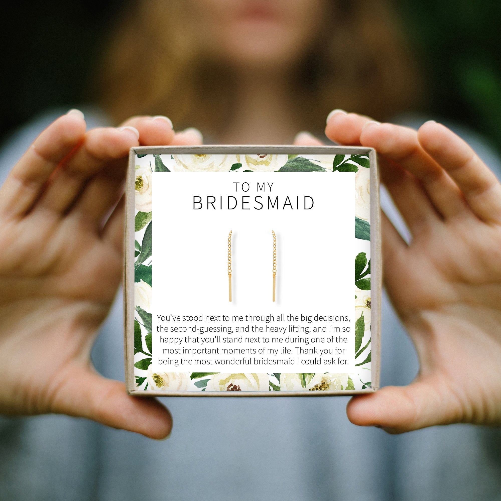 Weddings are beautifully chaotic. It can be difficult to find the time or words to thank the people who helped make your special day a reality. Make your job easier and show your bridesmaids how much you care with these delicate, chic earrings.
