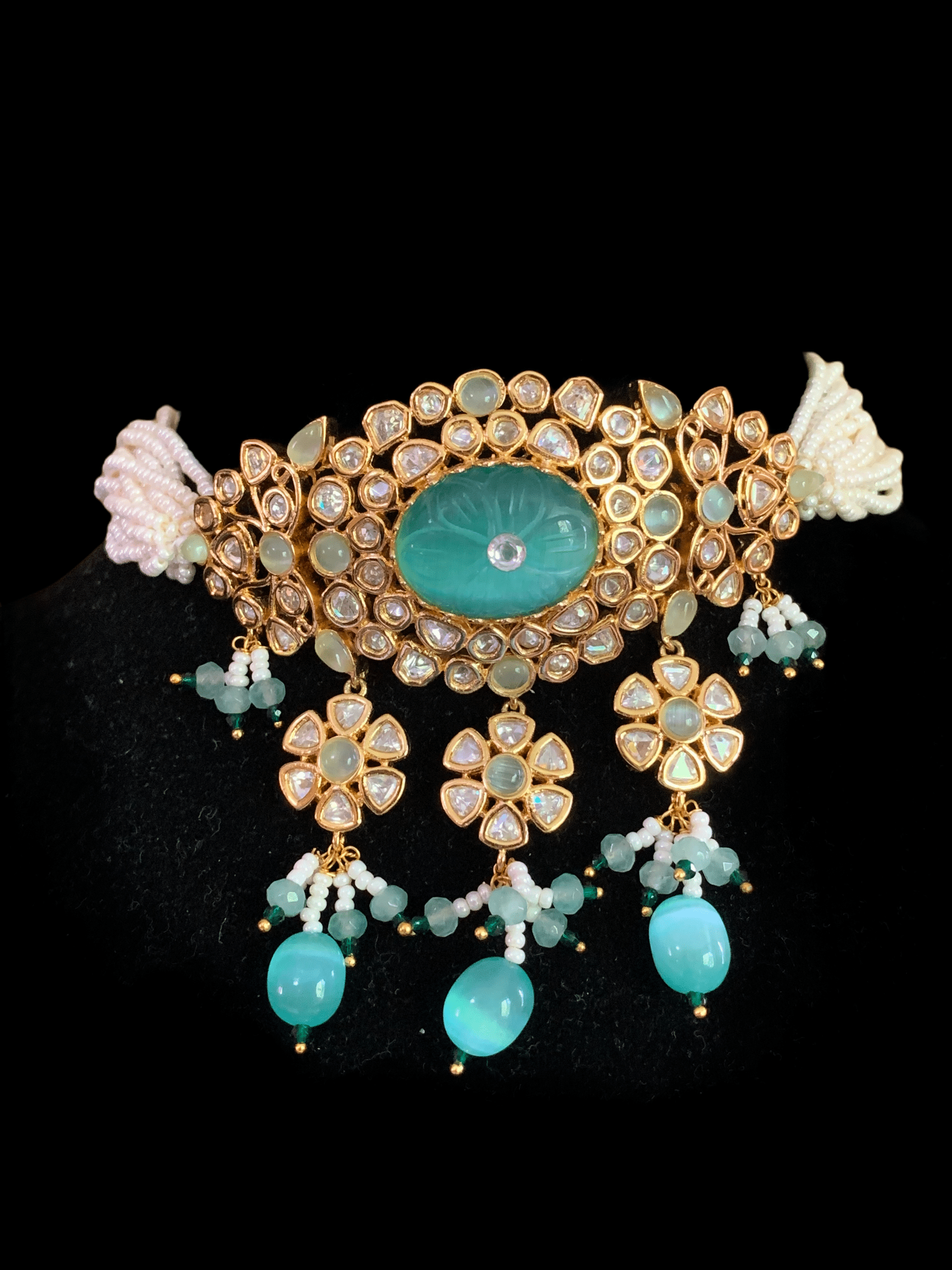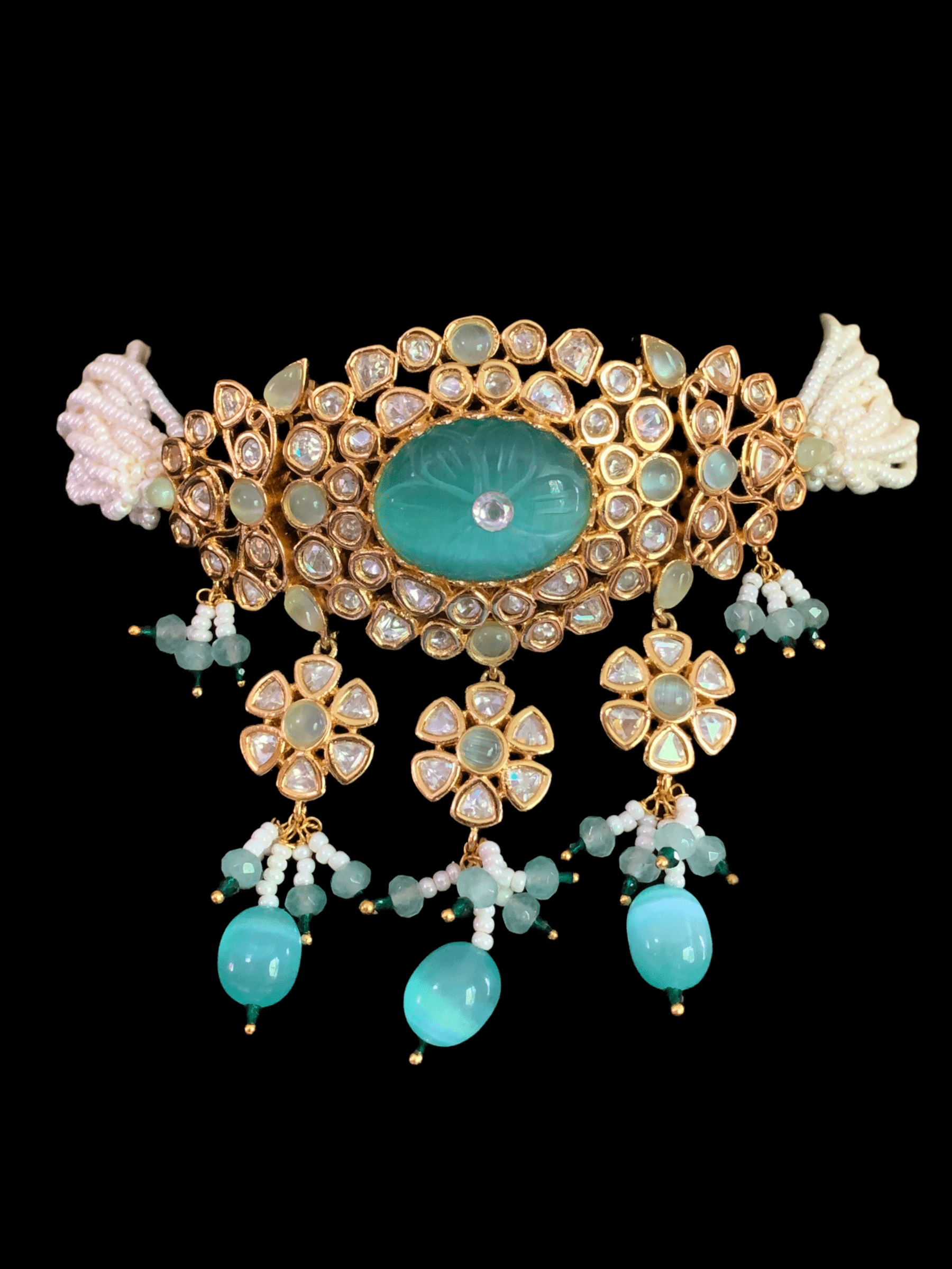 made using high quality Cz polki with shell pearls and Mona Lisa beads