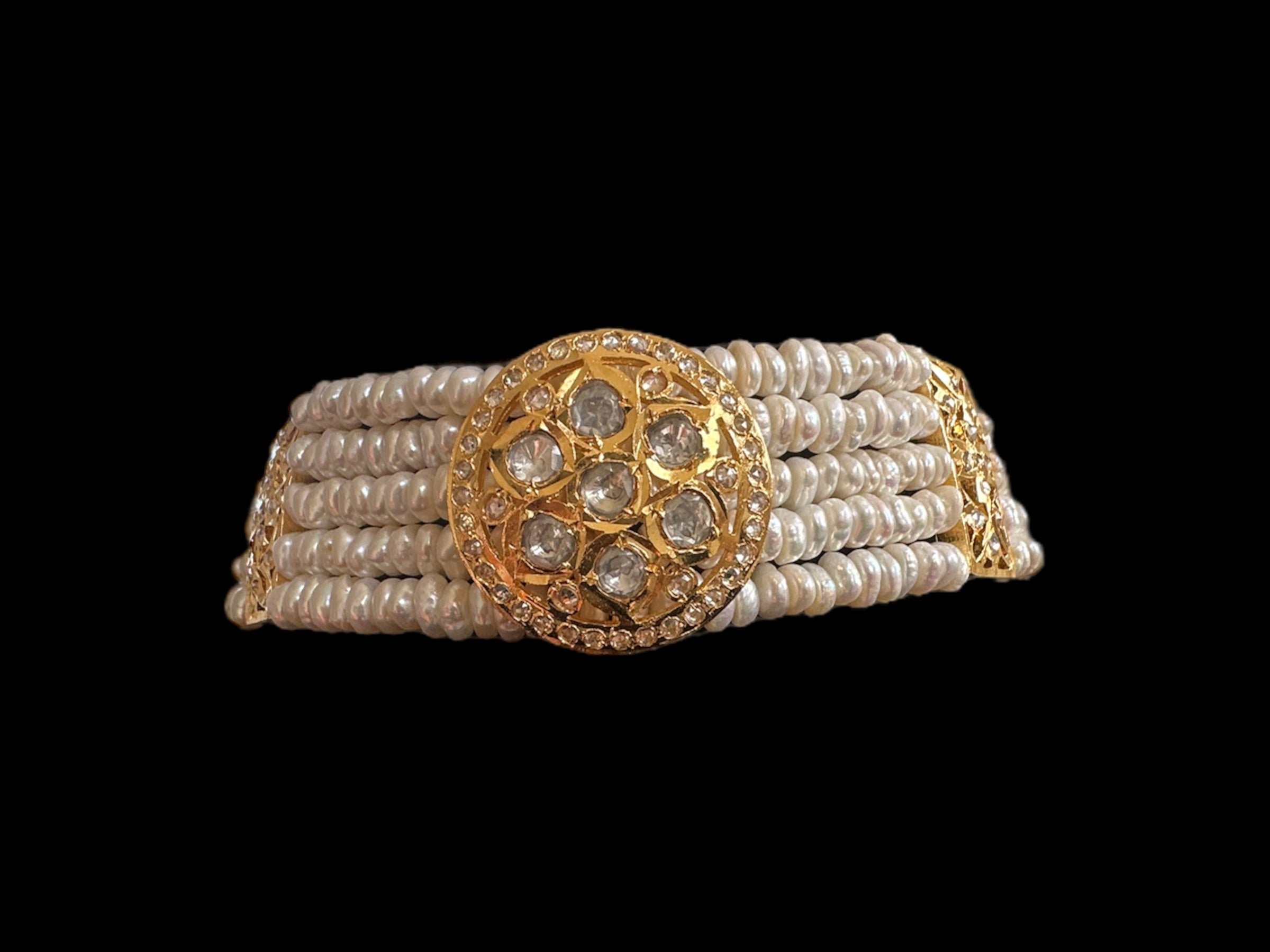 C297 Choker with earrings in moissanite and fresh water pearls ( READY TO SHIP ) ‐ Full set