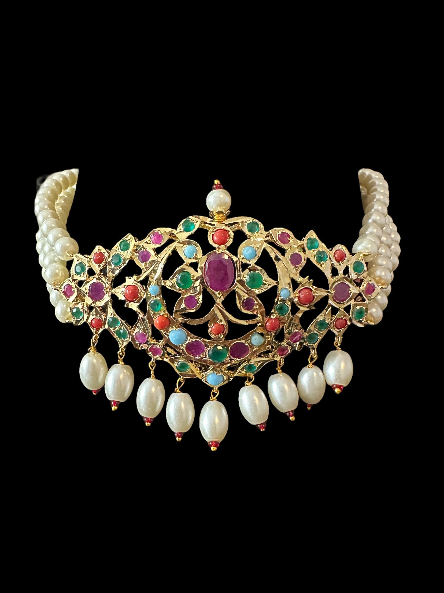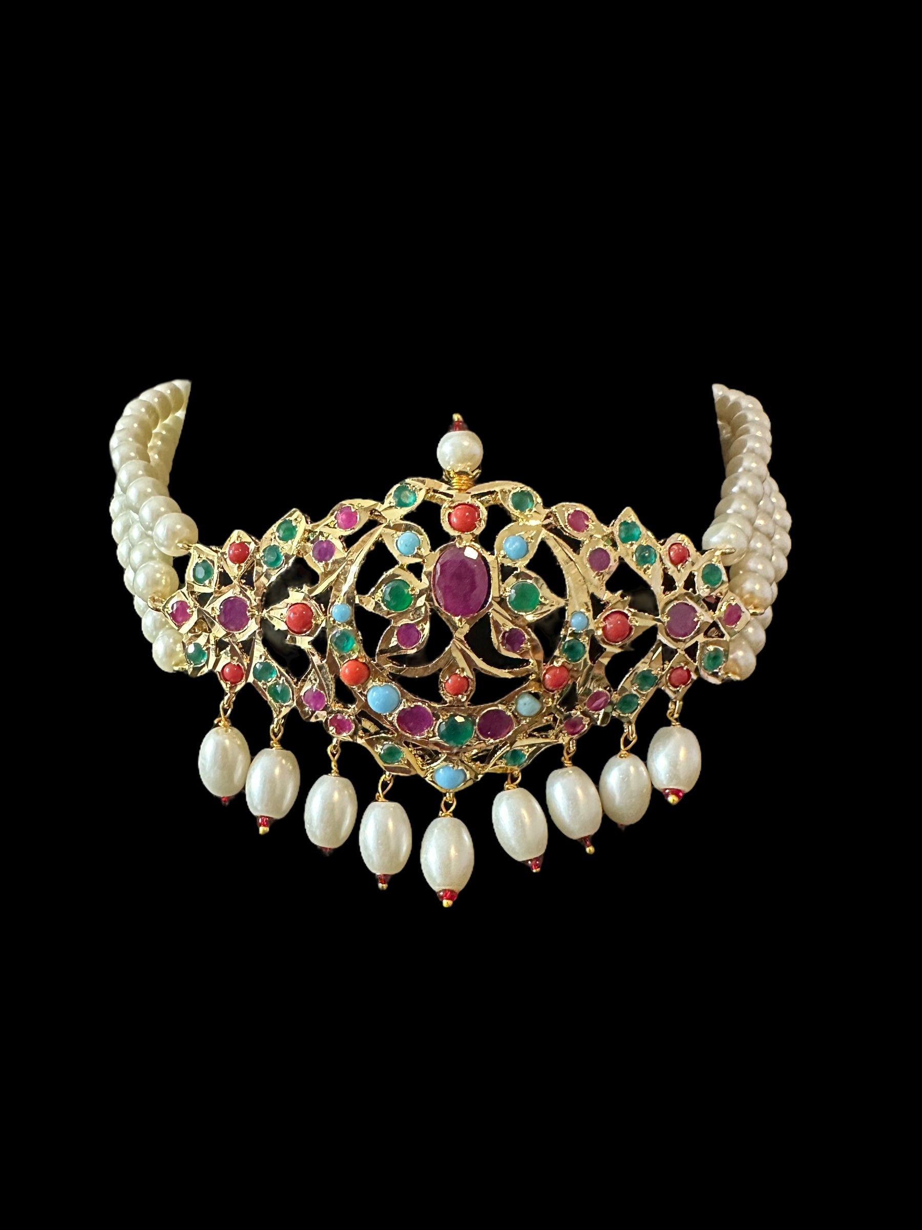 C533 Mushk choker with chandbali earrings in navratan ( READY TO SHIP )