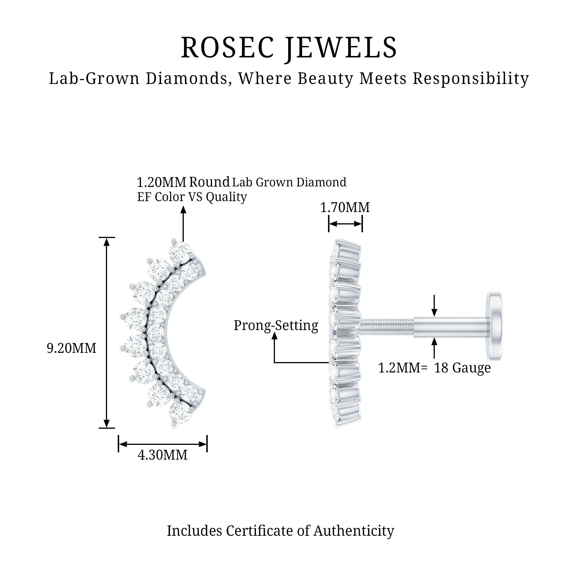 Certified Diamond Curved Cartilage Earring ‐ Lab - ( EF-VS ) / 10K White Gold / Flat Back 7.0 MM