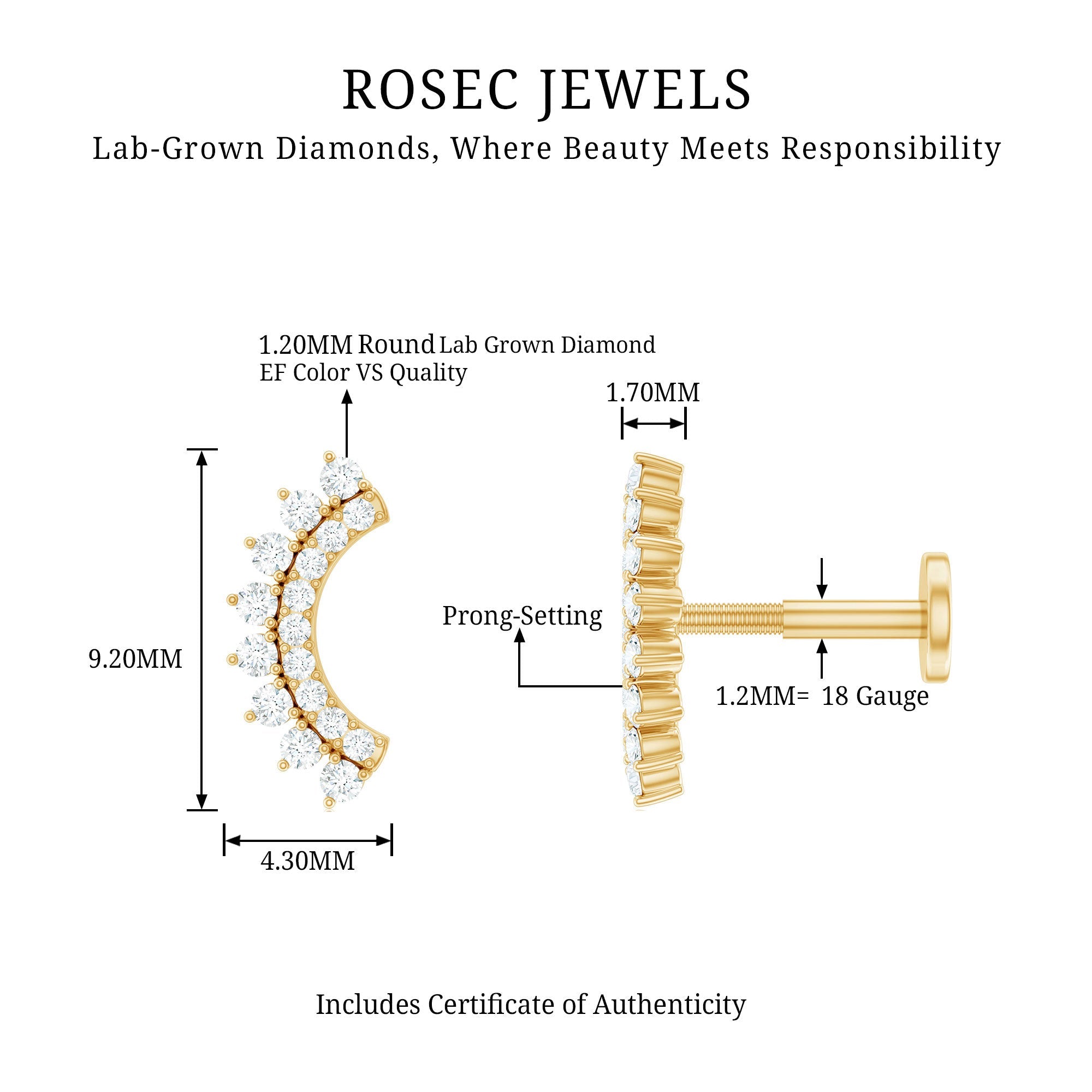 Certified Diamond Curved Cartilage Earring ‐ Lab - ( EF-VS ) / 10K White Gold / Flat Back 5.0 MM