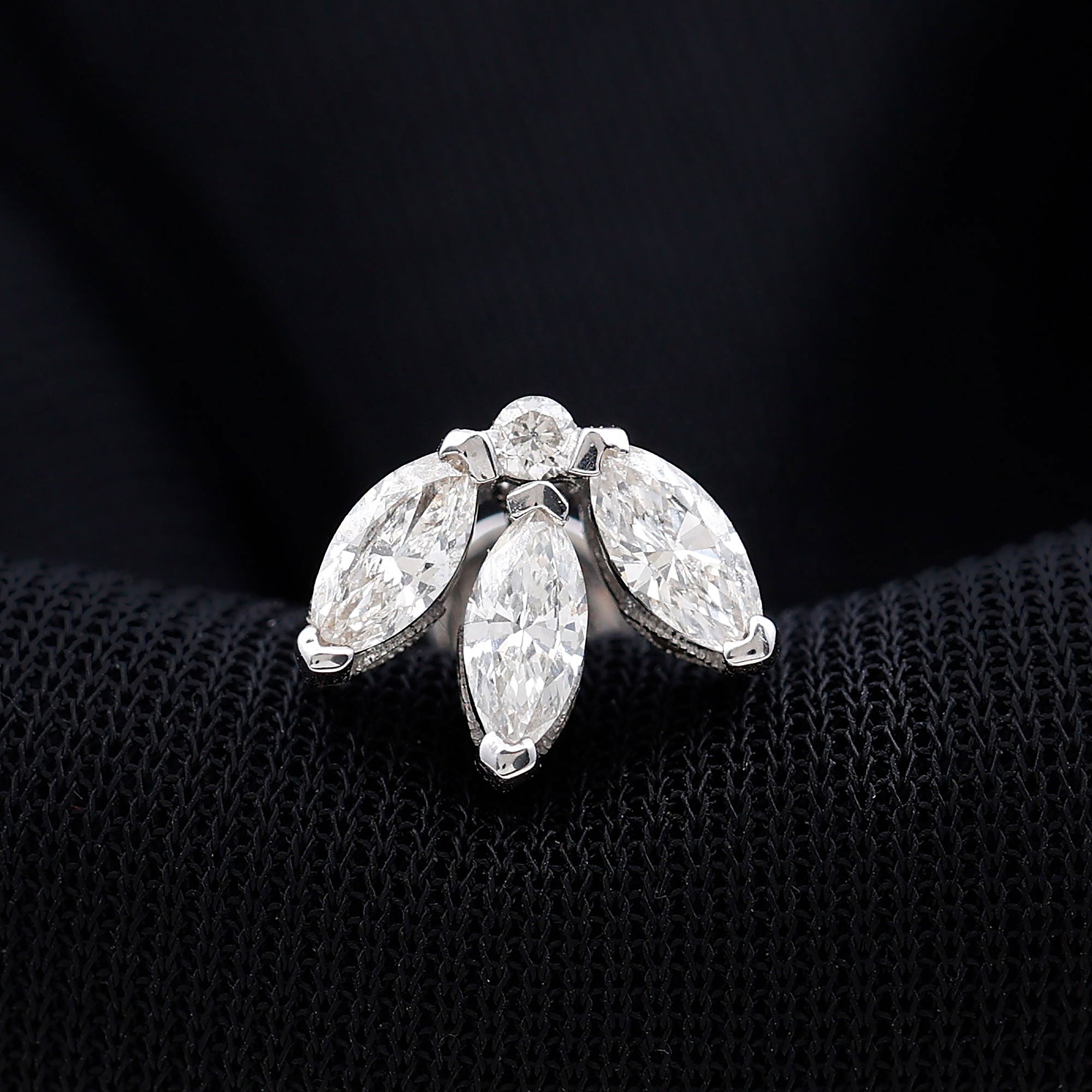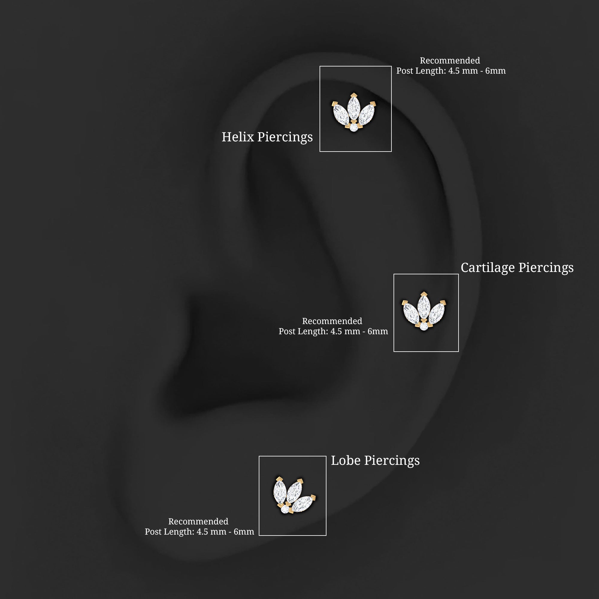 Certified Marquise Moissanite Lotus Flower Earring for Helix Piercing