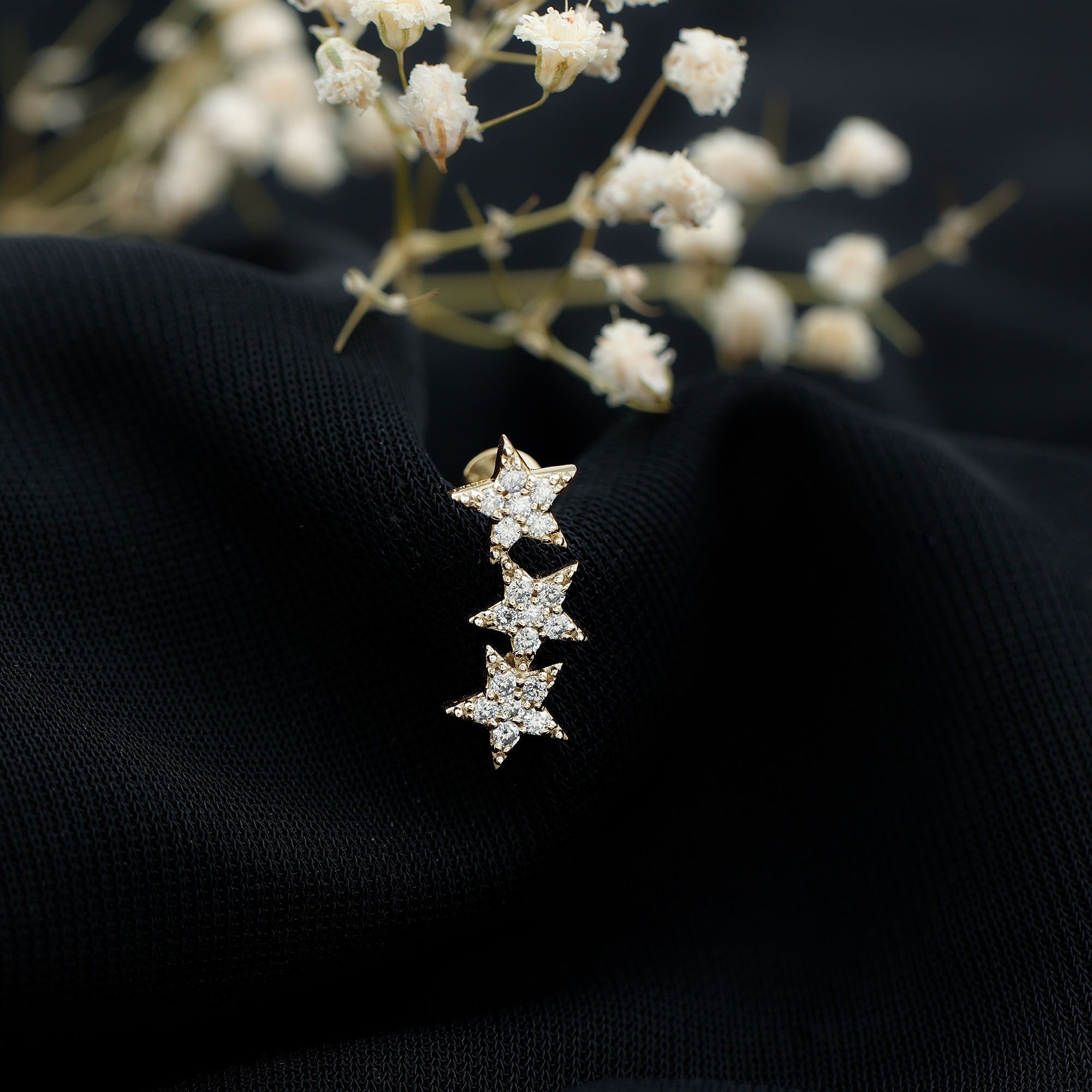 Dont miss out on the ultimate Ear Crawler Earring that will be your perfect companion for any special event or party. Adorned with Round Cut Moissanite set in Pave Setting over a stunning star design, this Ear Crawler Earring is an absolute showstopper. This Celestial Earring comes with a Flat Back Closure that ensures a secure fit on your Helix, Cartilage, or Upper Lobe Piercing.