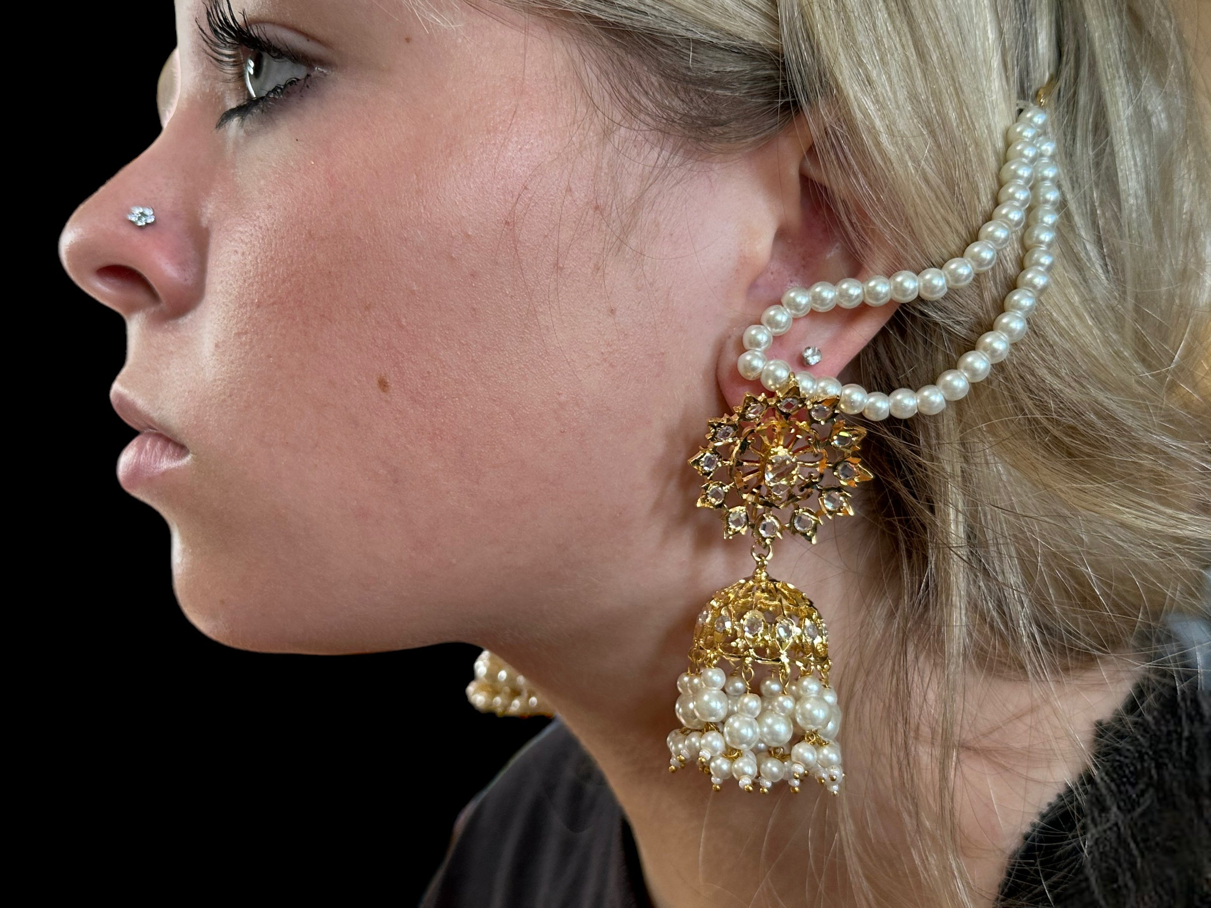DER193 Karanphool jhumka - pearls ( SHIPS IN 2 WEEKS )