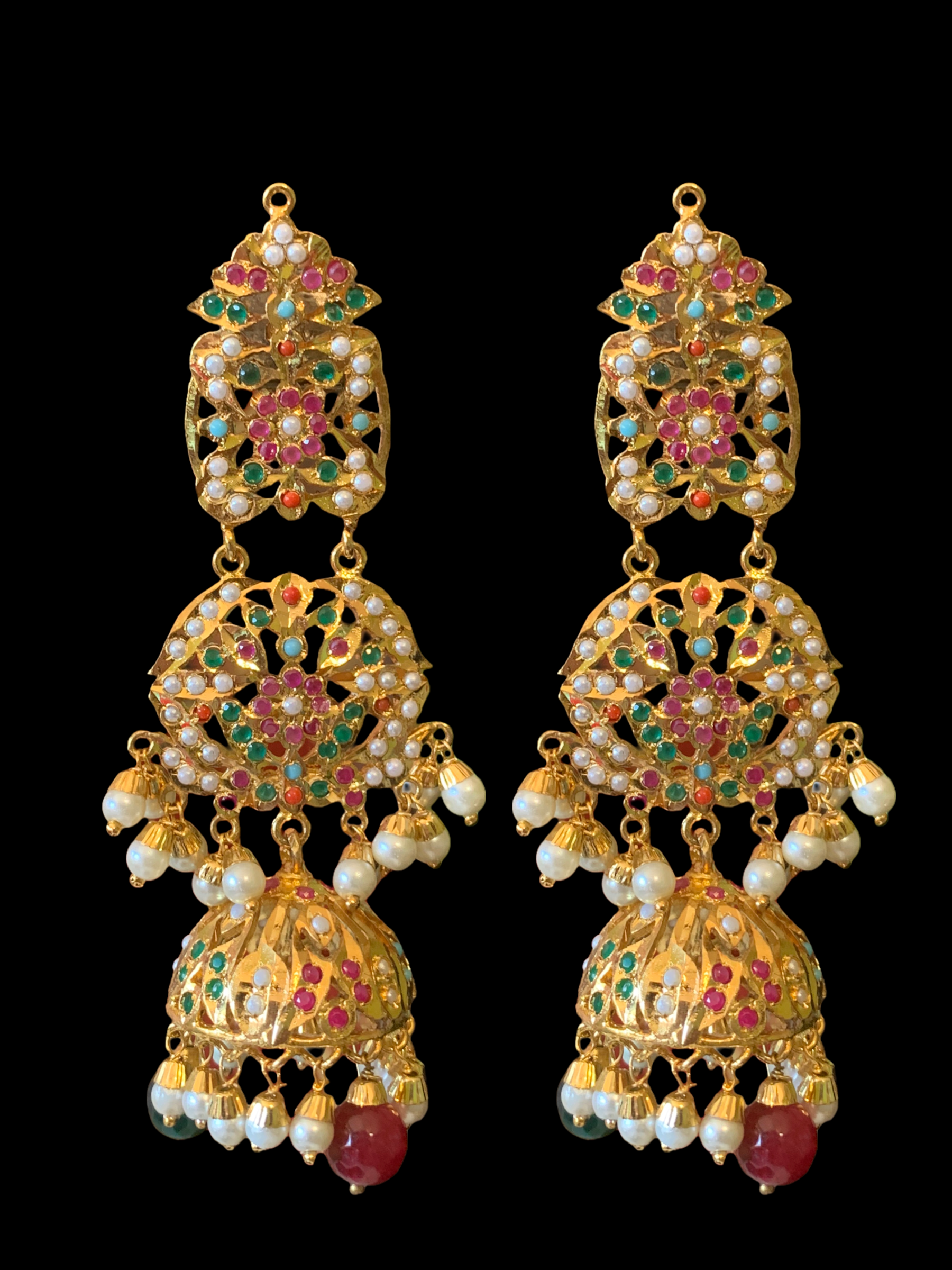 DER359 Vidisha jhumka in navratan ( READY TO SHIP )