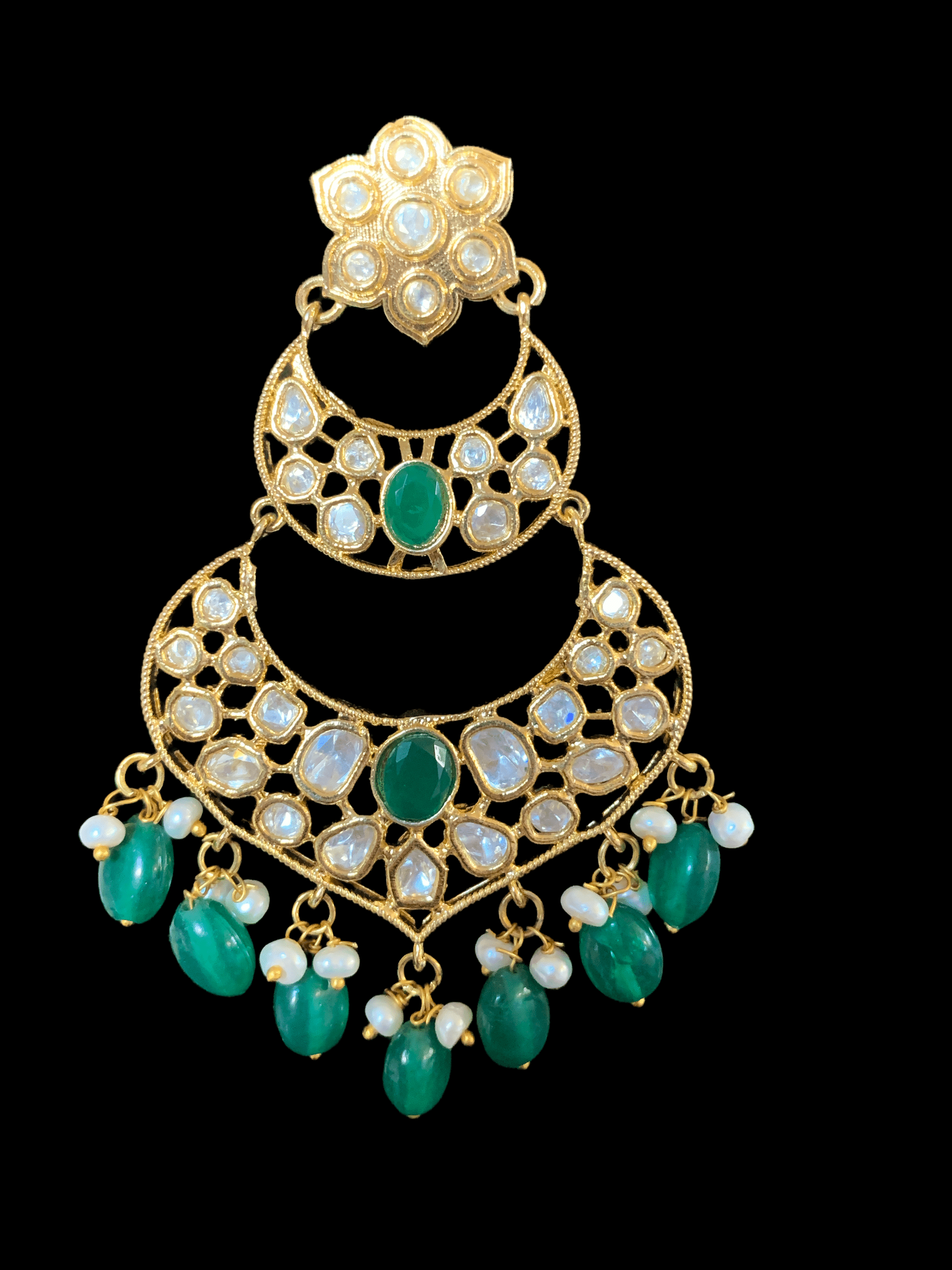 DER90 cz earrings in fresh water pearls- emerald ( READY TO SHIP)