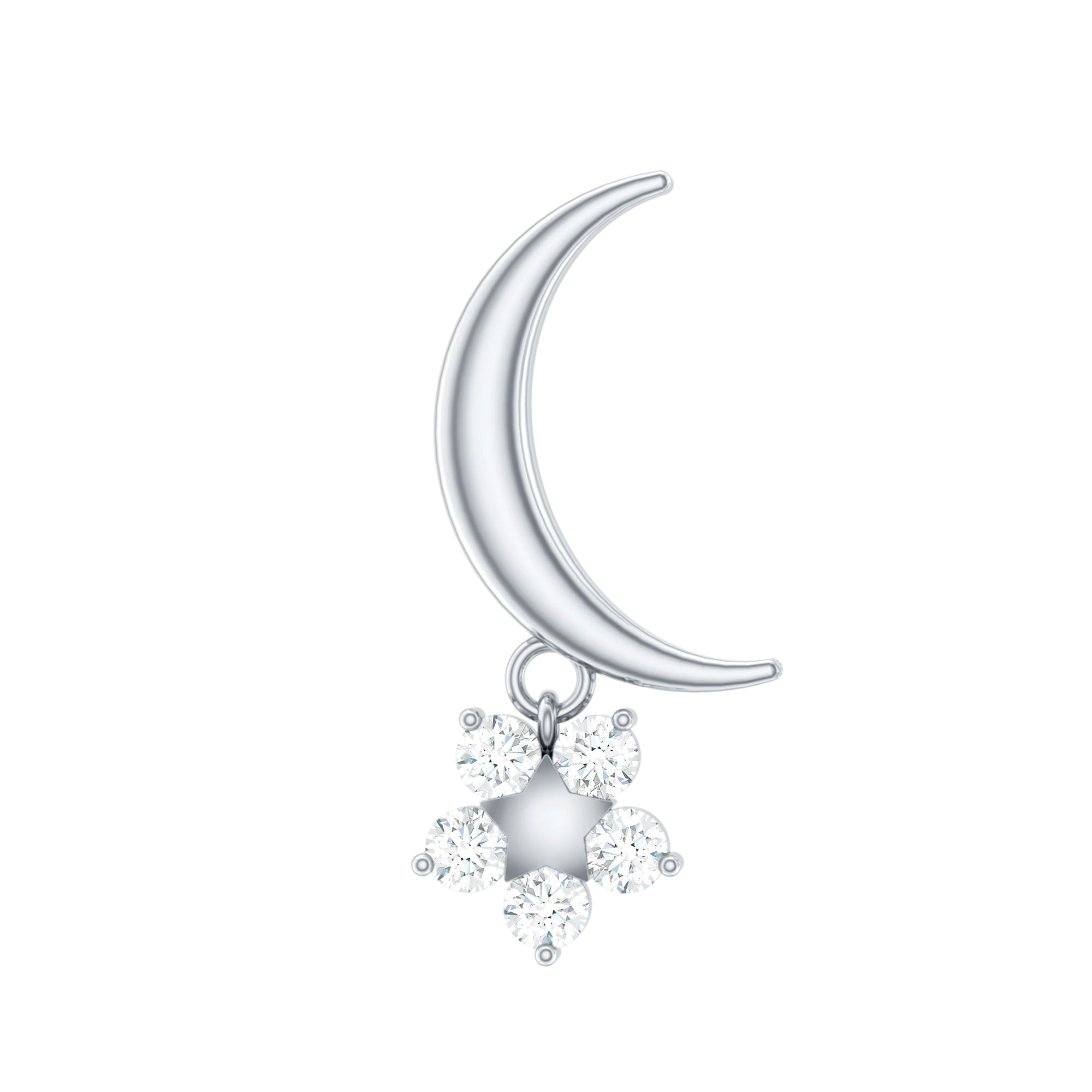Diamond Crescent Moon and Star Earring for Helix Piercing ‐ Lab - ( EF-VS ) / 14K White Gold / Flat Back 5.0 MM