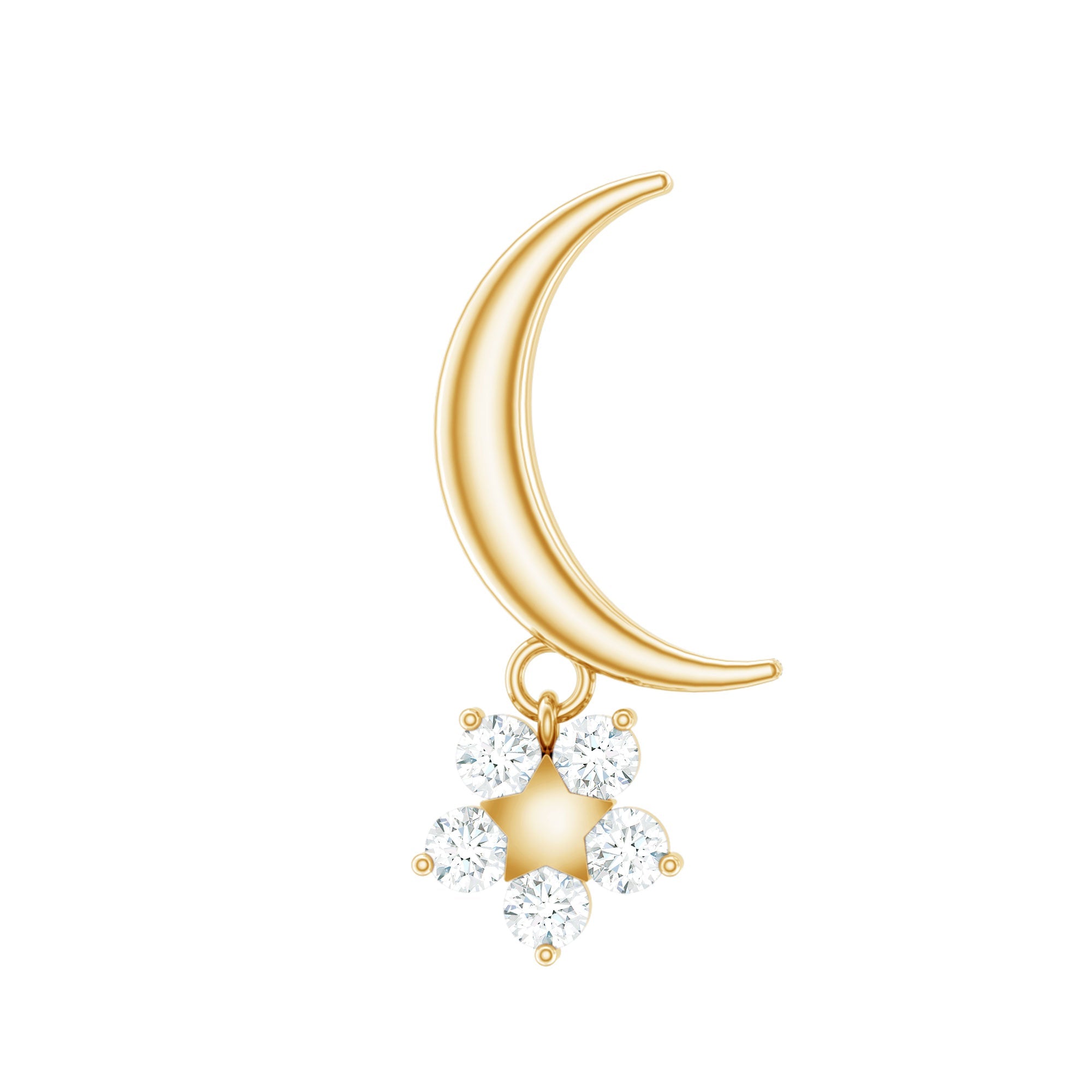 Diamond Crescent Moon and Star Earring for Helix Piercing ‐ Lab - ( EF-VS ) / 14K Yellow Gold / Select Option