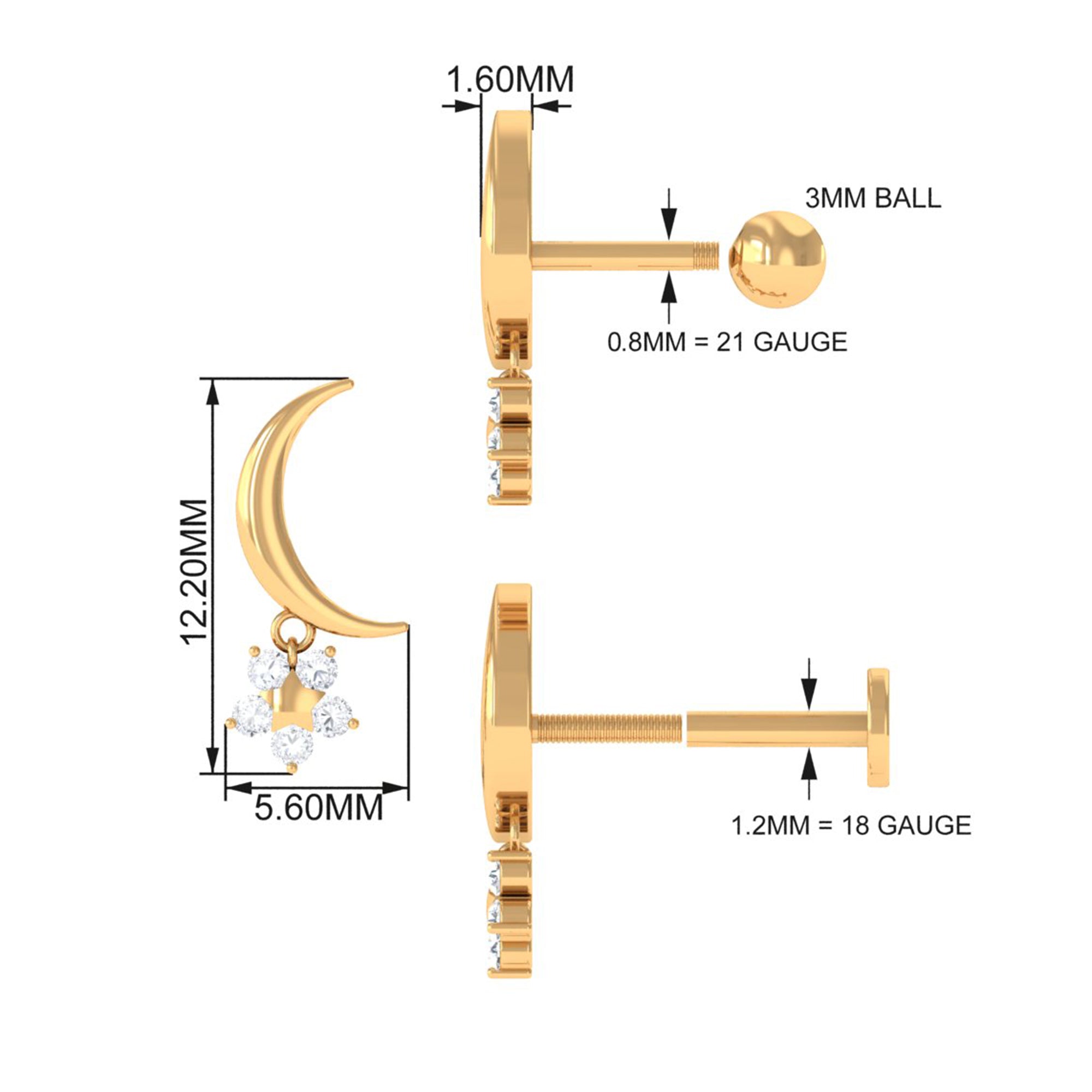 Diamond Crescent Moon and Star Earring for Helix Piercing ‐ Lab - ( EF-VS ) / 18K Yellow Gold / Flat Back 6.0 MM