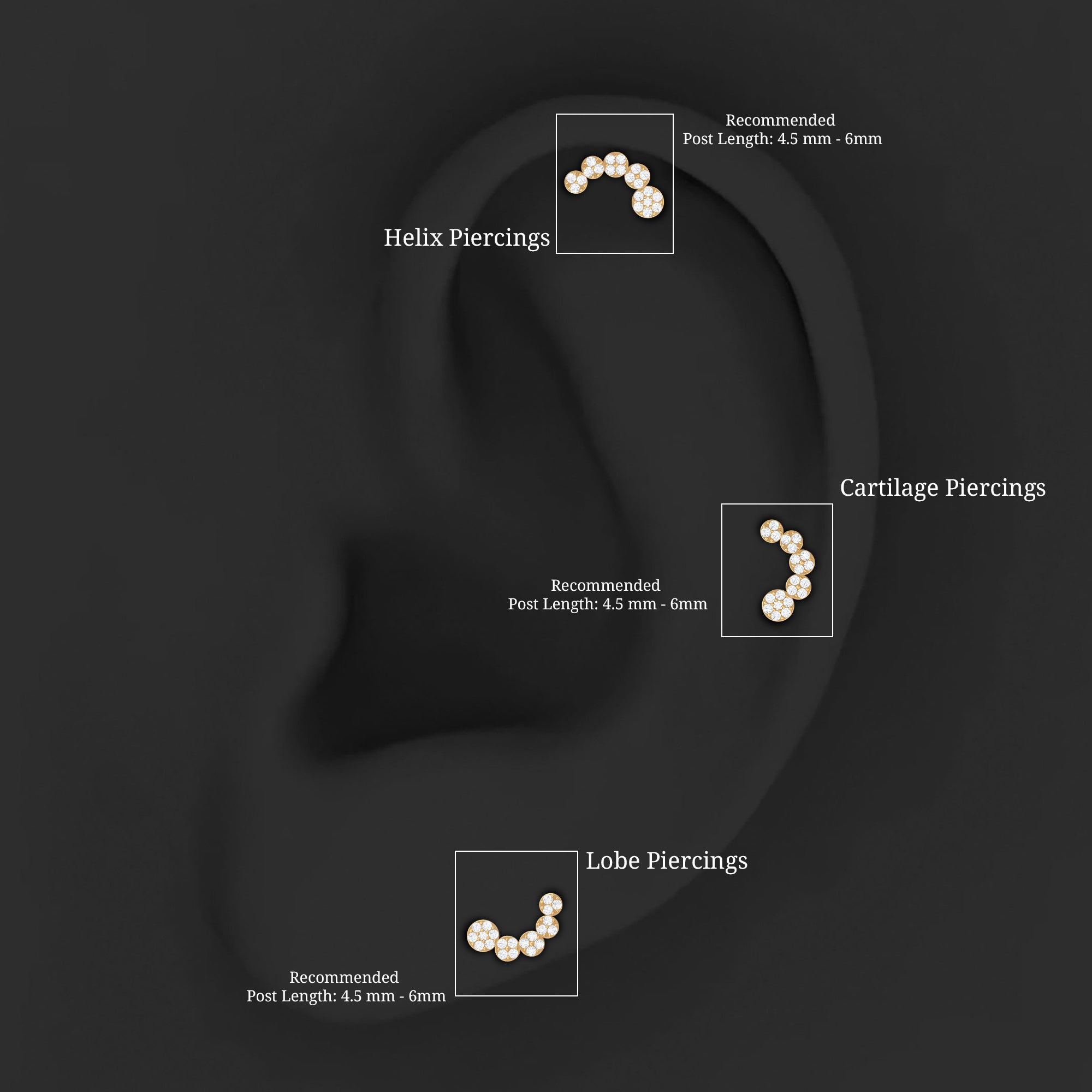 Diamond Gold Curved Crawler Earring for Helix Piercing