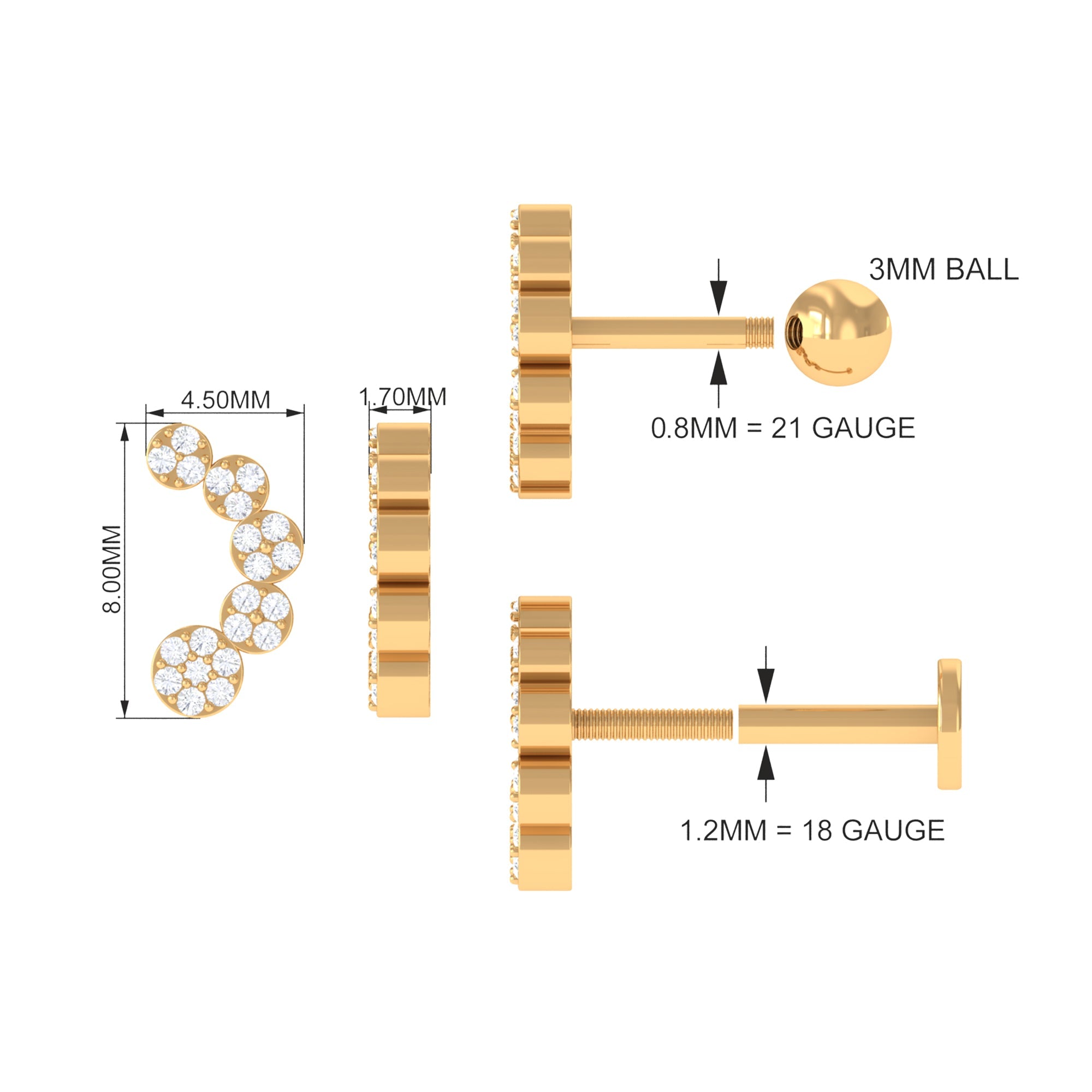 Diamond Gold Curved Crawler Earring for Helix Piercing ‐ Natural - ( HI-SI ) / 18K Yellow Gold / Flat Back 4.5 MM