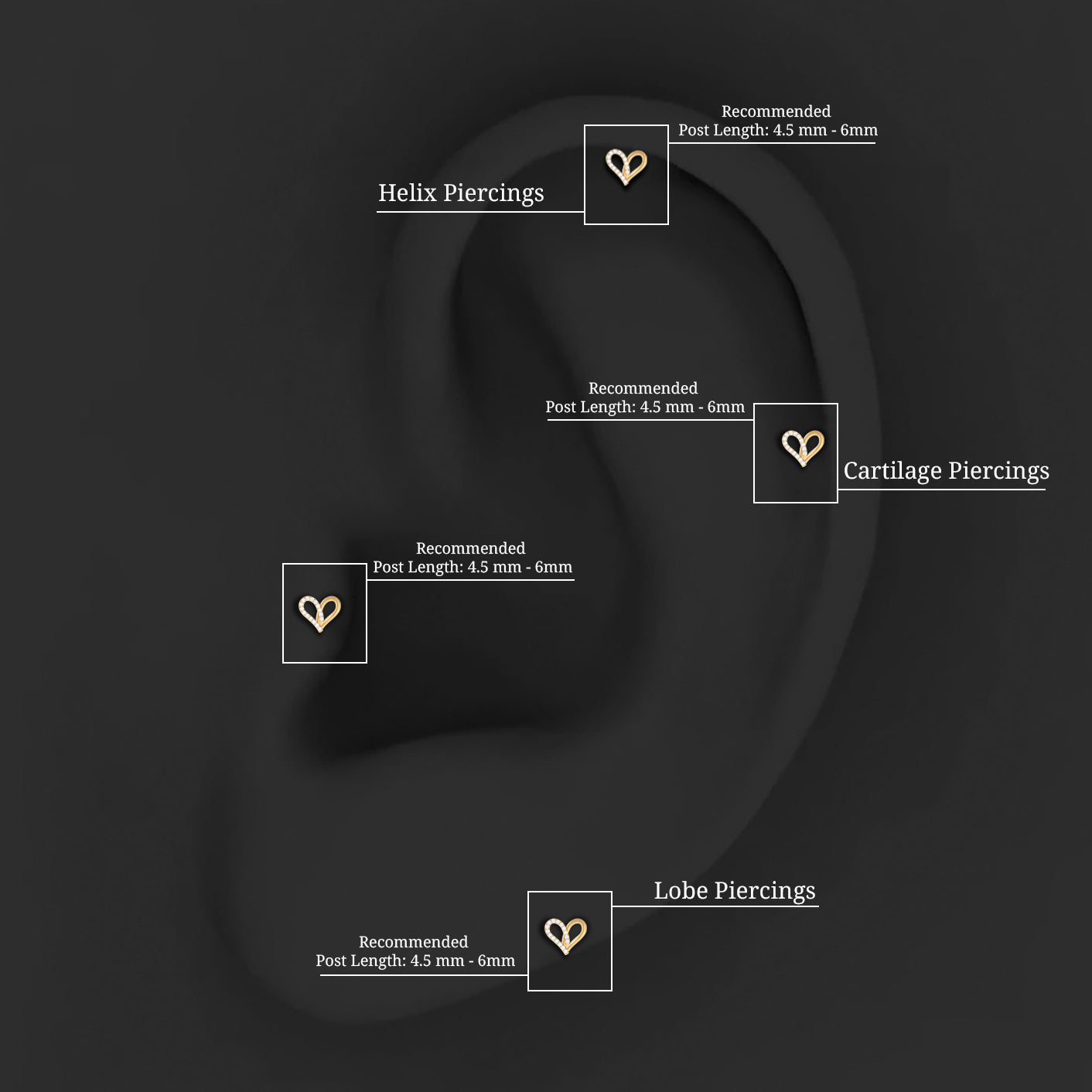 Diamond Heart Earring for Helix Piercing