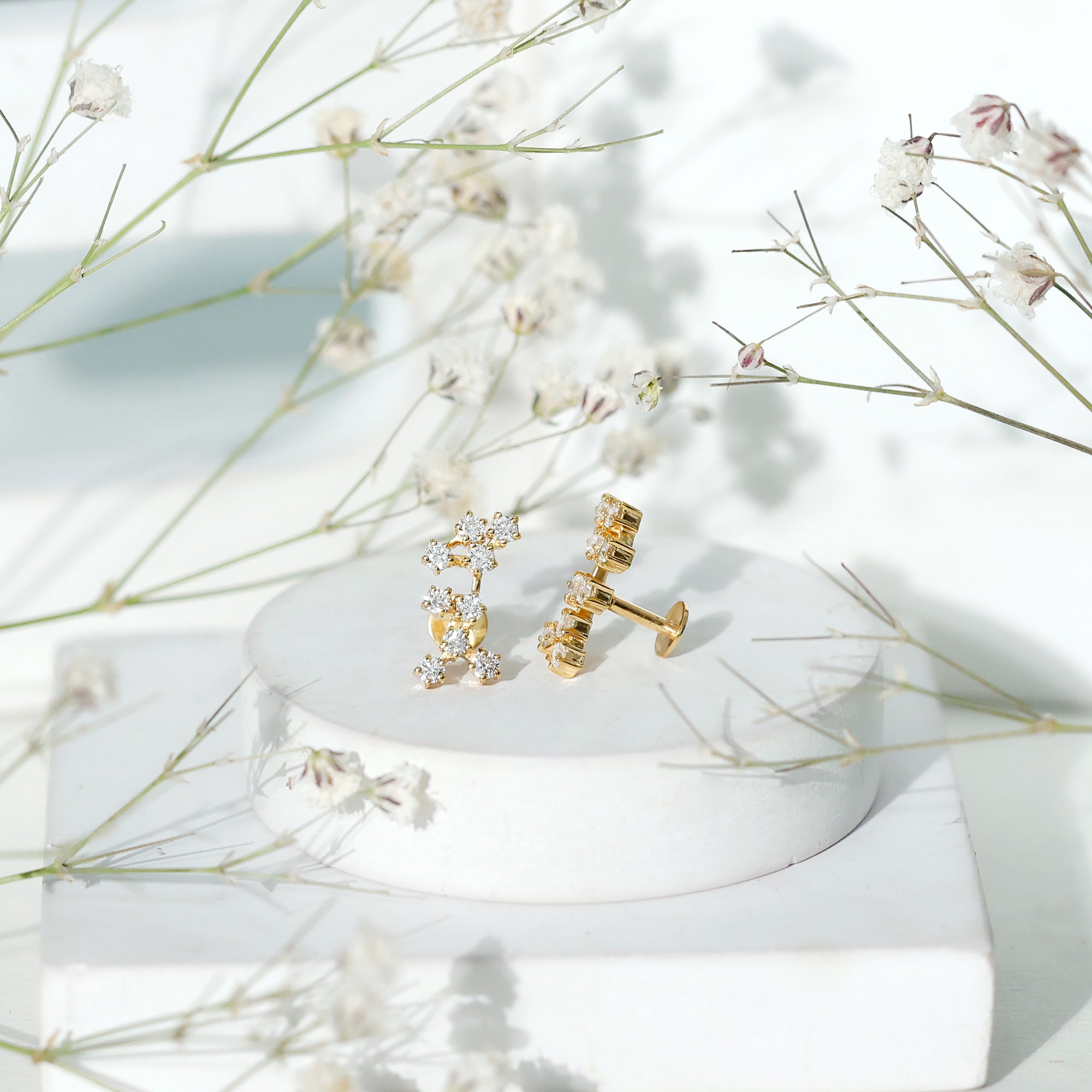 Isnt it time to let your ears do the talking? Check out our fascinating Diamond Sagittarius Earring. This piece showcases Round Diamonds set in a prong setting, forming a constellation design that is sure to attract attention. The Diamond Constellation Earring is ideal for your Helix, Cartilage, or Upper Lobe Piercings, and the Flat Back Closure guarantees it remains securely in place. Whether its for a birthday, an anniversary, or simply to show you care, this Celestial Earring is a wonderful way to express your feelings for her. Adorn her ear with this Star Sign Earring and delight your Sagittarius lady in the most charming way. Flaunt the earring at evening gatherings, work functions, date nights, or any special event. The endless sparkle and brilliant shine of this zodiac jewelry will undoubtedly catch your eye and make it a cherished accessory. Personalize your style with this fashionable earring. Perfect for those born between November 22 and December 21, this minimalist jewelry piece holds great significance. Now, you can effortlessly showcase your sign without uttering a word - just wear it proudly on your ear. It includes an Authenticity Certificate and comes in a luxurious box.