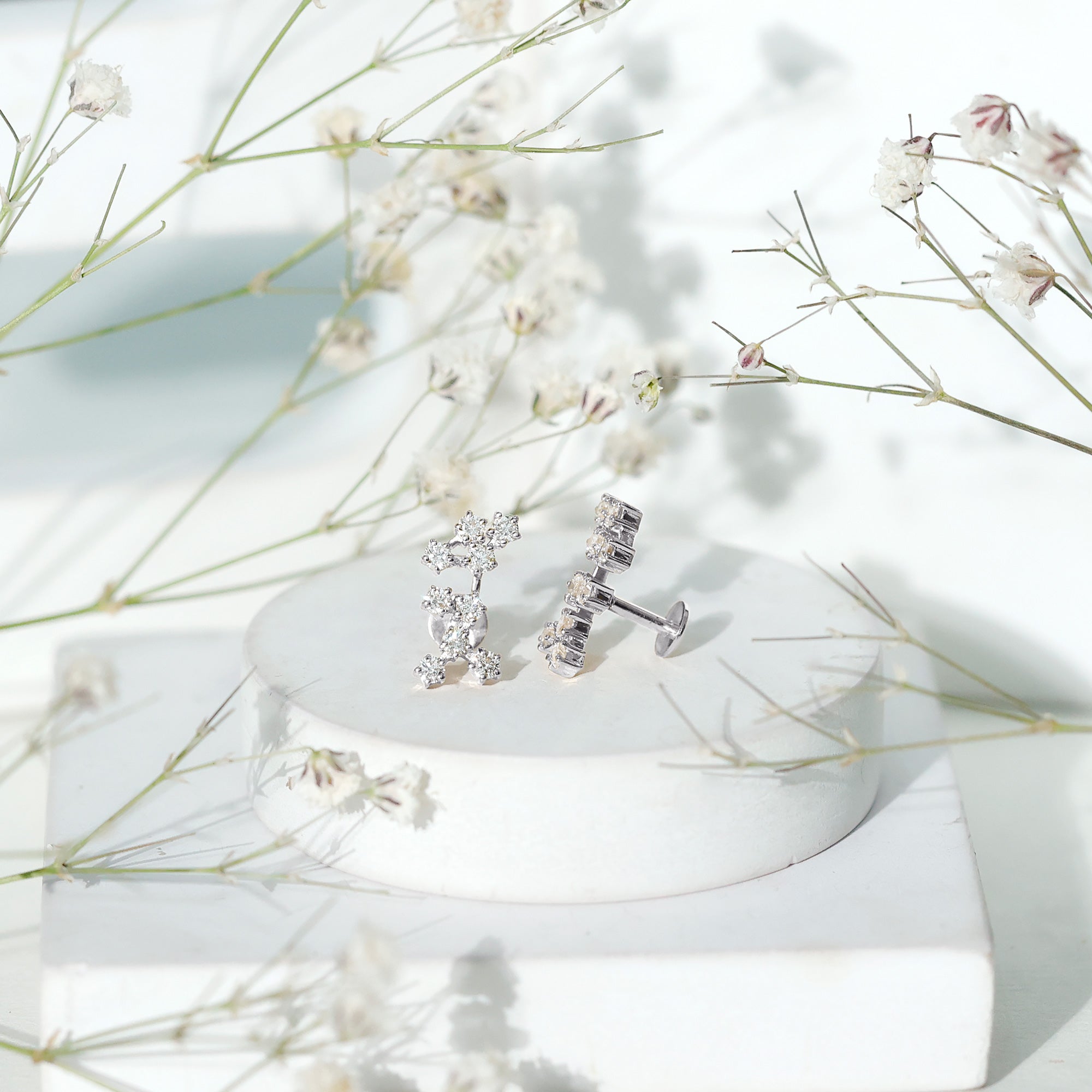 Diamond Sagittarius Zodiac Earring for Helix Piercing ‐ Lab - ( EF-VS ) / 18K White Gold / Flat Back 6.0 MM