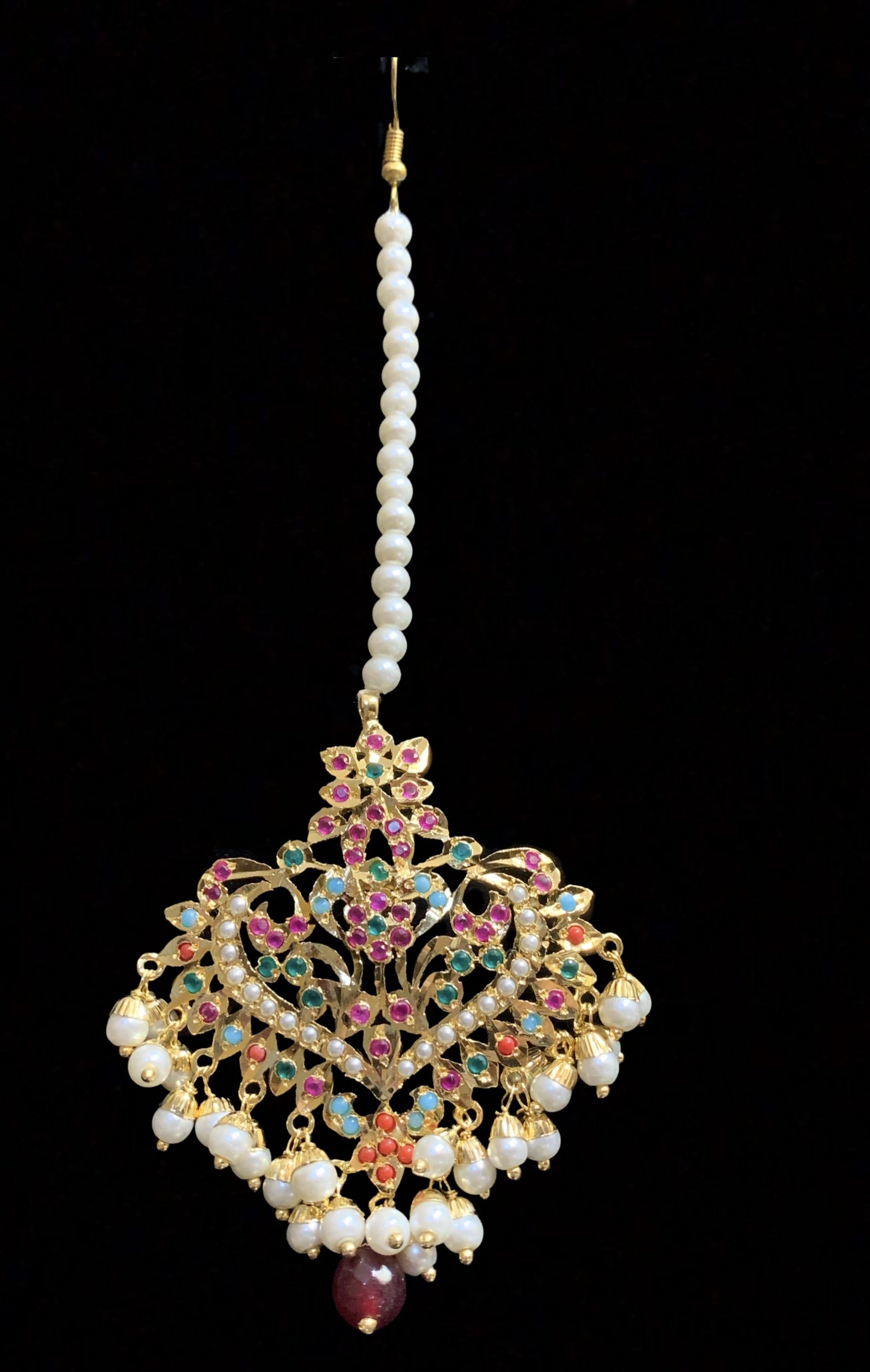 DJET52 Afreen Navratan earrings tika ( READY TO SHIP )