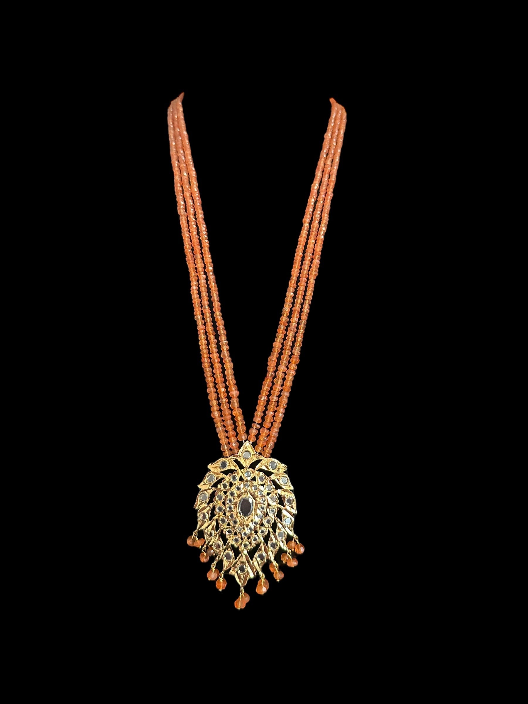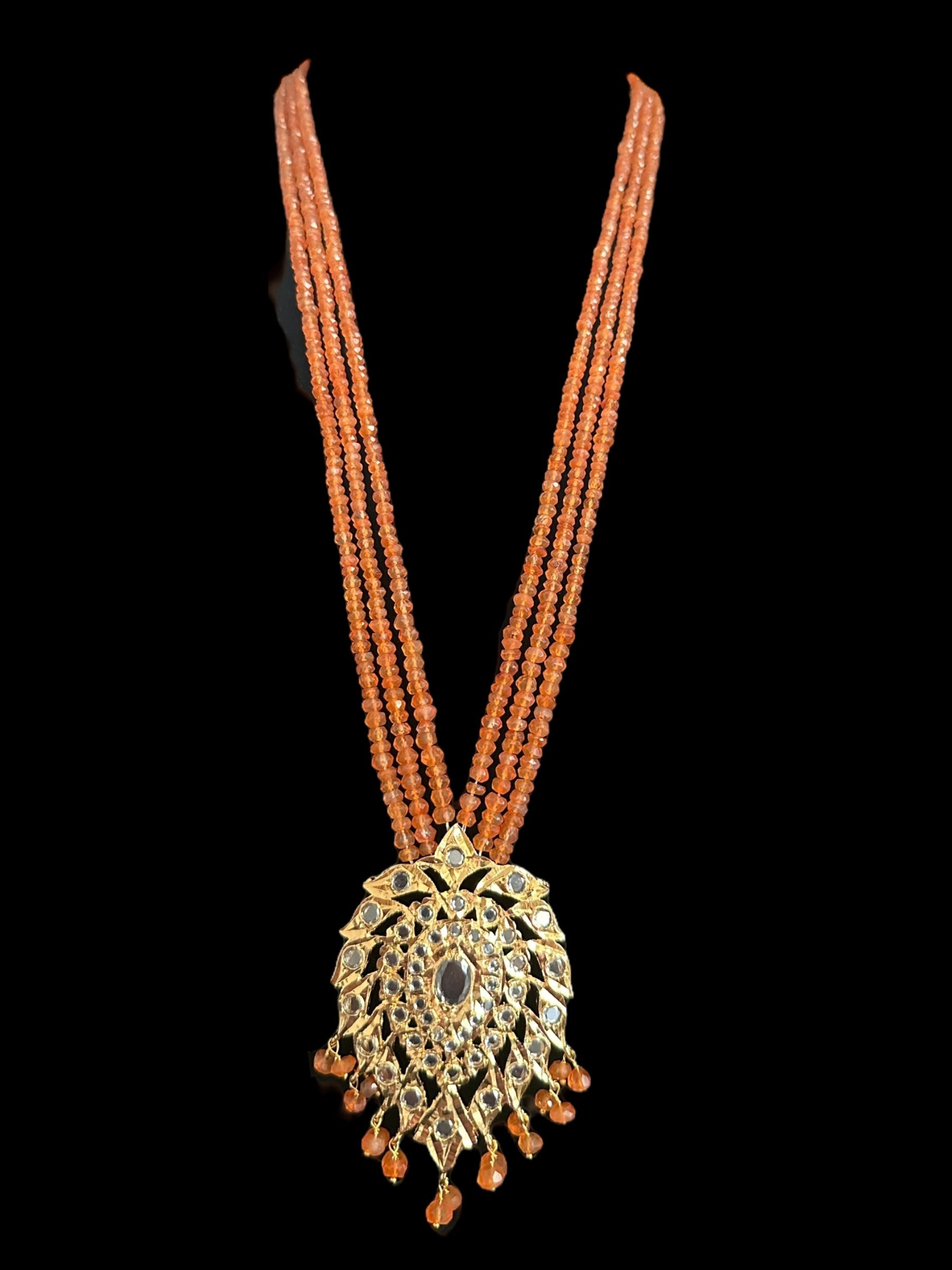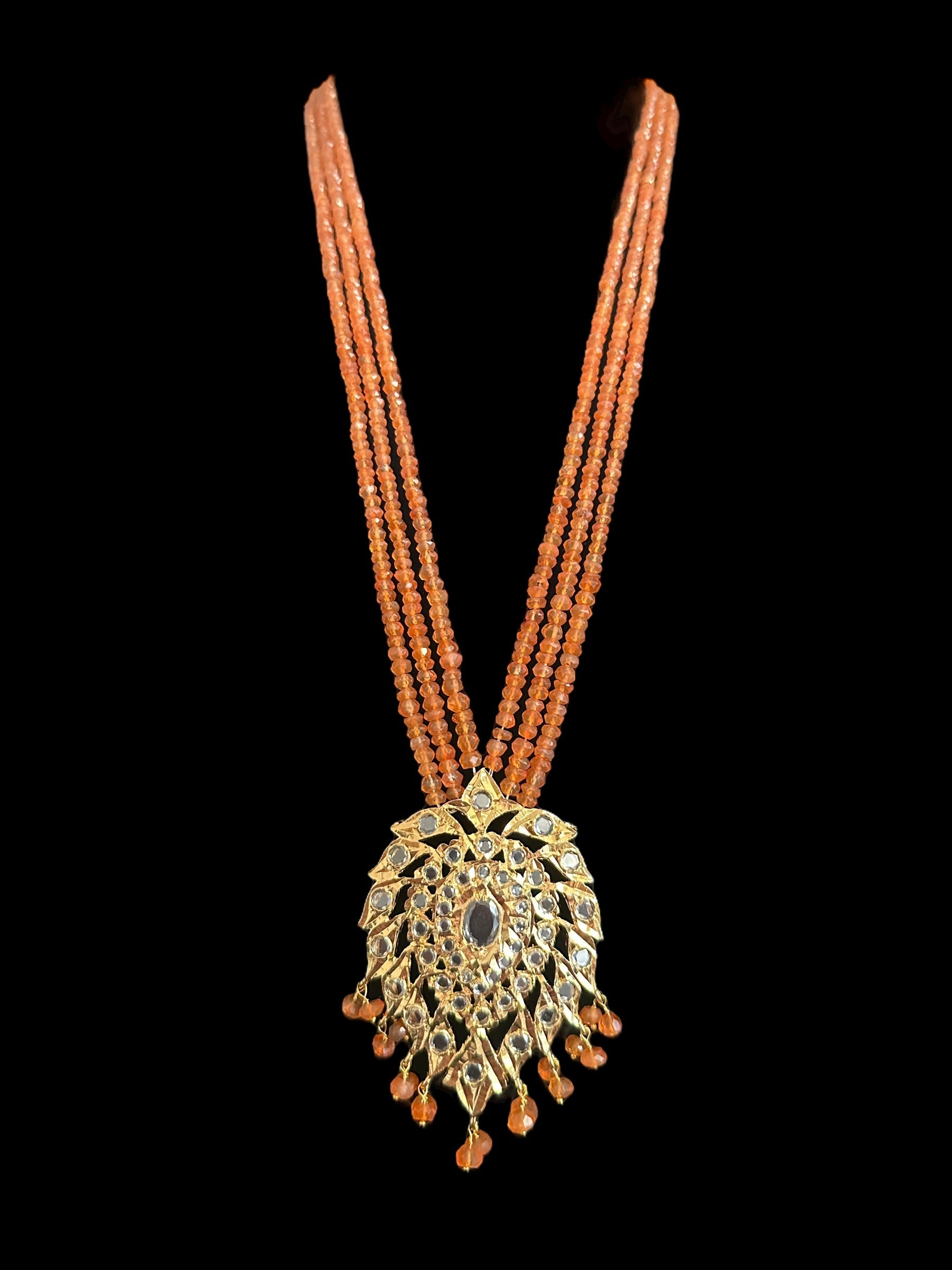 DLN122 Alvira long necklace with earrings in real carnelian beads ( SHIPS IN 2 WEEKS )