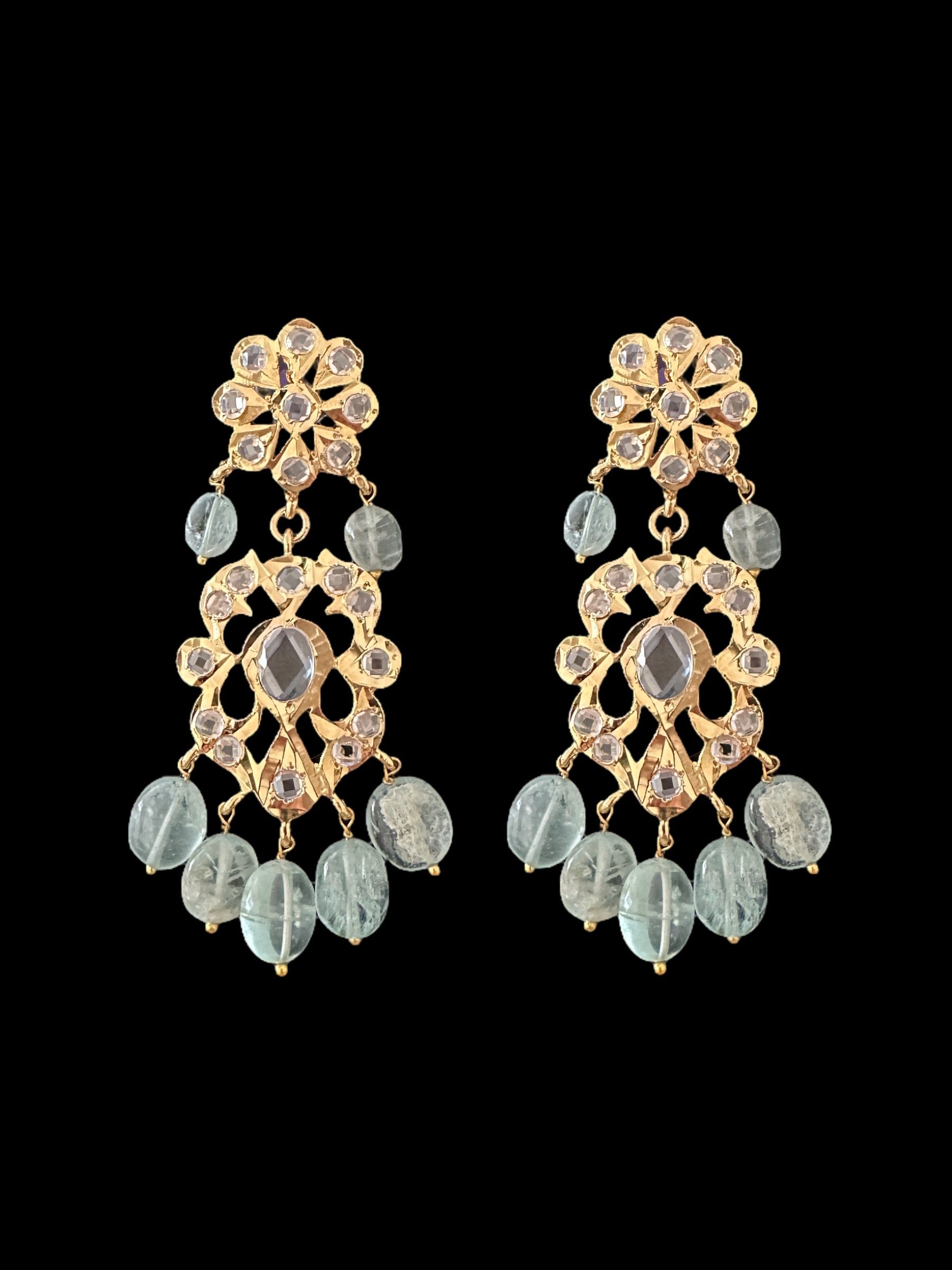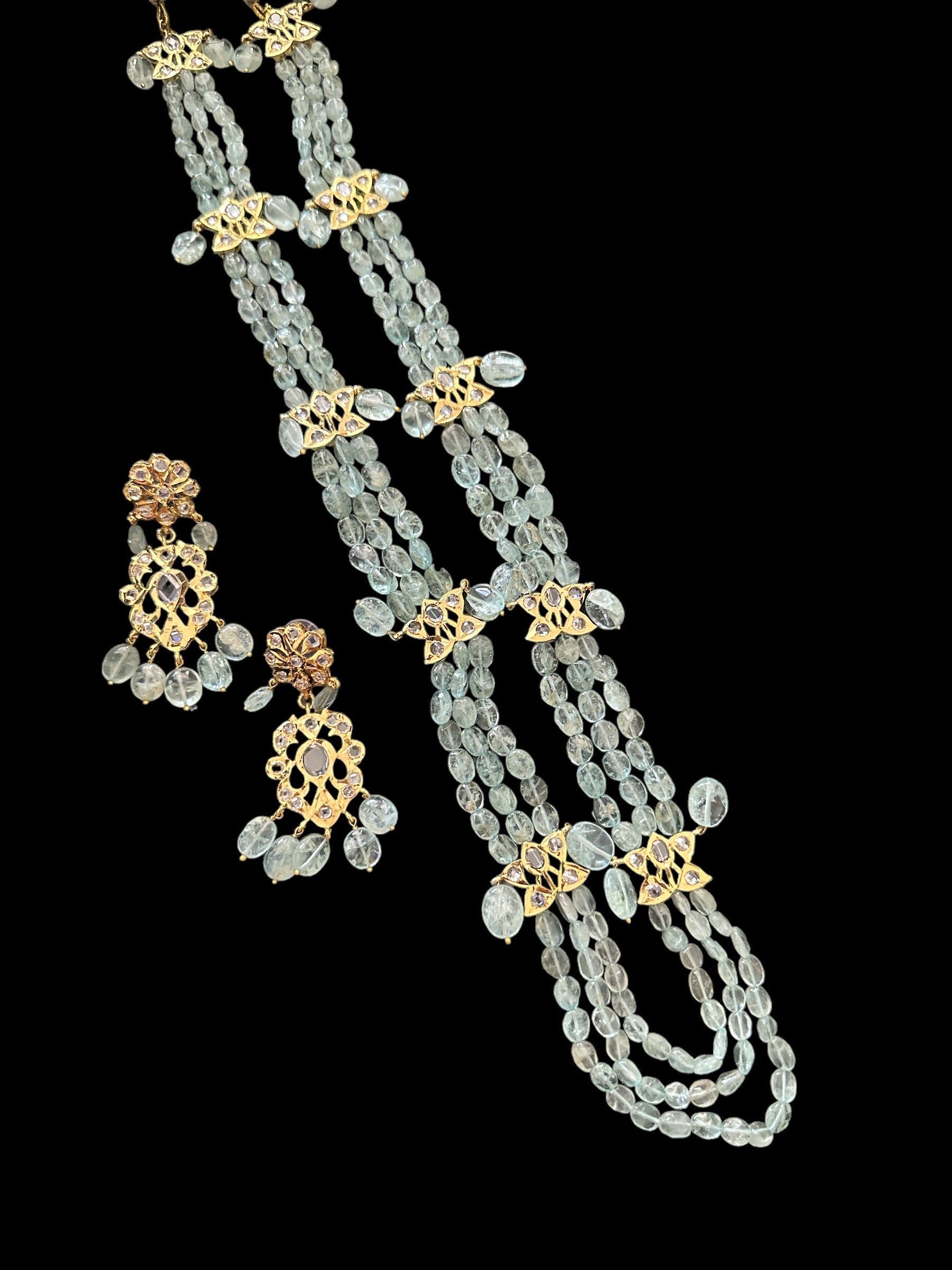 DLN63 aquamarine beads Rani haar with earrings ( READY TO SHIP )