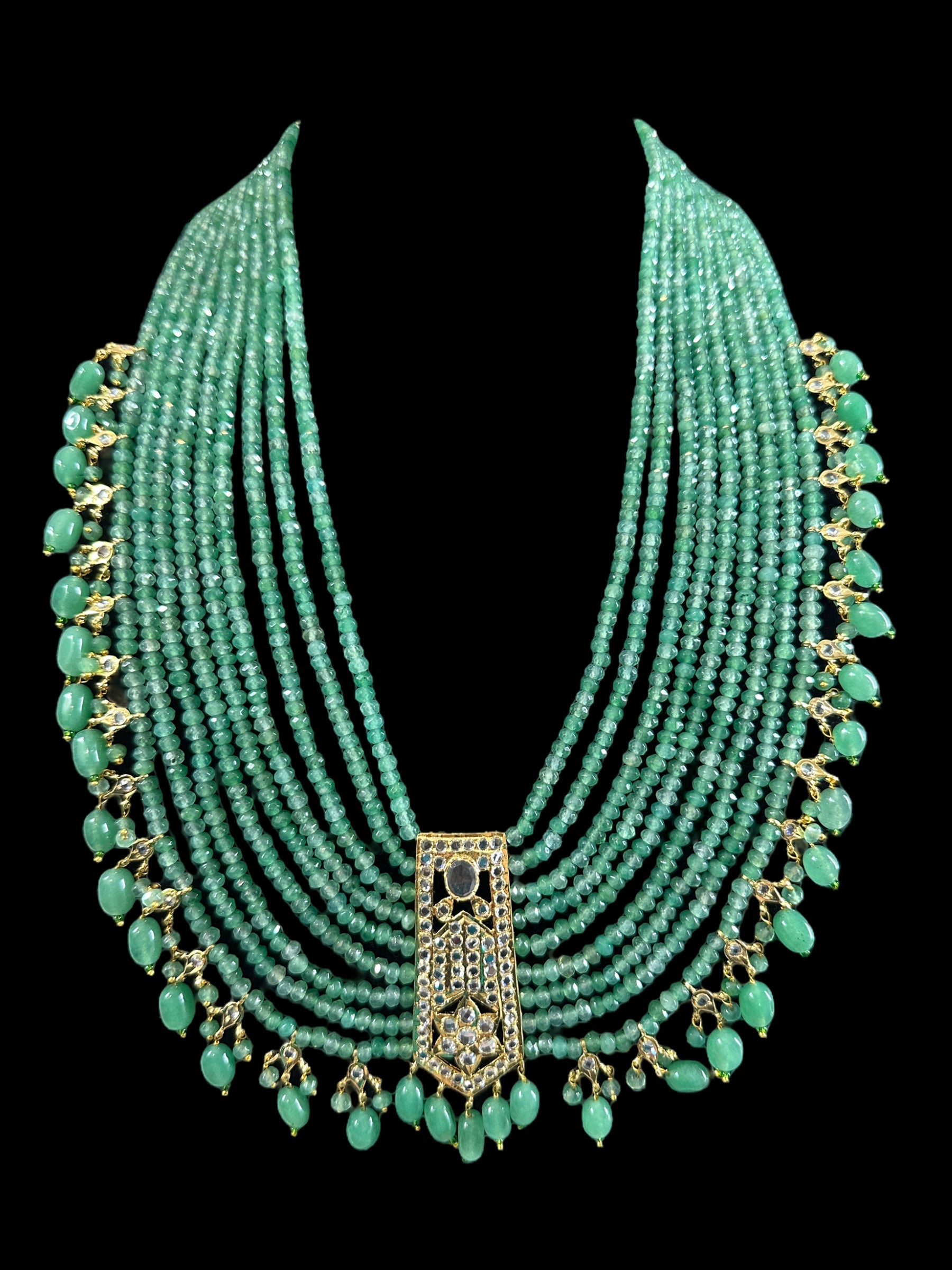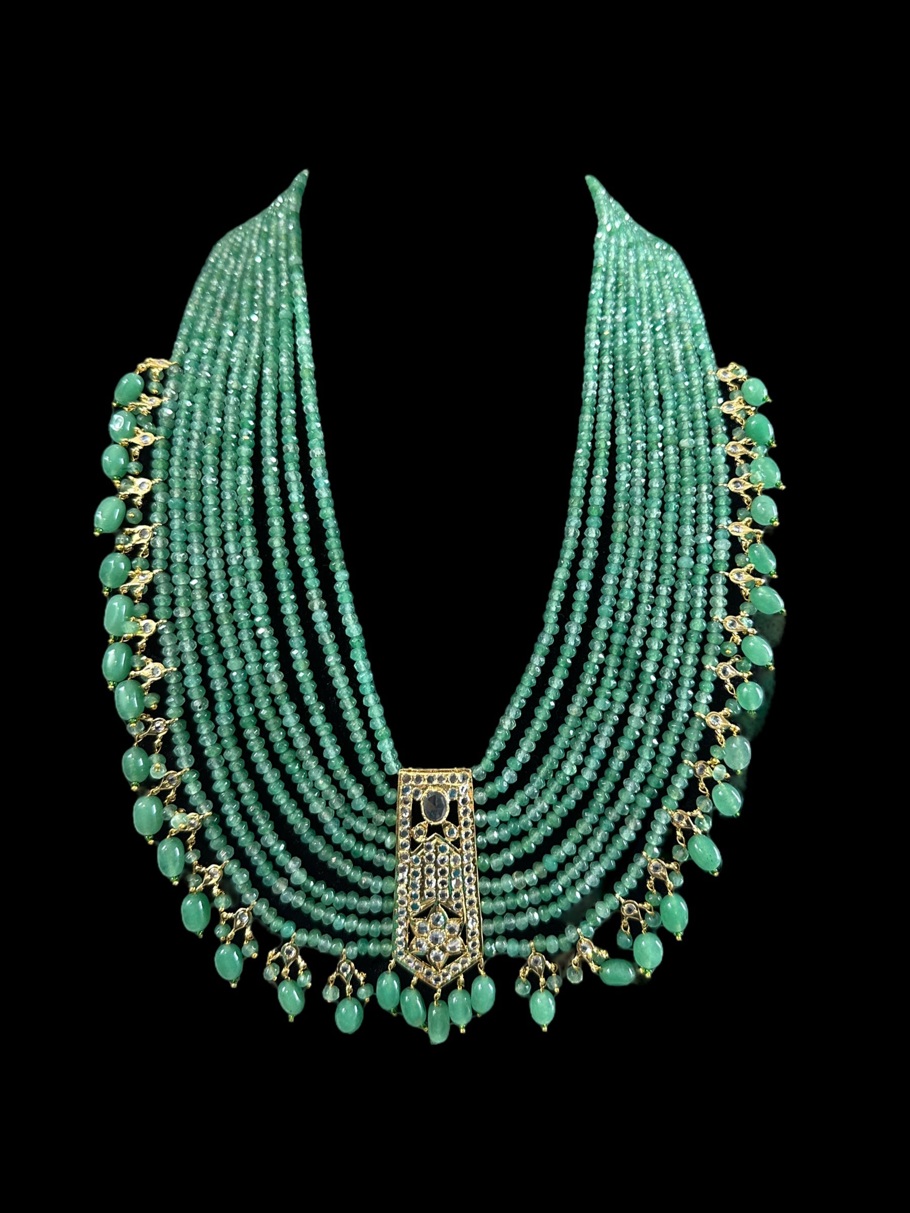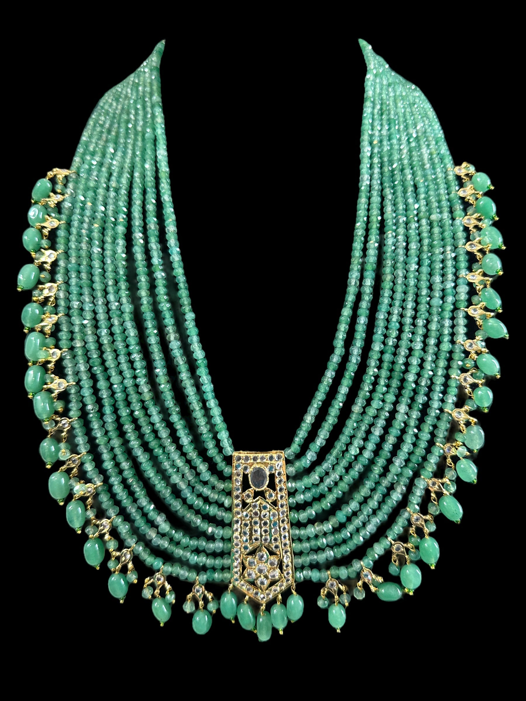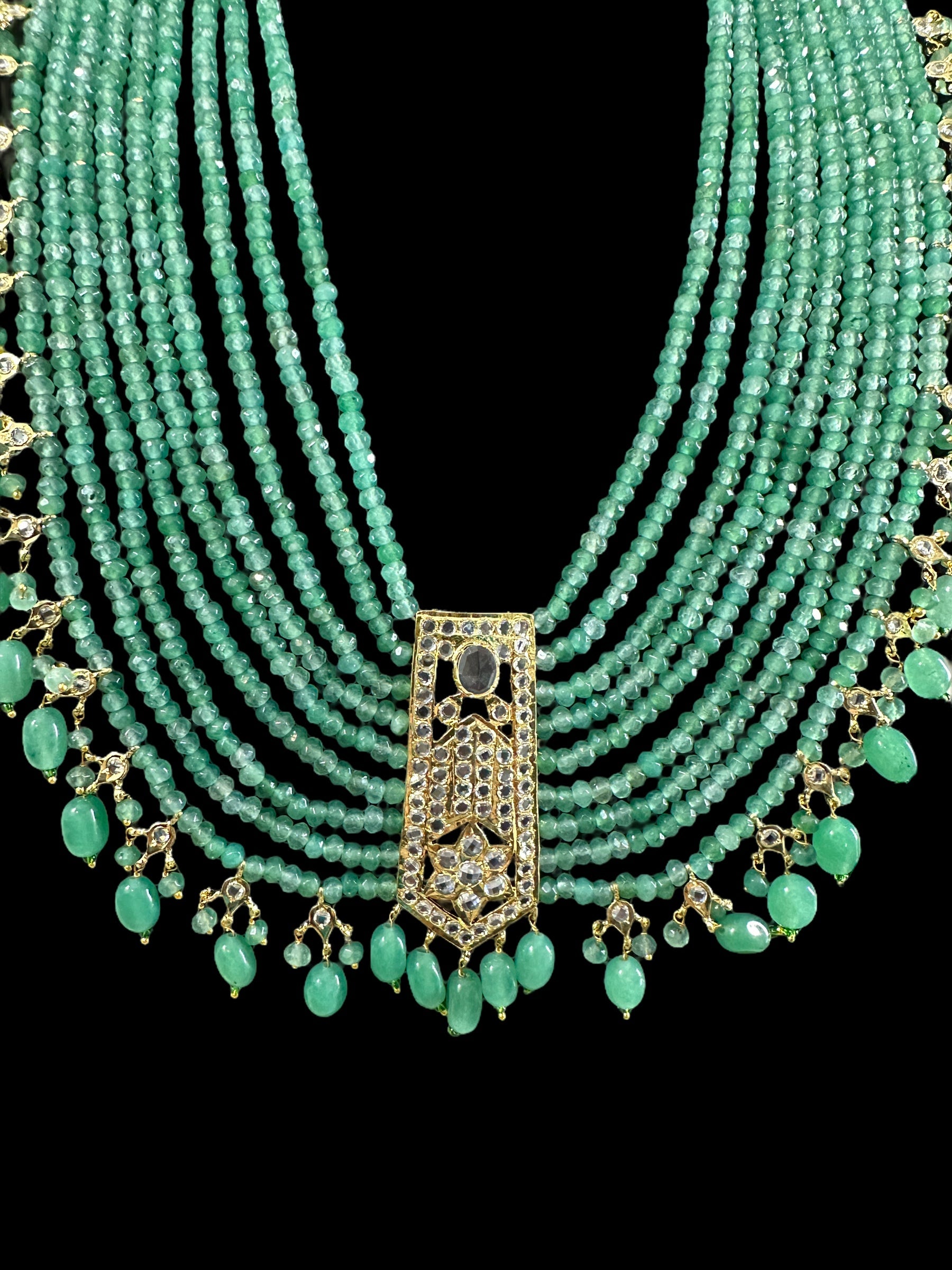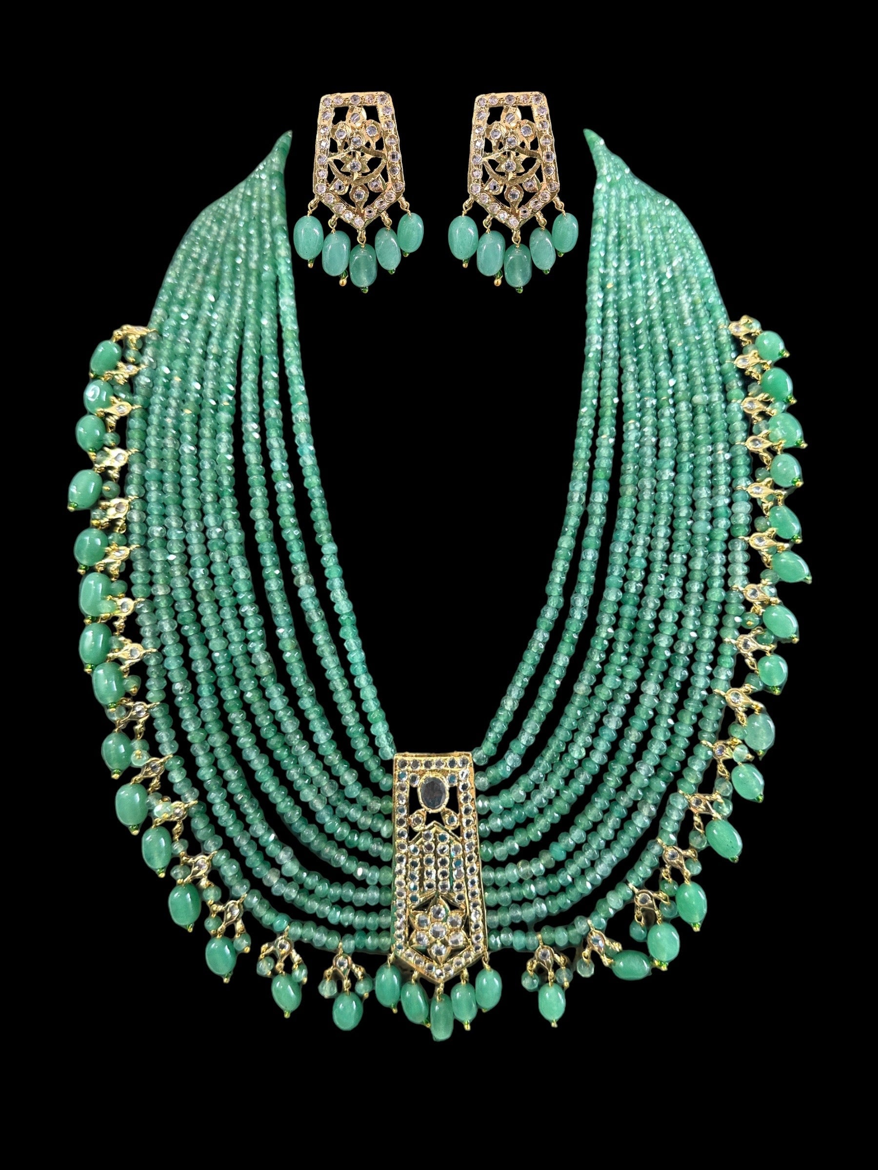 long necklace made using semi precious beads and cz polki .