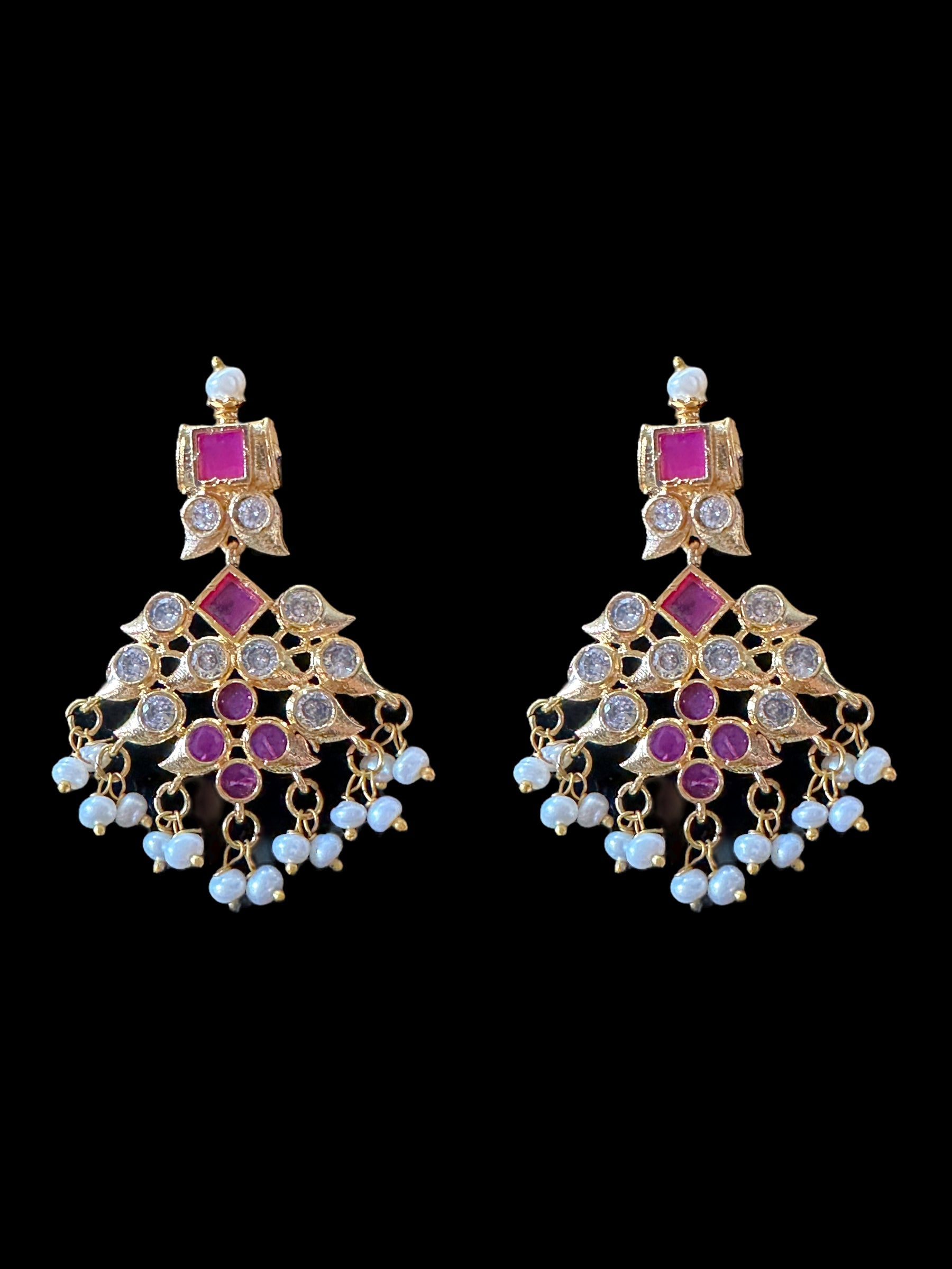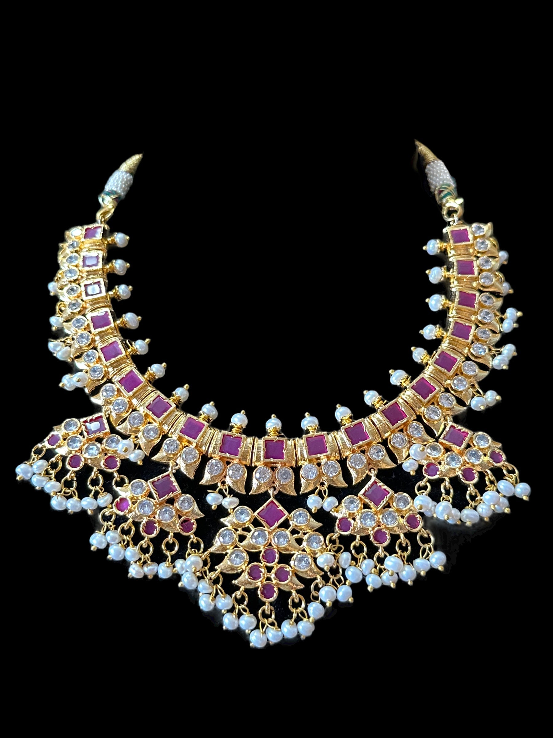 DNS28 Ruby zircon necklace with earrings - fresh water pearls ( READY TO SHIP )