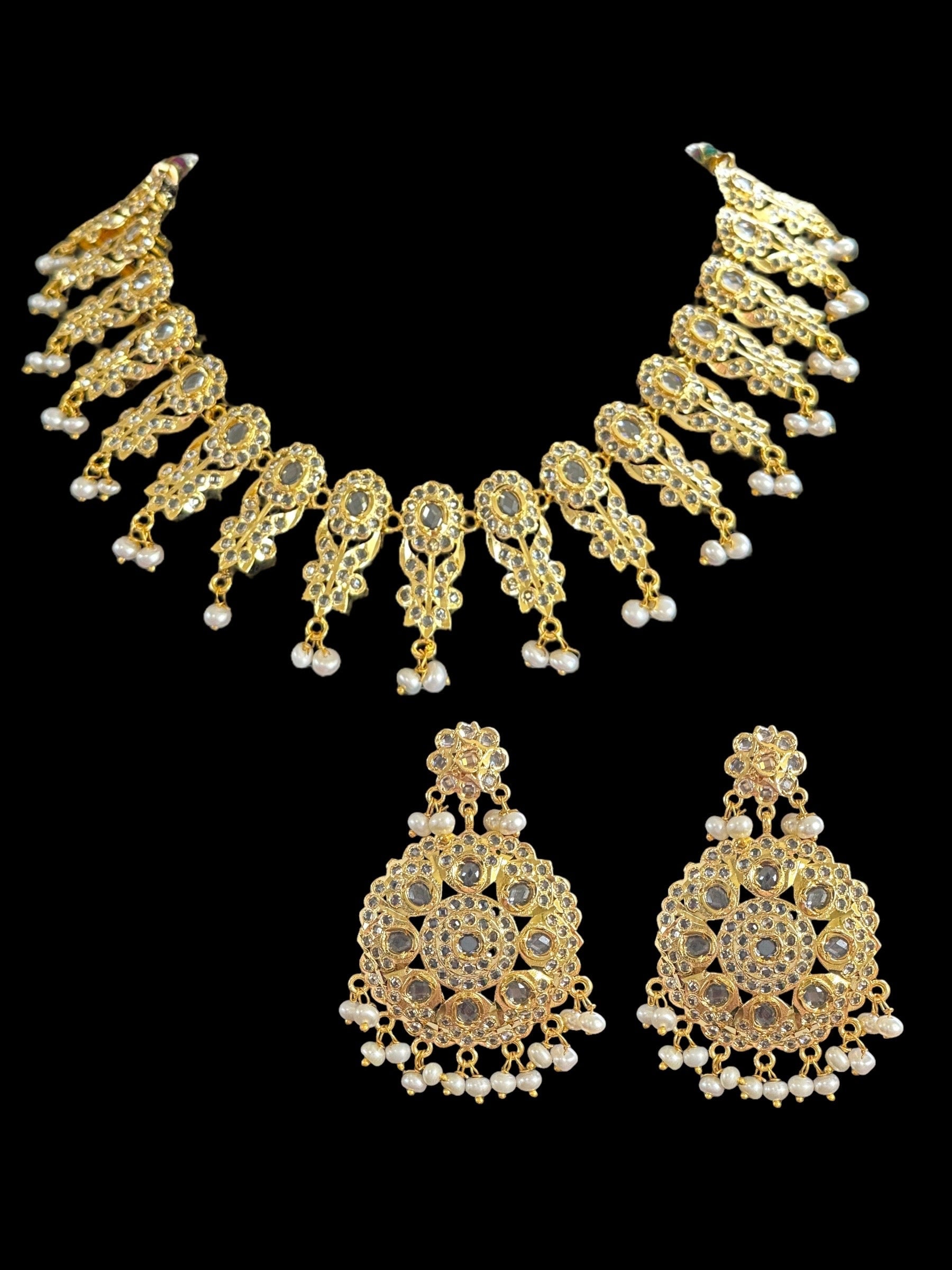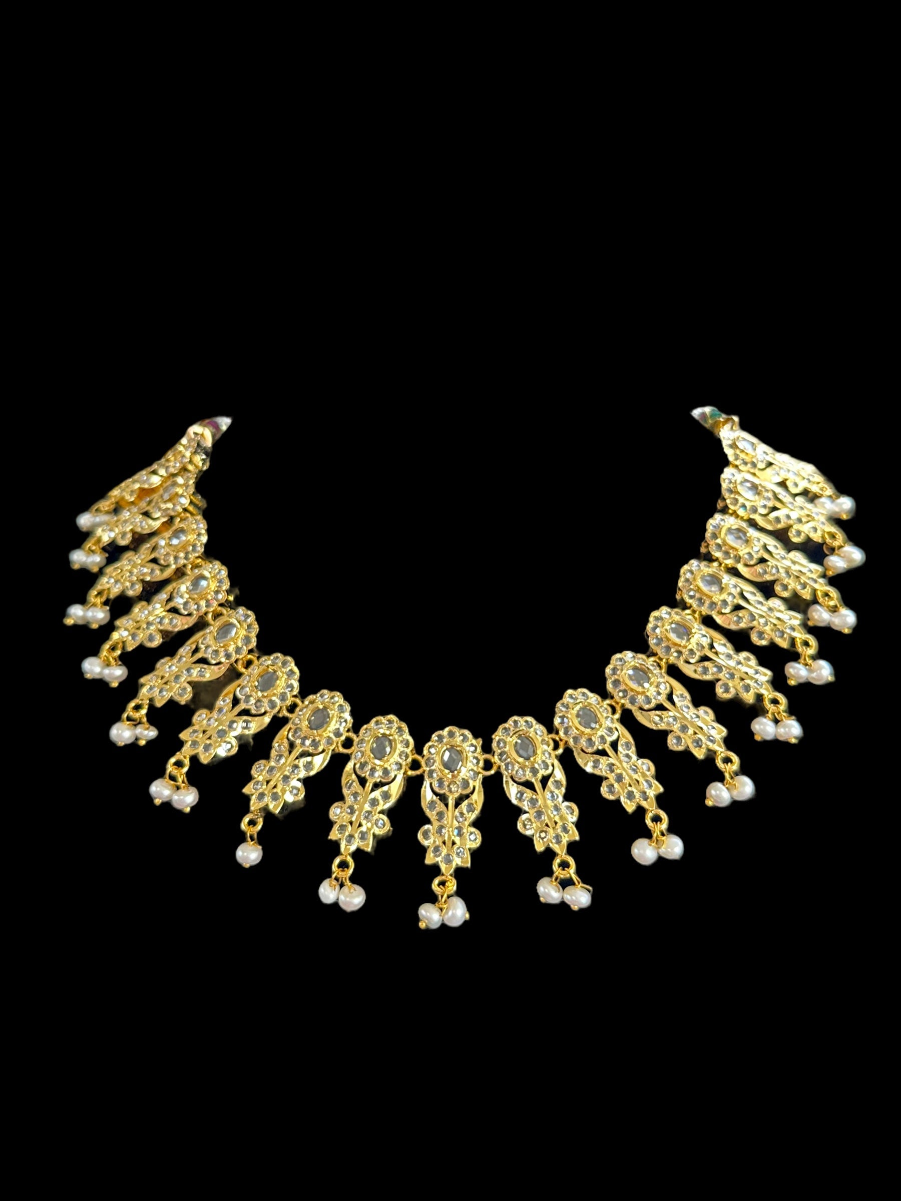 DNS48 Simeon gold plated Hyderabadi necklace in fresh water pearls ( READY TO SHIP)