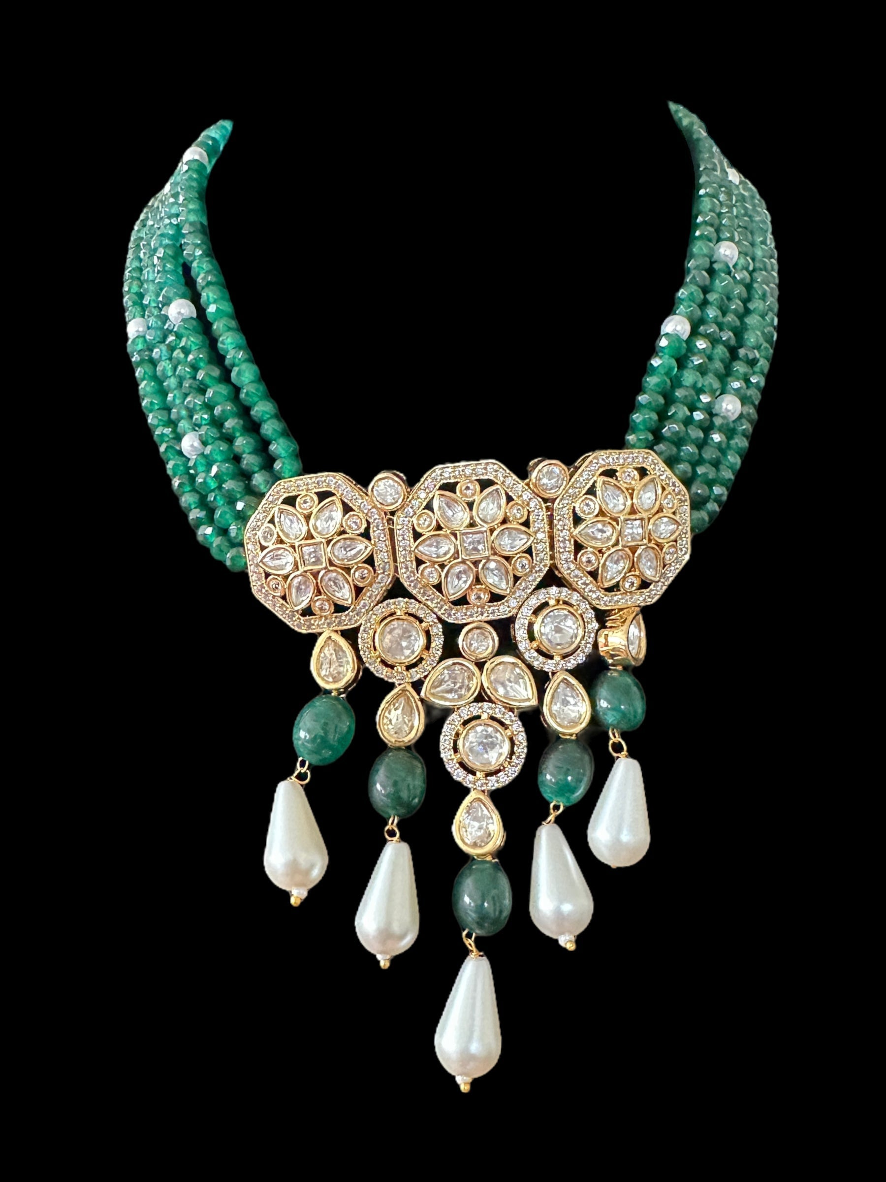 DNS6 short necklace with earrings tika in Polki ( READY TO SHIP )