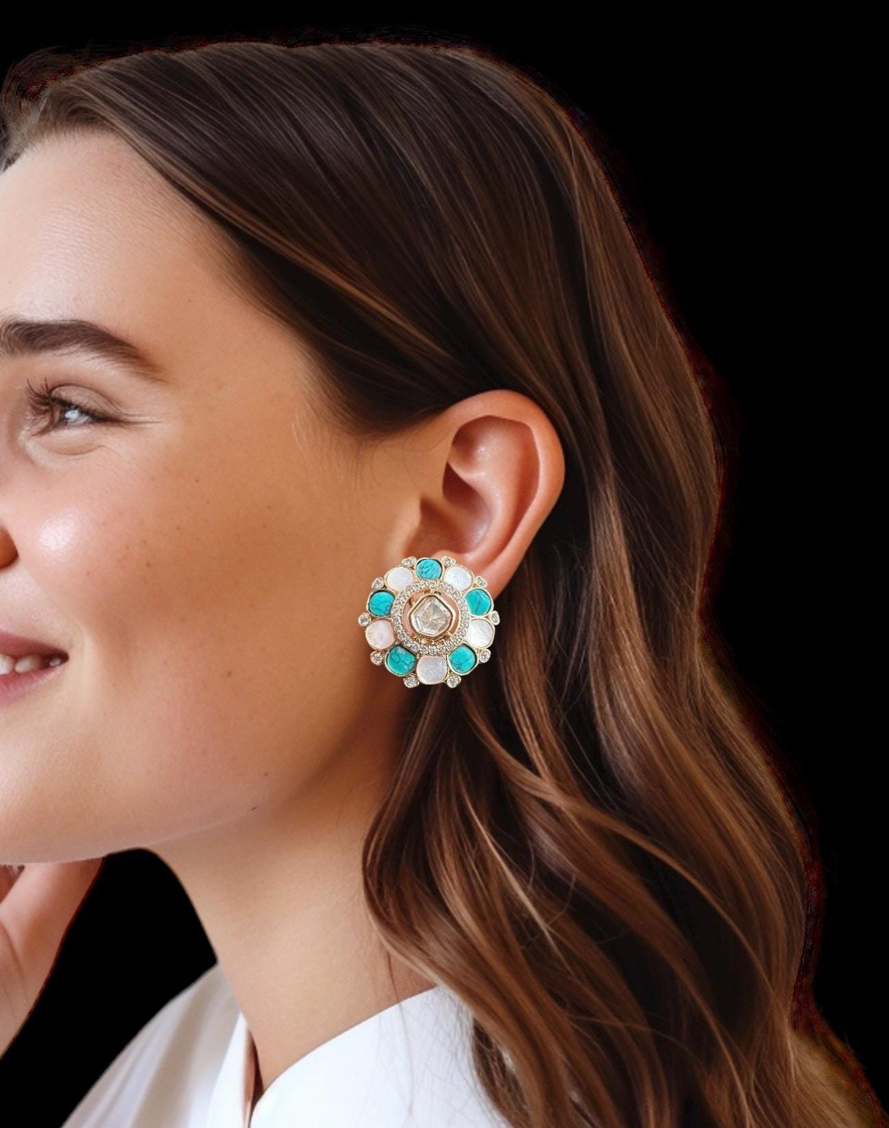 ET559 rose gold plated tops with mother of pearl and turquoise ( READY TO SHIP )