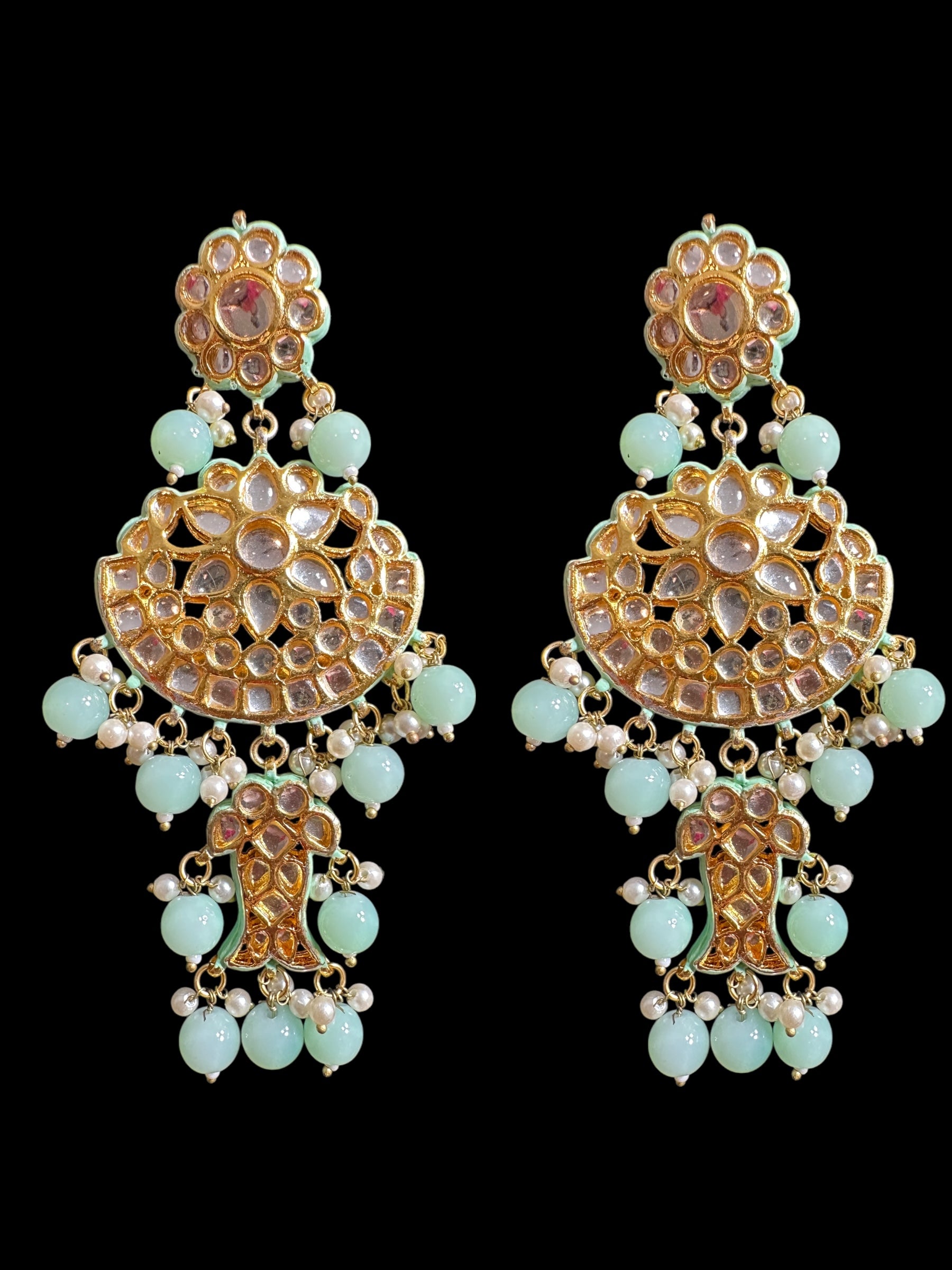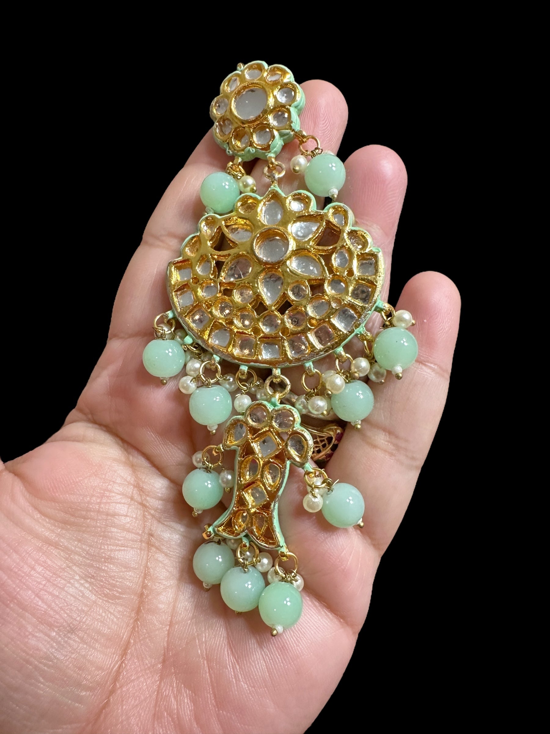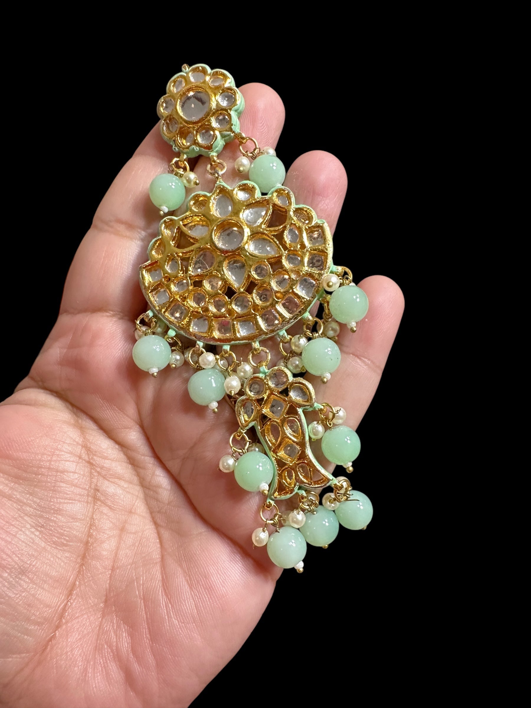 Farwah large Kundan earrings - Mint ( READY TO SHIP )