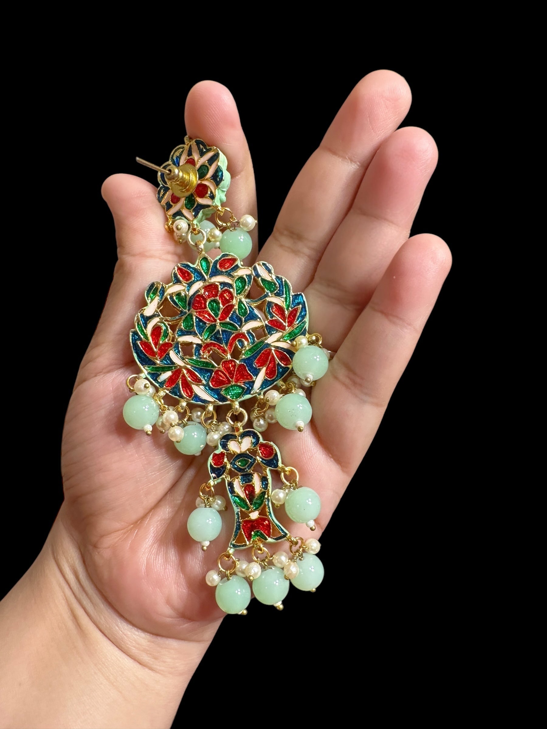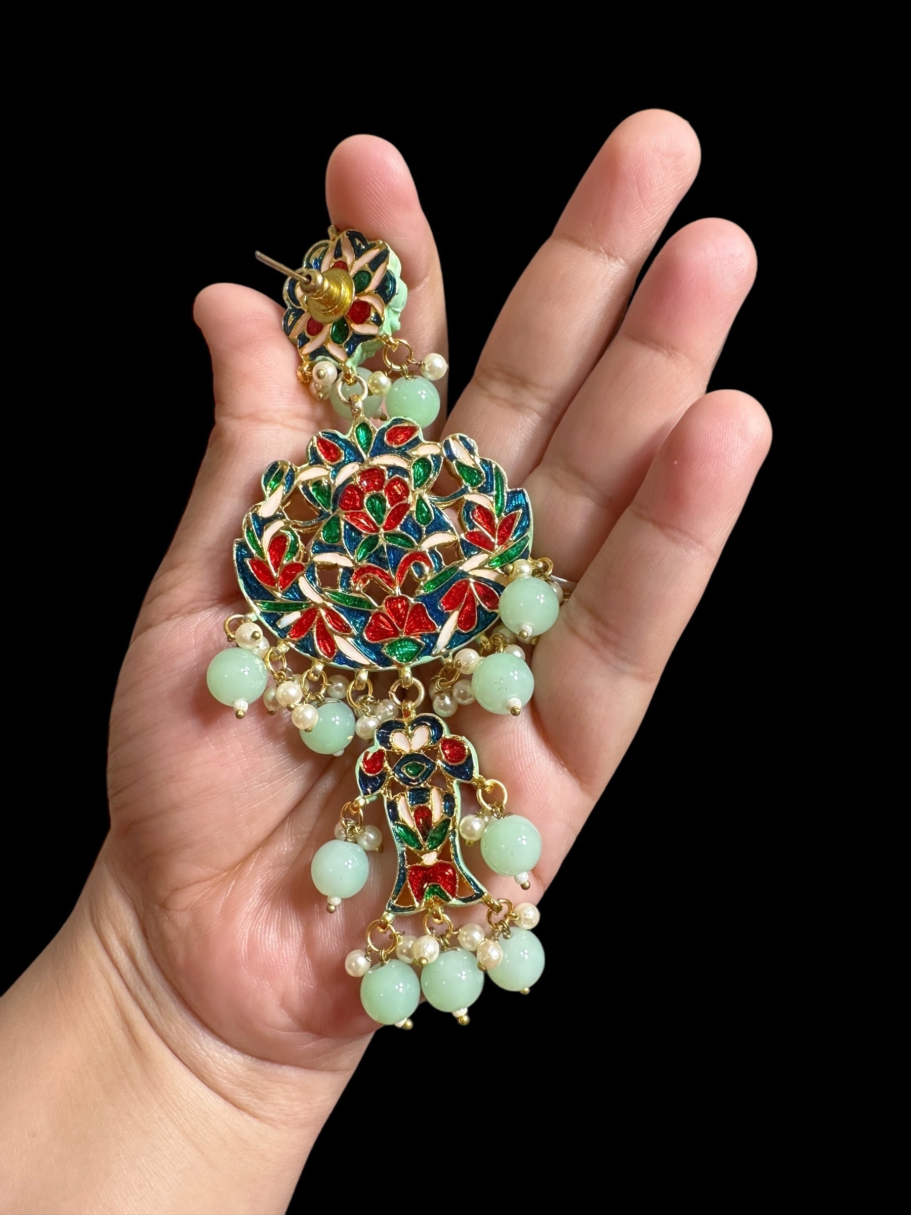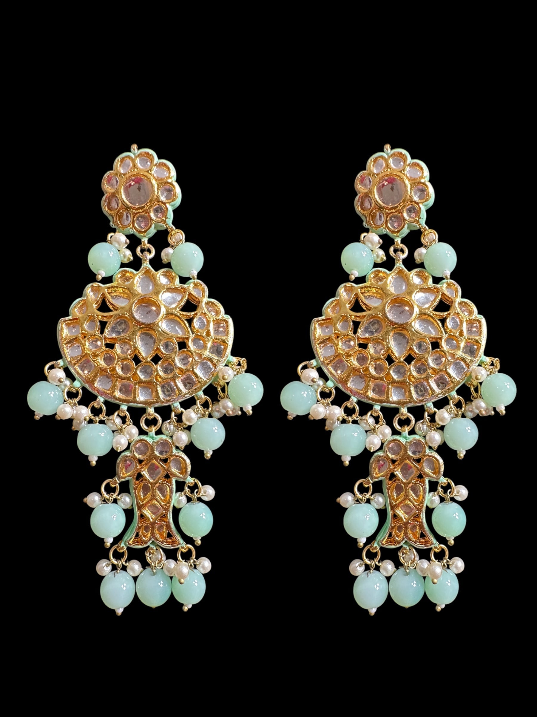 Farwah large Kundan earrings - Mint ( READY TO SHIP )