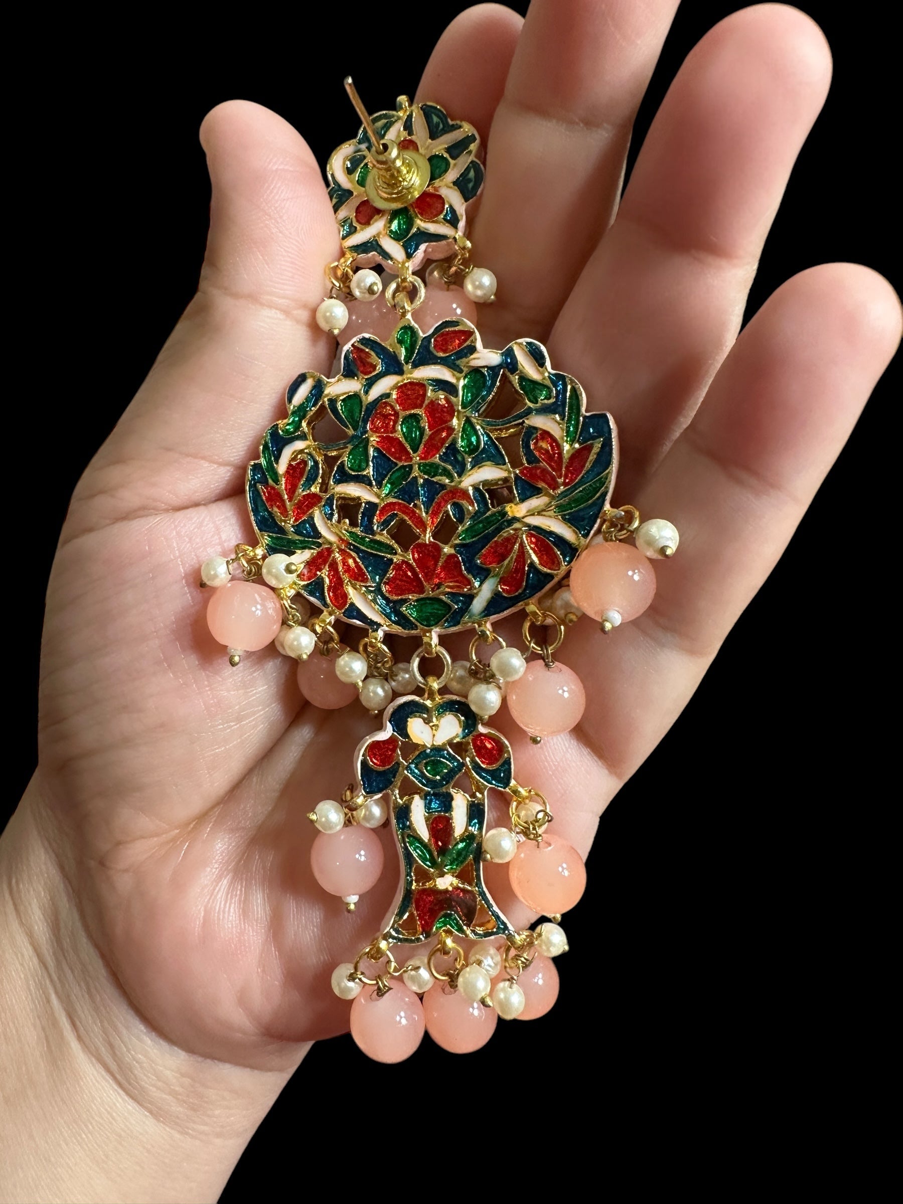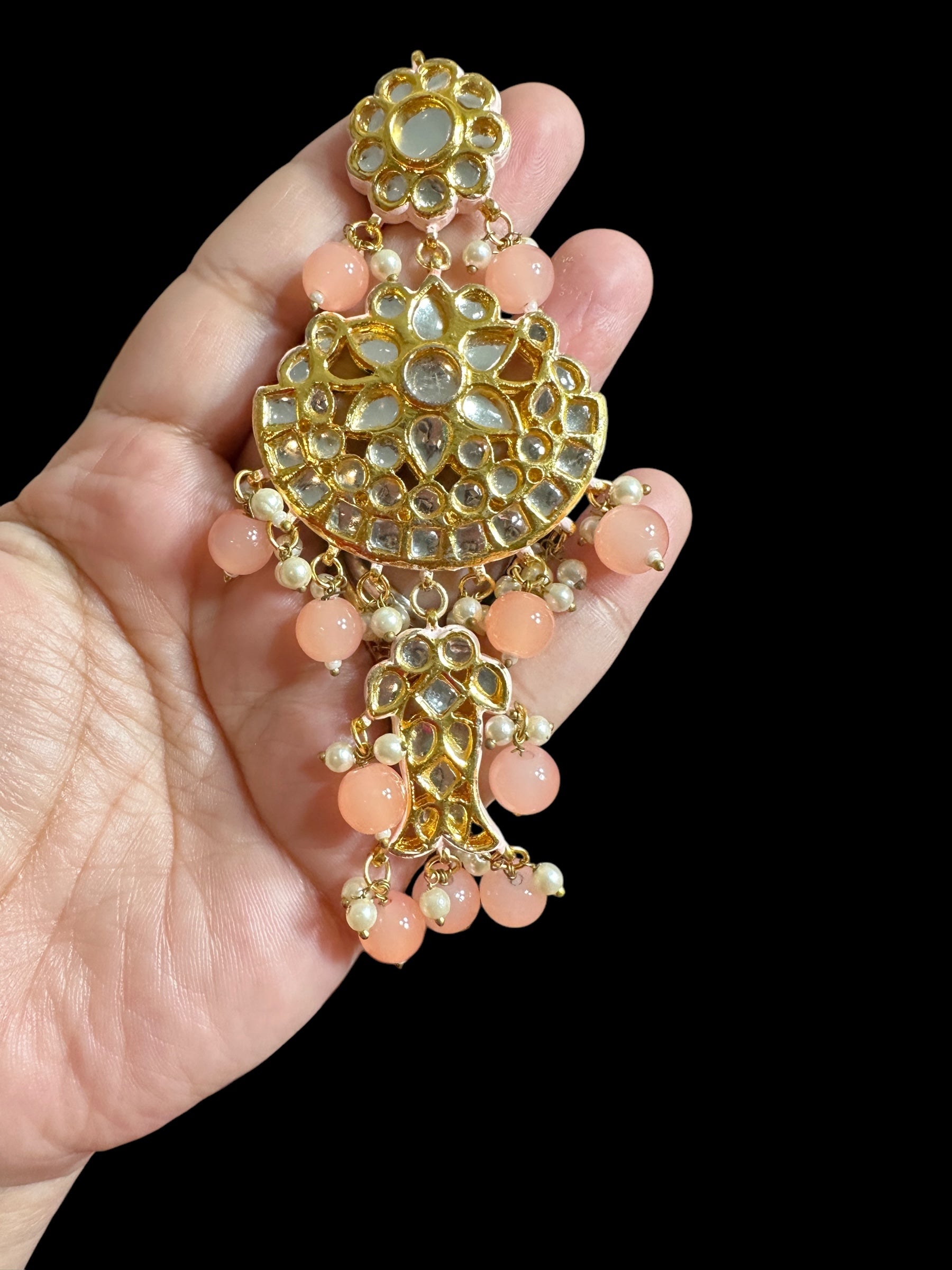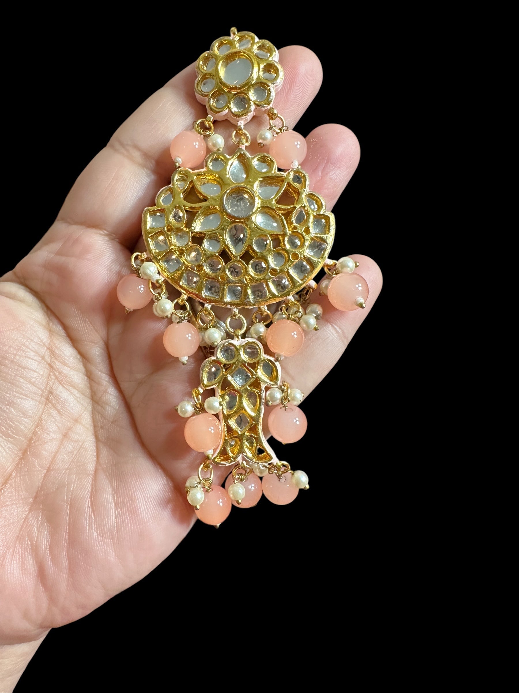 Farwah large Kundan earrings - peach ( READY TO SHIP )