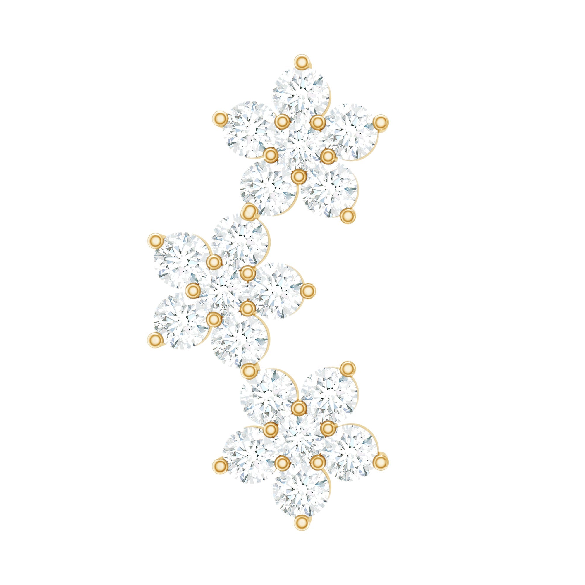 Diamond piercing jewelry is forever. Thats why we focus on the details and offer exceptional craftsmanship with our diamond crawler earring. This piercing earring features certified round diamonds set in a prong setting assembled in a three floral motifs, crafted with Hallmarked Metal. You can simply style this floral crawler earring on your Helix, Cartilage, Conch, or Upper Lobe Piercing. The Flat Back Closure will keep it secured in place. Our diamond ear piercing features sleek, modern styles with keen attention to balance and proportion because they need to last as well as look great. There are endless ways to style this Diamond Flower Earring, pair it with a stud, hoop, or any bold statement piece of jewelry. You can present this as a birthday gift, an anniversary gift, or a romantic surprise; it beautifully marks lifes most cherished moments. It offers a wide range of metal color options and is also available in various metal choices. This Piercing Stud comes with a certificate of authenticity for gemstones and is packaged in a premium storage box.
