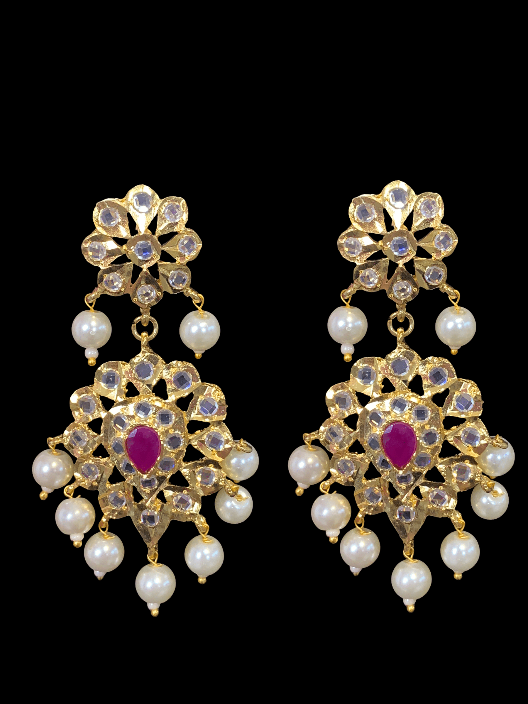 made using shell pearls with ruby quartz beads
