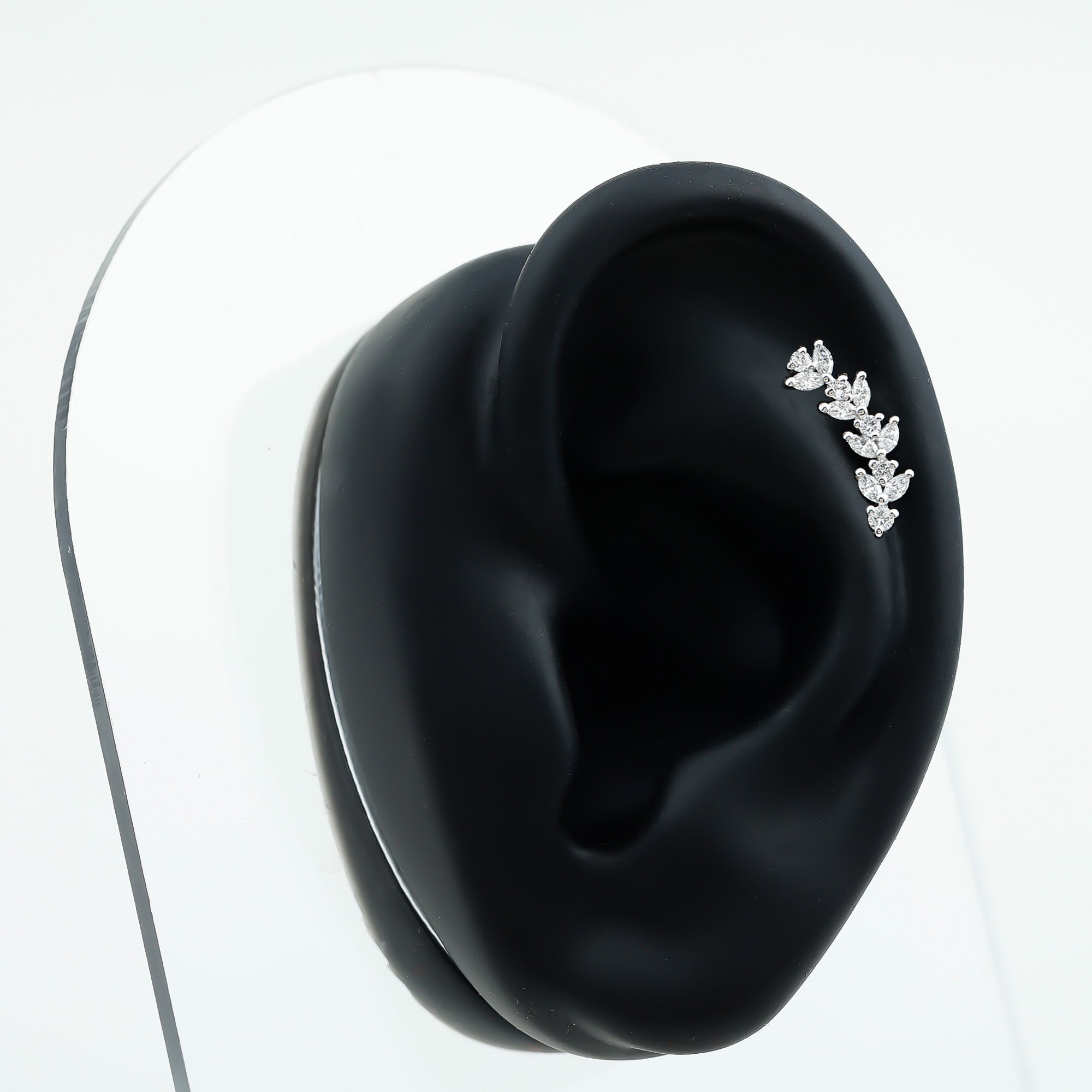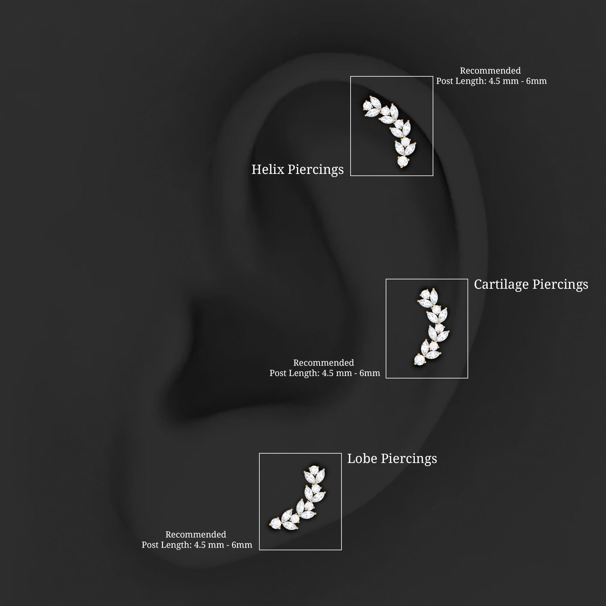 Add a touch of nature to your look with this Moissanite Leaf Branch Helix Earring. Featuring Marquise and Round Cut Moissanites assembled in a Leaf Branch Design. Wear it on your Helix, Cartilage, or Upper Lobe Piercing, as it comes with a Flat Back Closure to keep it securely in place. It is a perfect gift for any special occasion and arrives ready to gift in our Signature Jewelry Box.