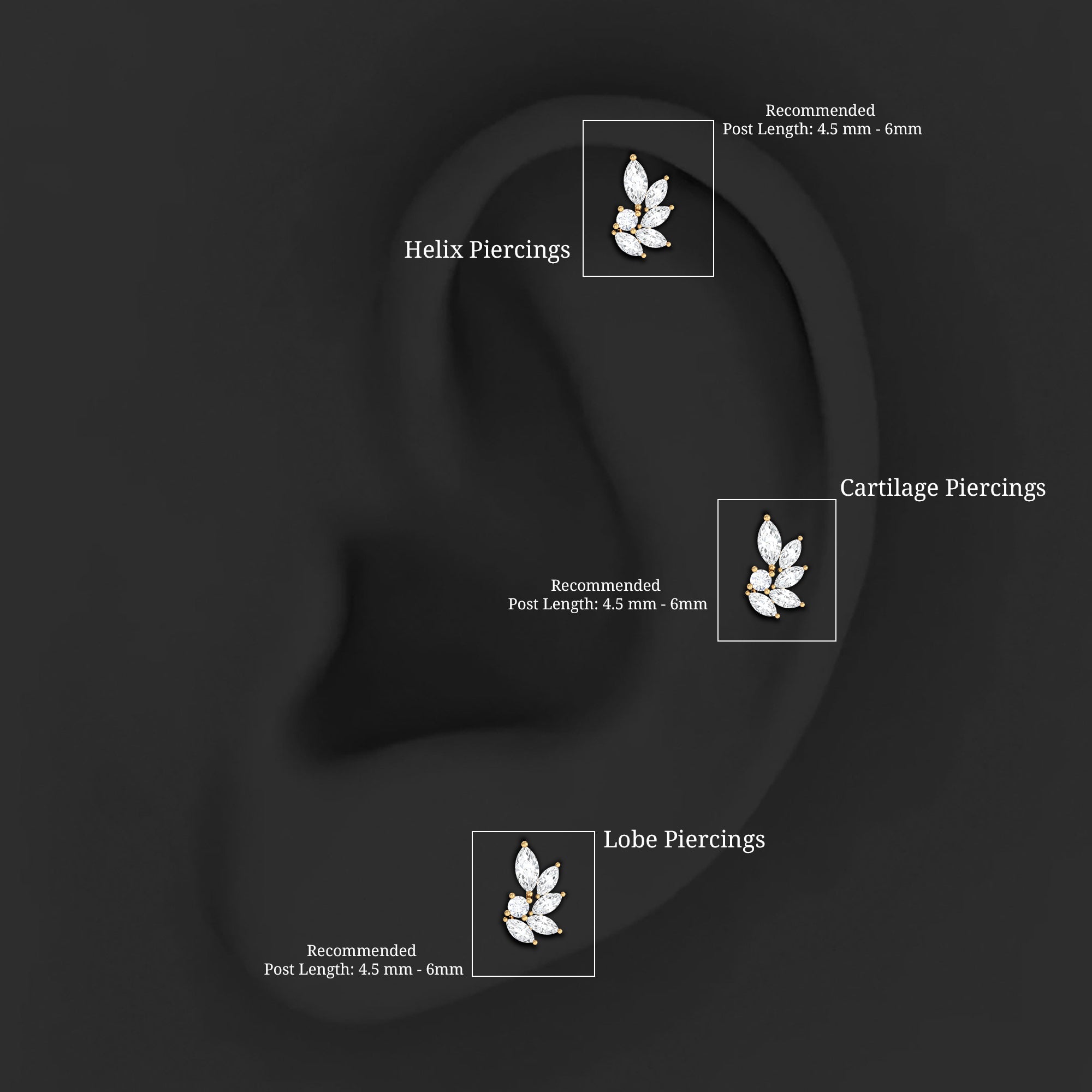 Marquise Cut Moissanite Cluster Cartilage Earring ‐ D-VS1 / 18K White Gold / Select Option