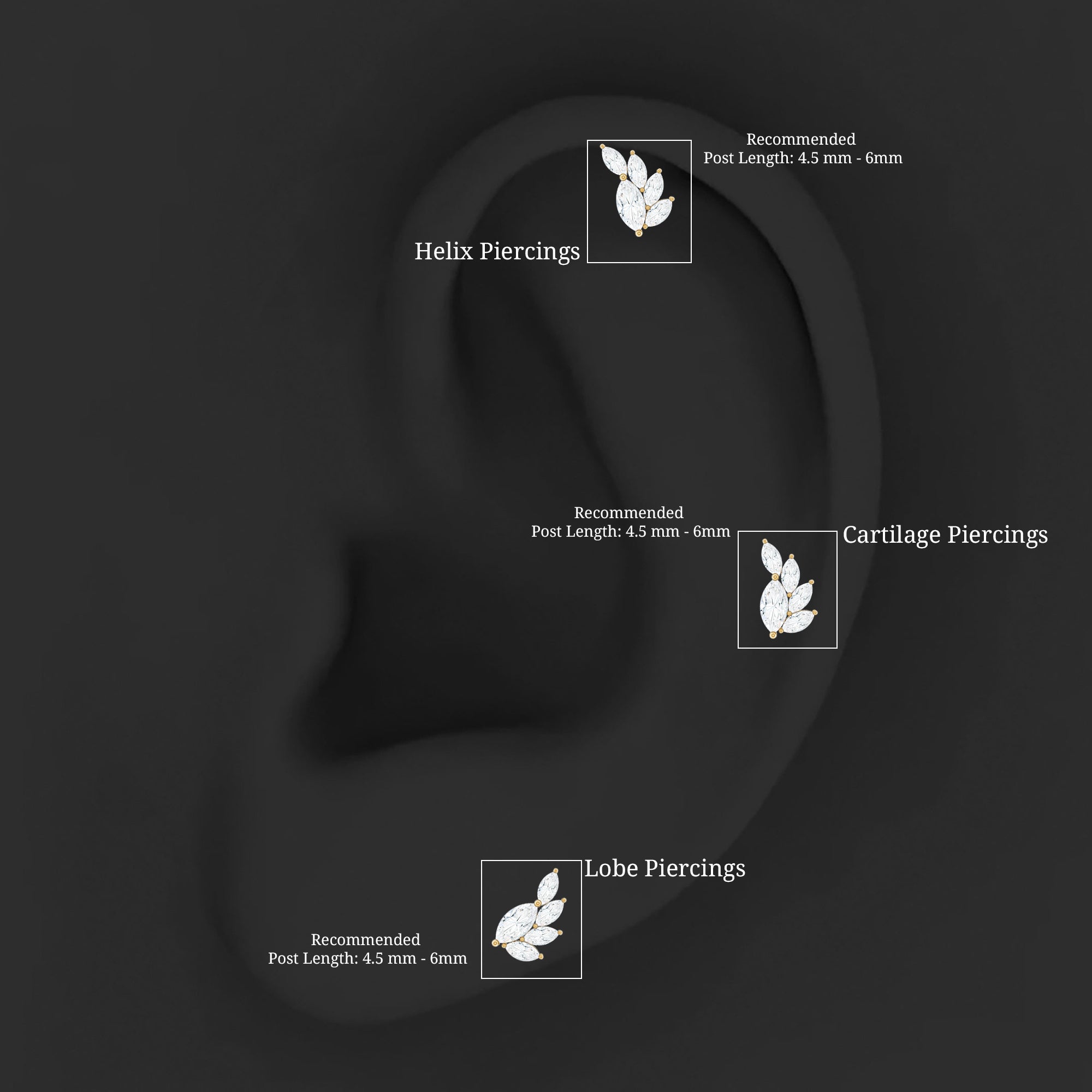 Marquise Diamond Cluster Helix Earring with Flat Back ‐ Lab - ( EF-VS ) / 14K Yellow Gold / Select Option
