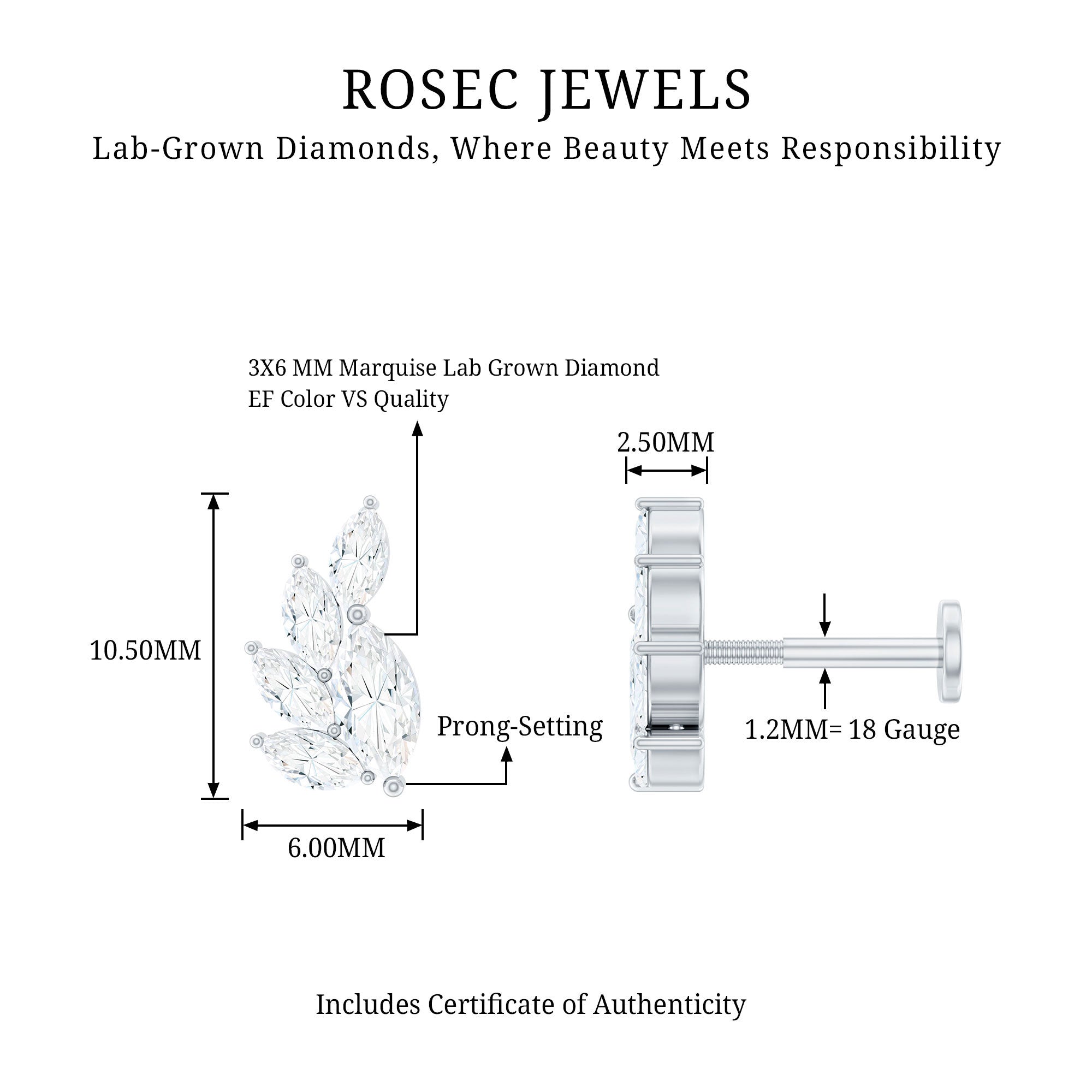 Marquise Diamond Cluster Helix Earring with Flat Back ‐ Lab - ( EF-VS ) / 18K White Gold / Flat Back 5.5 MM