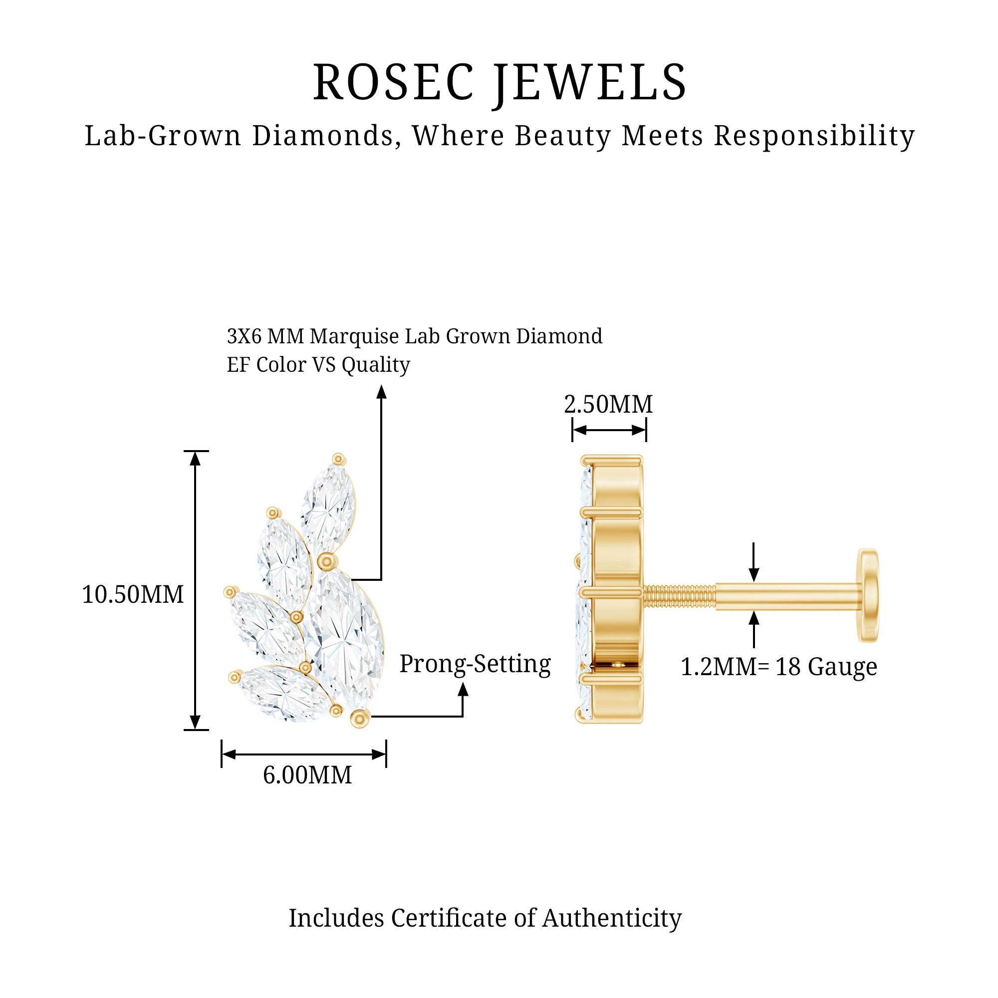 Marquise Diamond Cluster Helix Earring with Flat Back ‐ Lab - ( EF-VS ) / 14K White Gold / Flat Back 5.5 MM