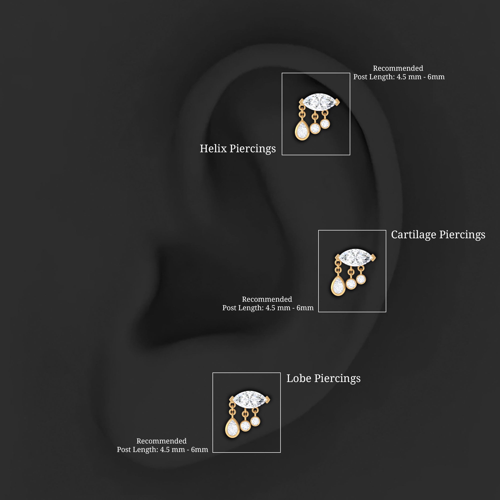 Marquise Diamond Drop Earring for Helix Piercing ‐ Natural - ( HI-SI ) / 10K White Gold / Flat Back 4.5 MM