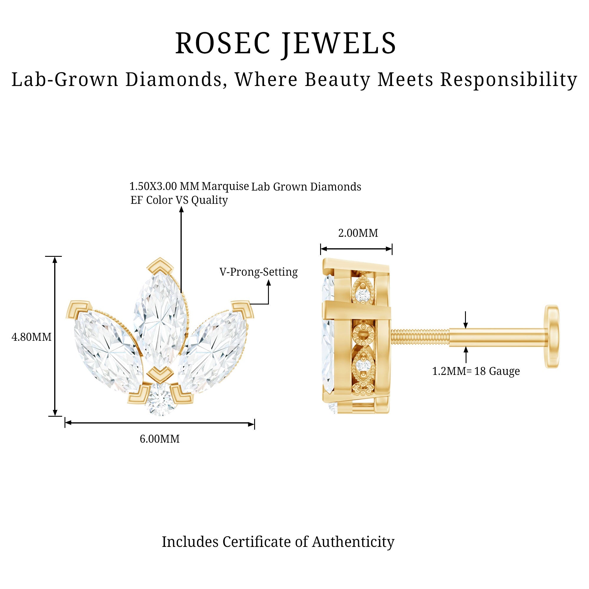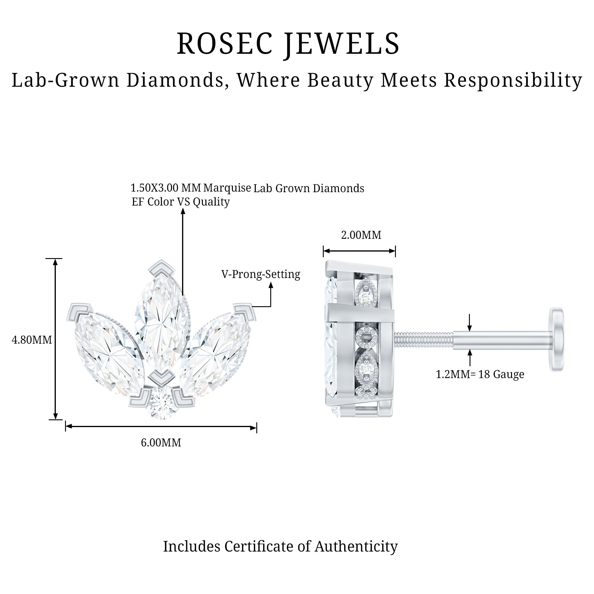 Marquise Diamond Lotus Earring for Cartilage Piercing ‐ Lab - ( EF-VS ) / 10K White Gold / Flat Back 5.5 MM