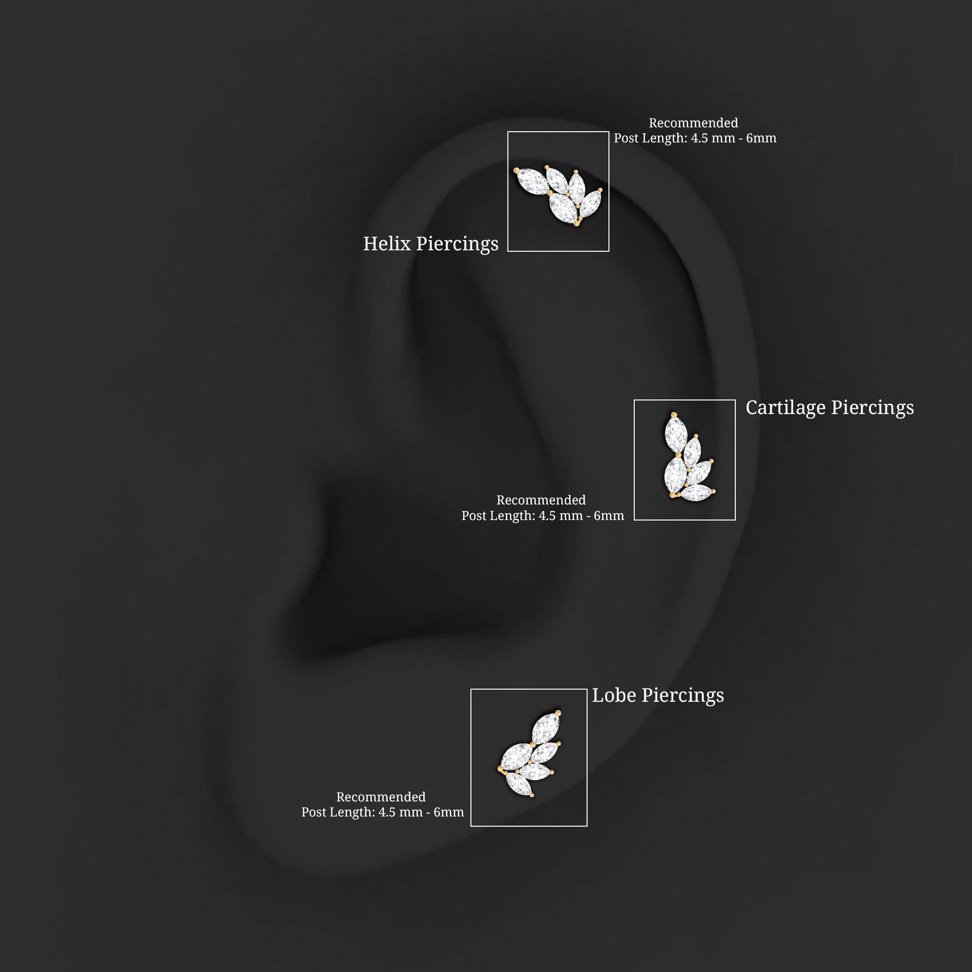 This stunning Marquise Moissanite Earring is a must-have for anyone who loves to make a statement. Crafted with Solid Metal, this Cluster Earring features Marquise Cut Moissanites arranged in a Leaf Design set in Prong Setting, giving it a dazzling sparkle. It can be worn on your cartilage, conch, helix, or upper lobe piercing.
