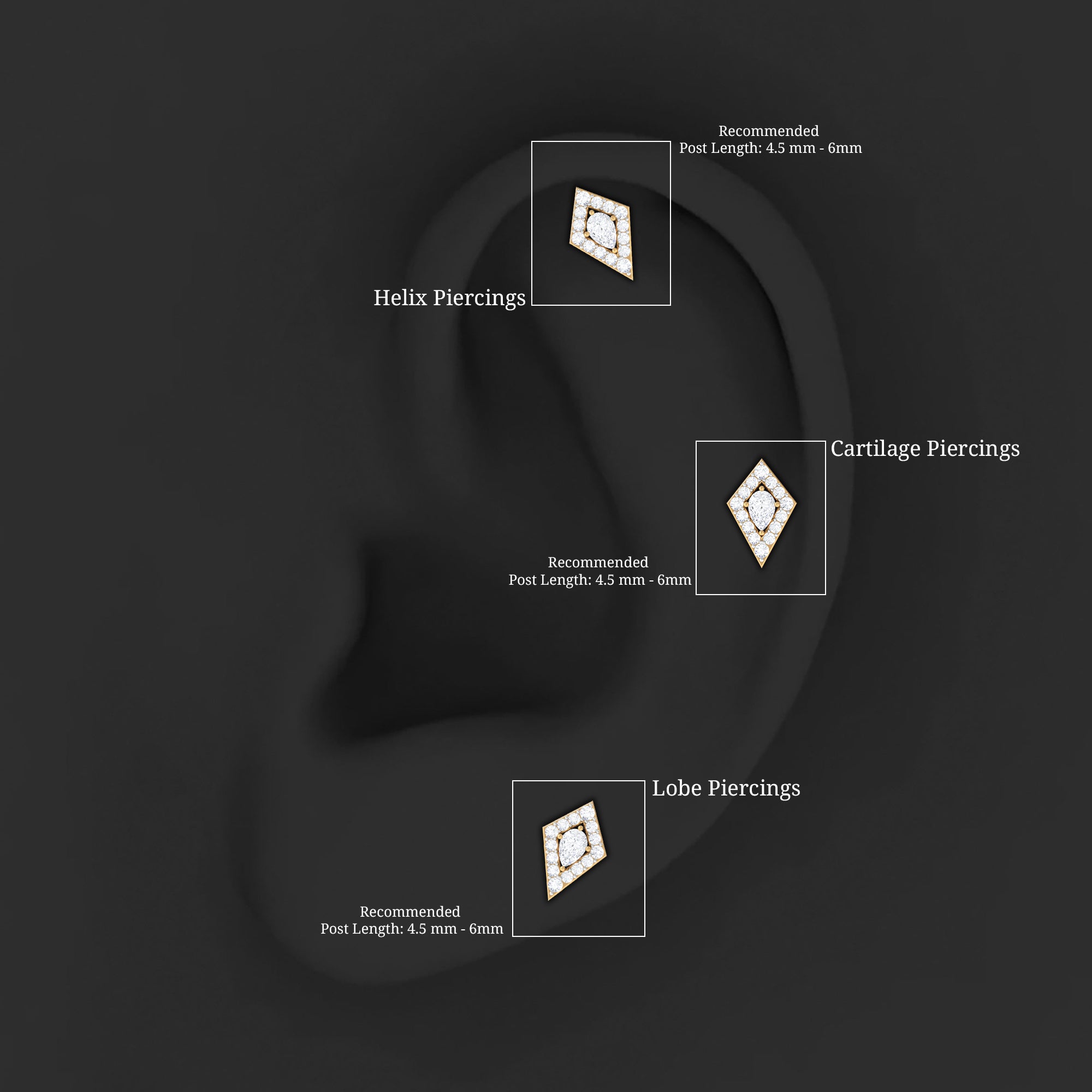 Modern Kite Shape Diamond Helix Earring ‐ Natural - ( HI-SI ) / 18K White Gold / Flat Back 4.5 MM